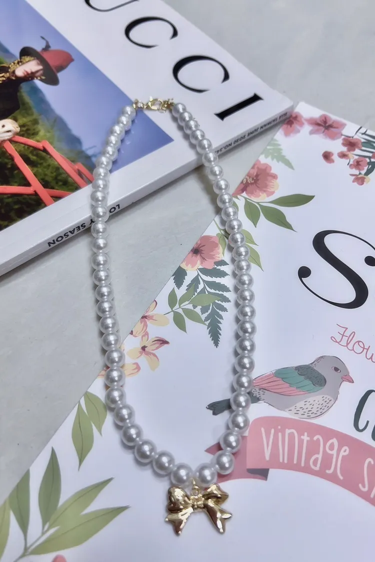 珠珠蝴蝶結項鍊