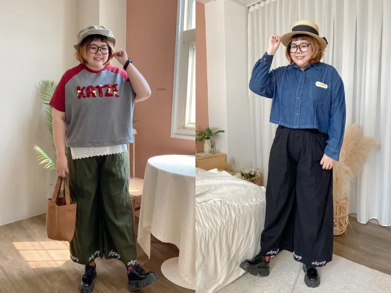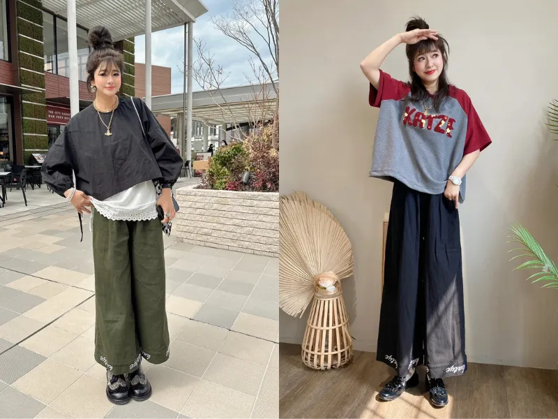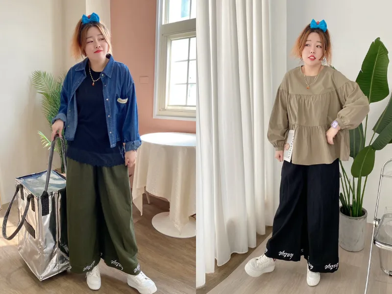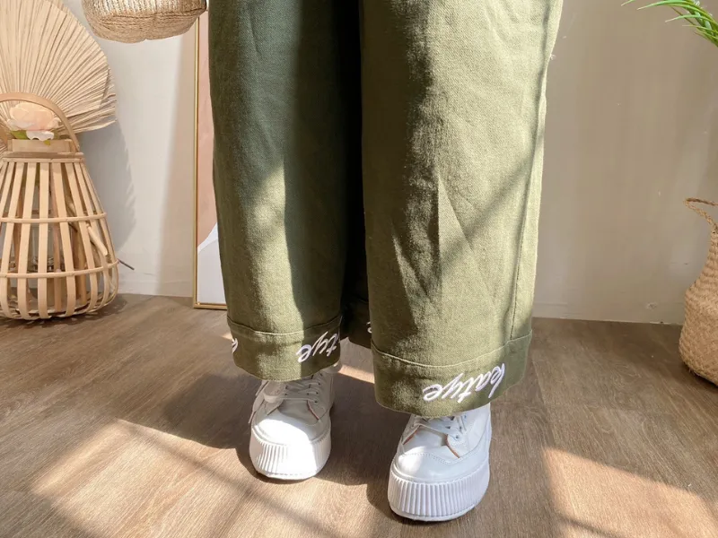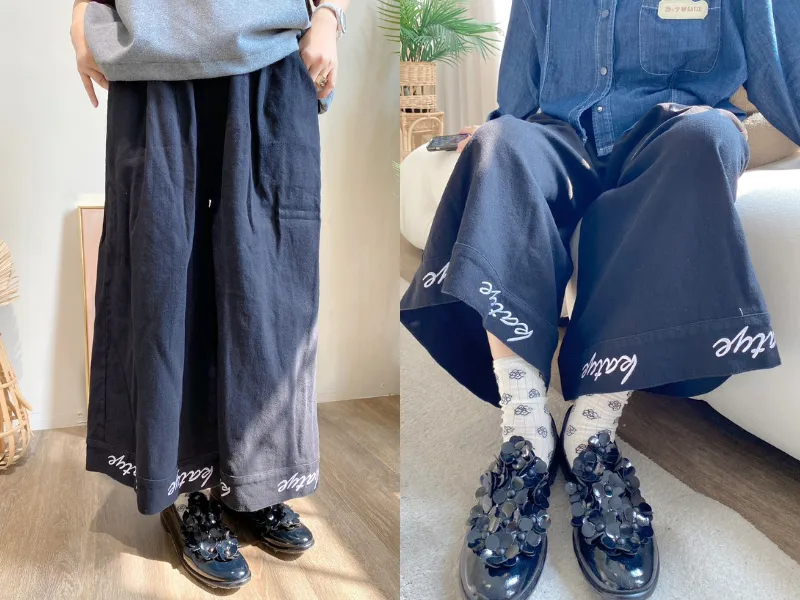 KATZE限量原創款-低調刺繡LOGO日系寬褲 2色