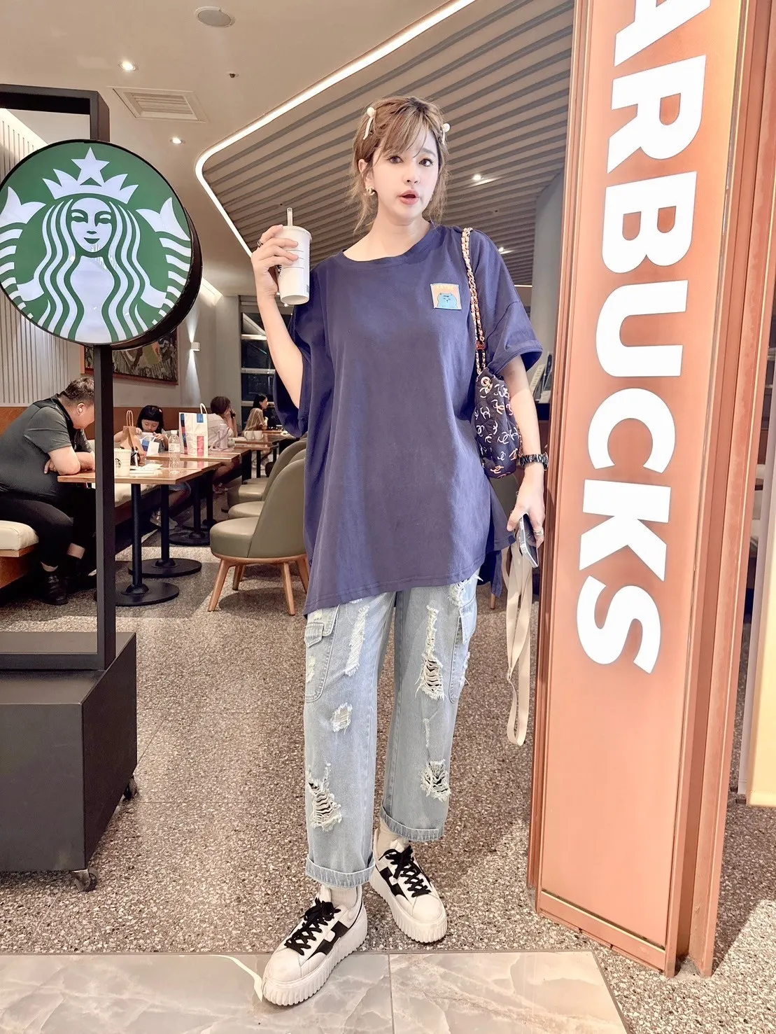 KATZE限量原創款-率性刷破牛仔口袋工作長褲