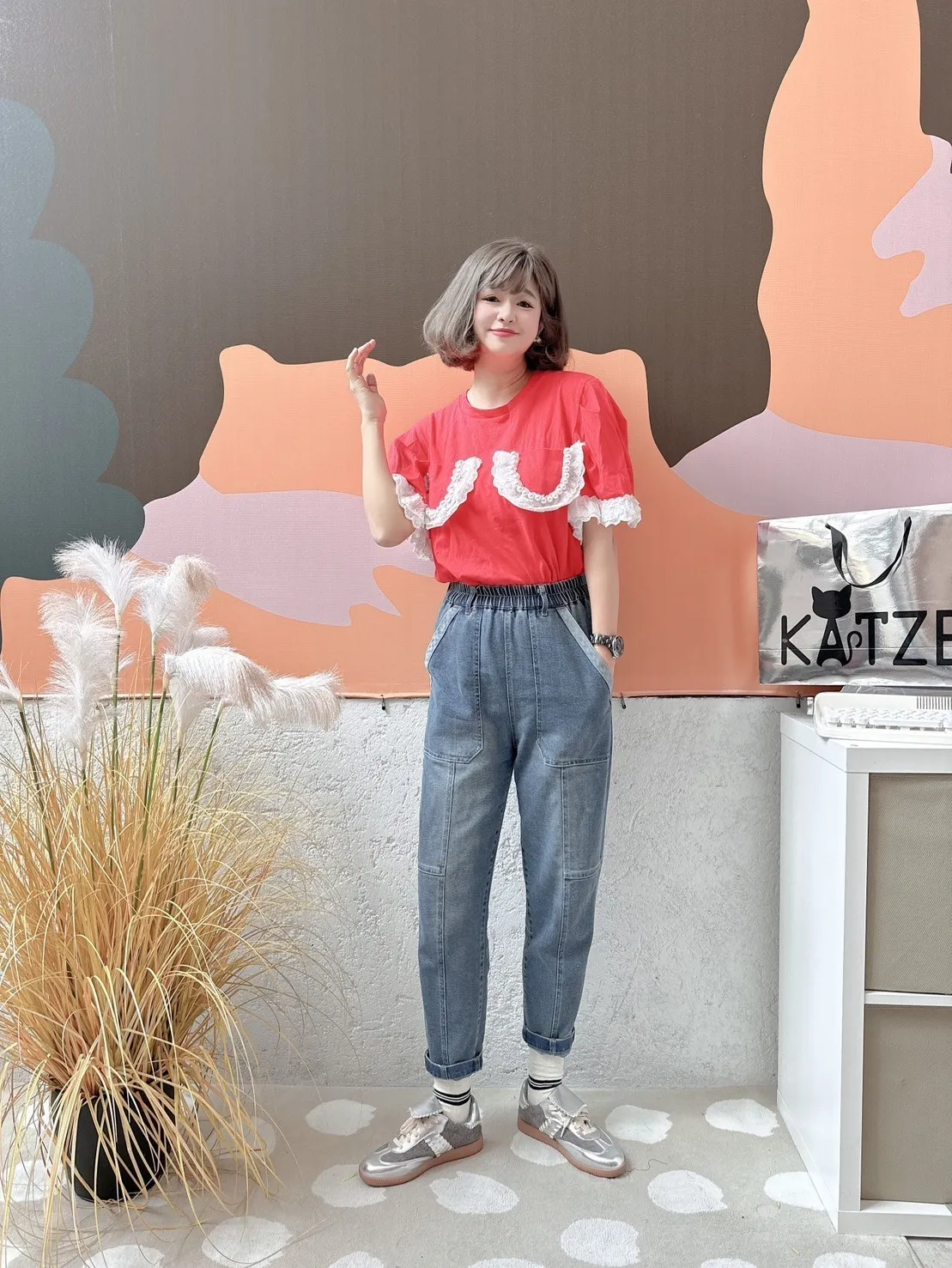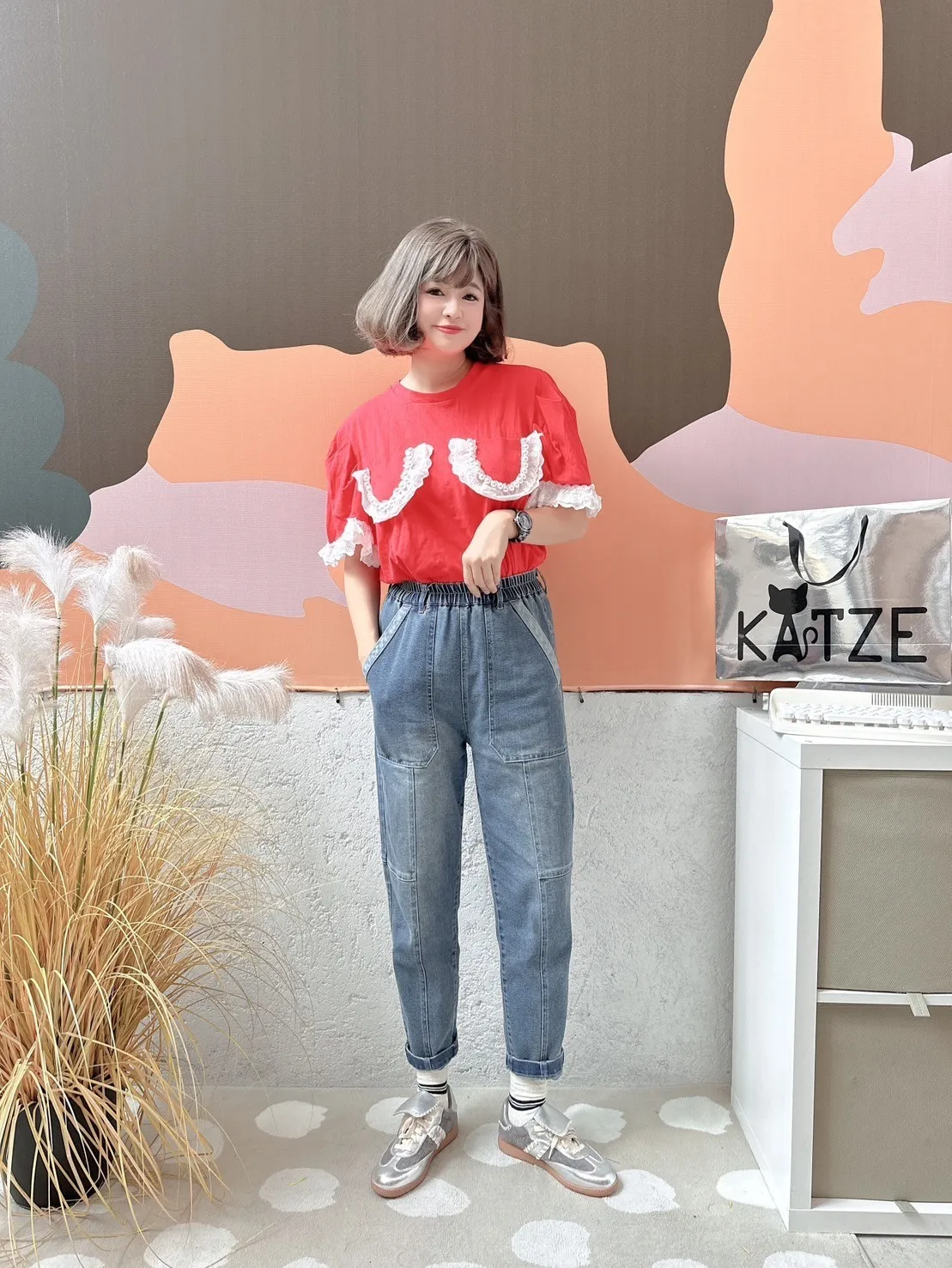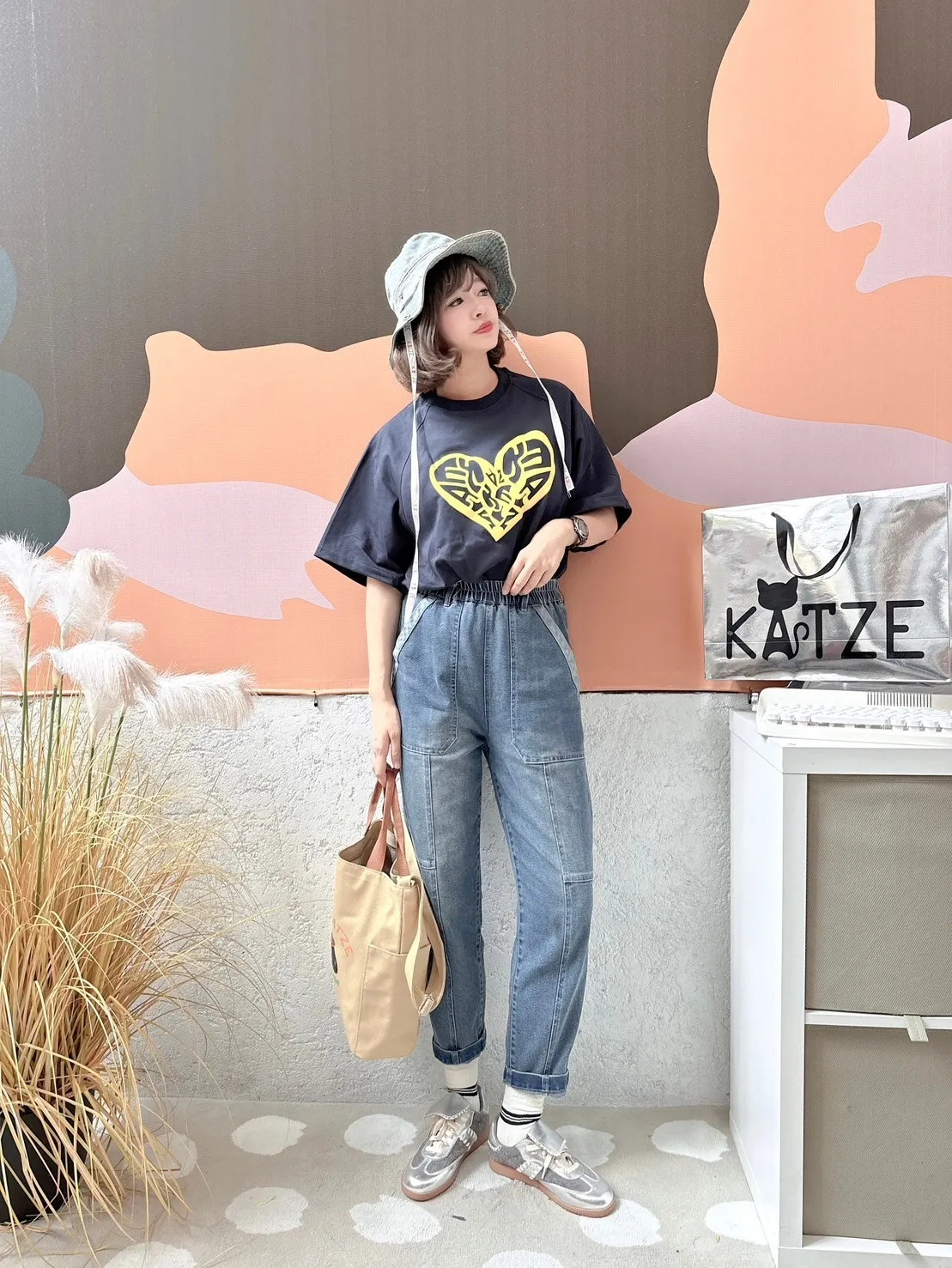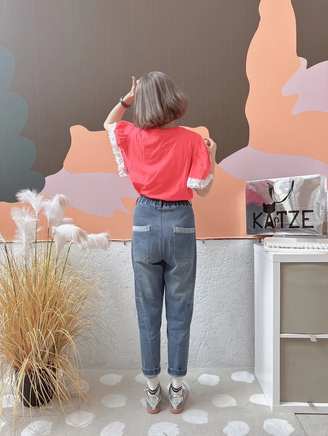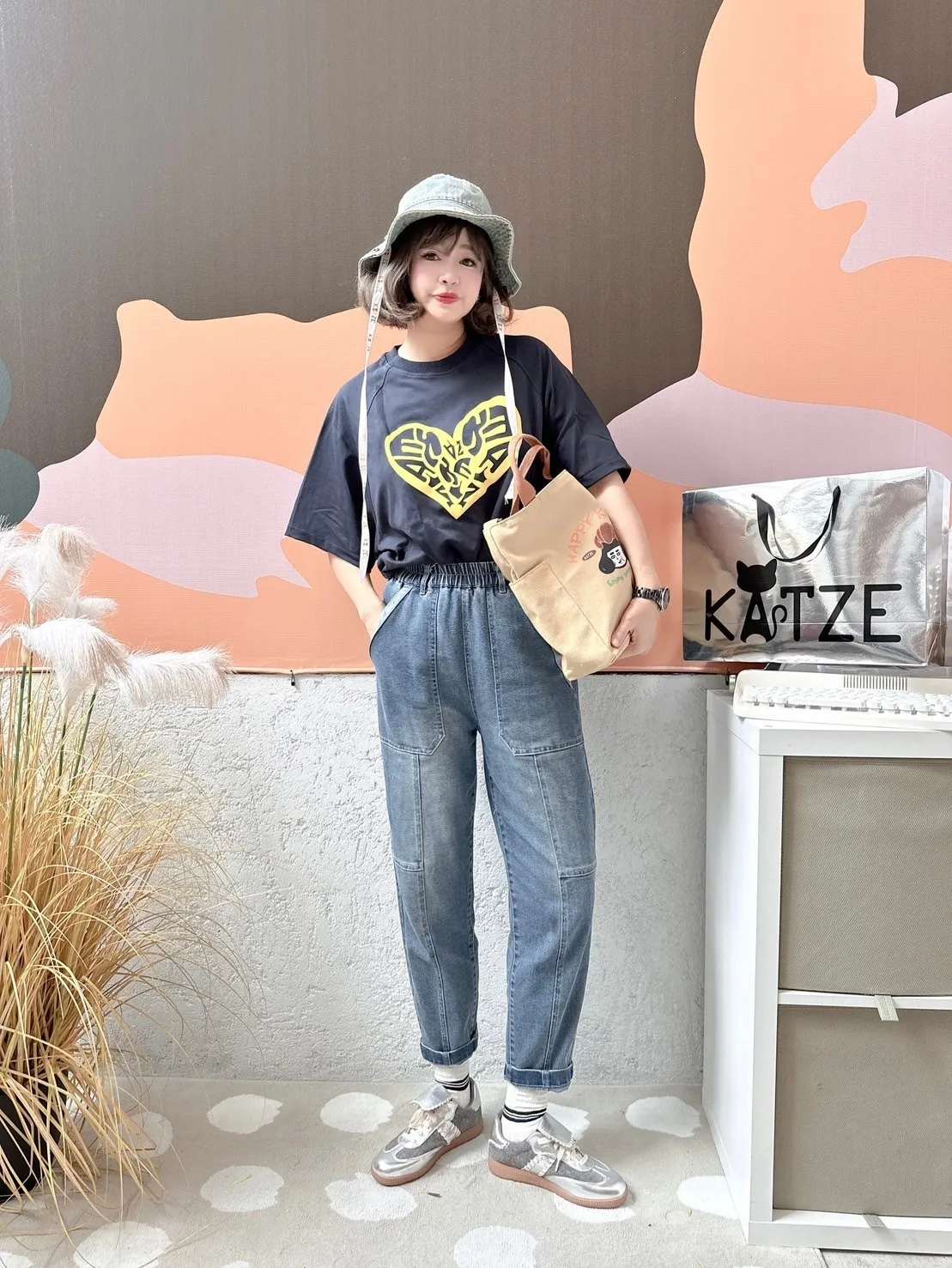 KATZE限量原創款-刷舊修身牛仔長褲