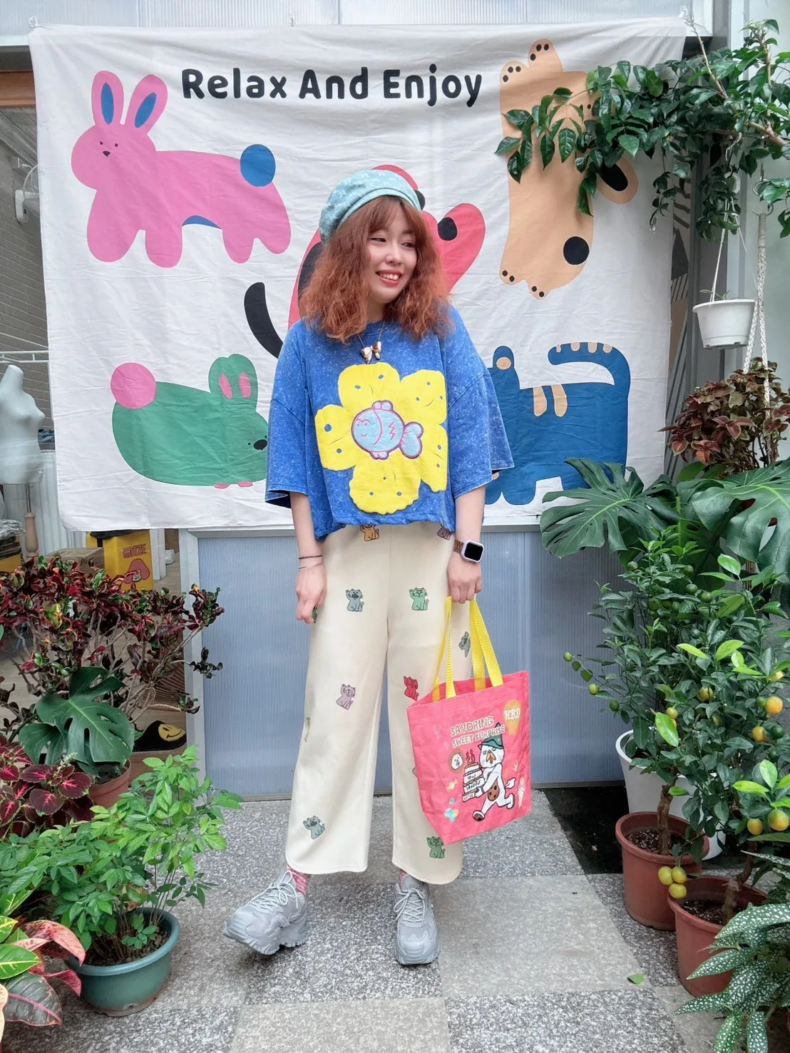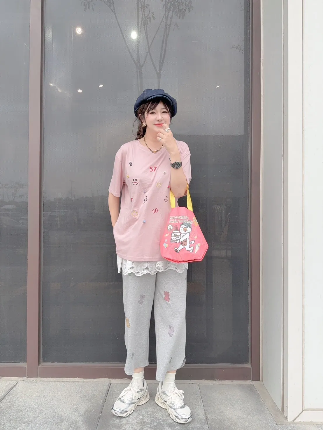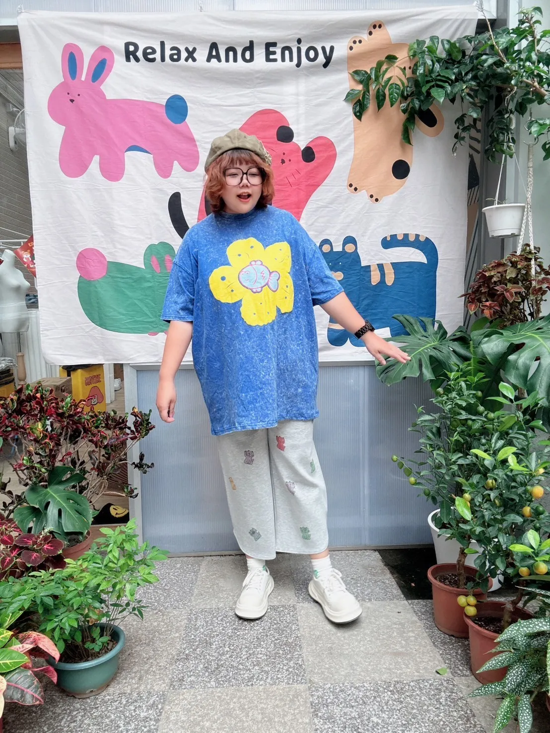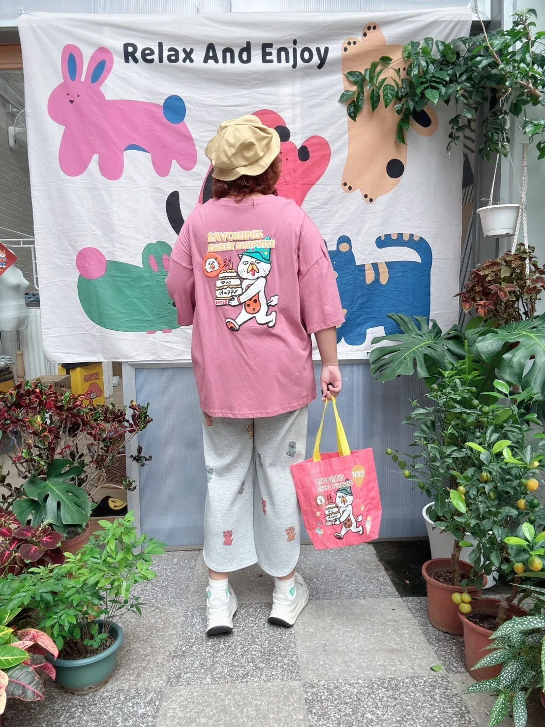 KATZE限量原創款-滿版招財小貓舒適太空棉褲 2色