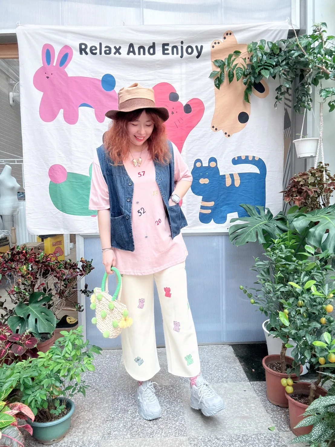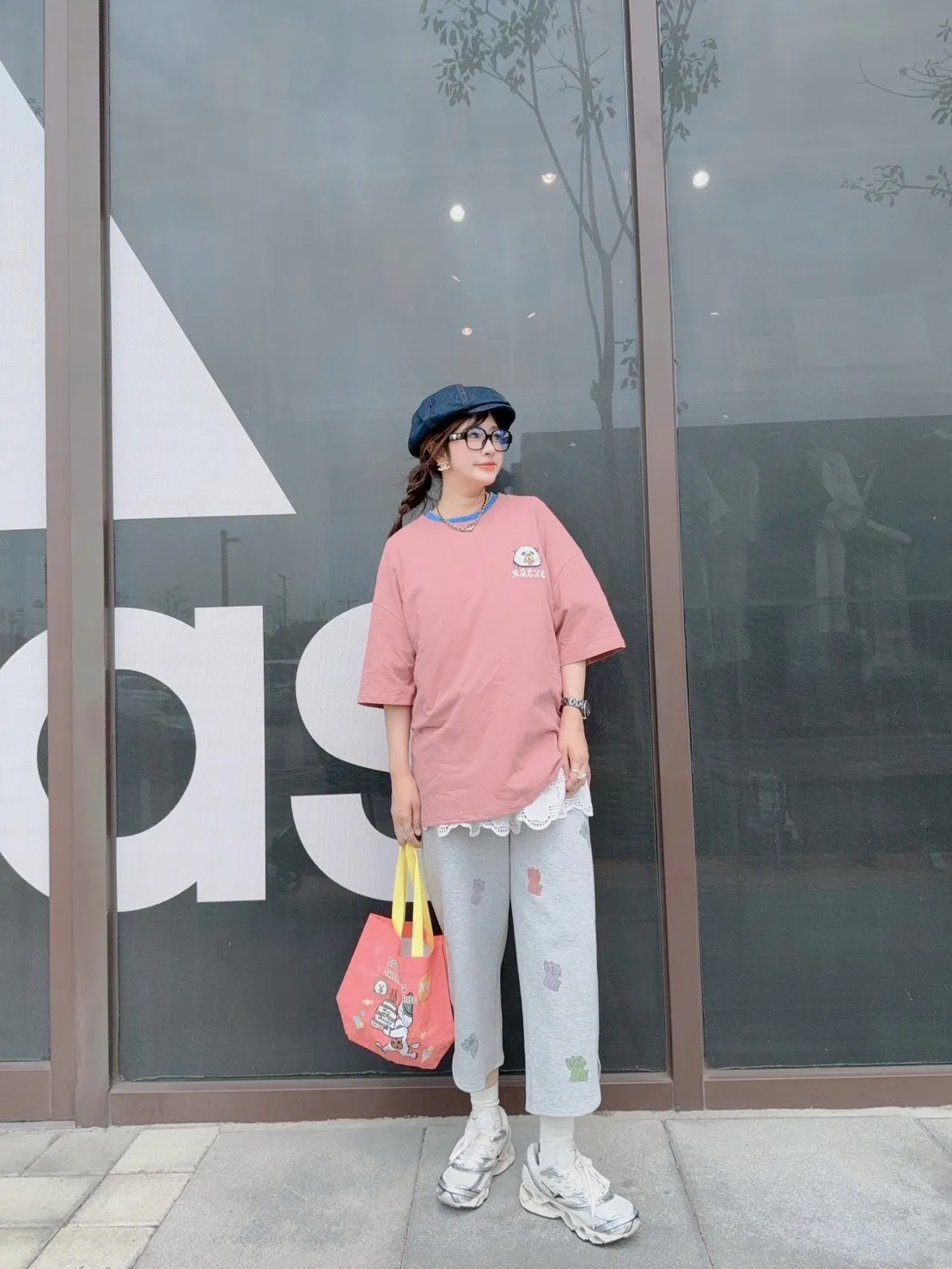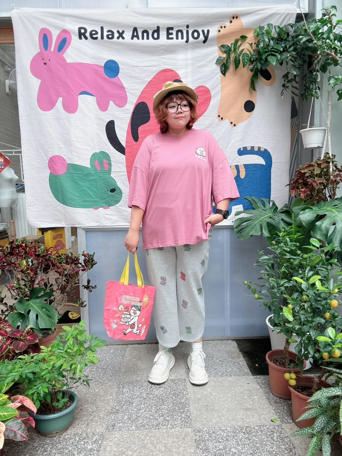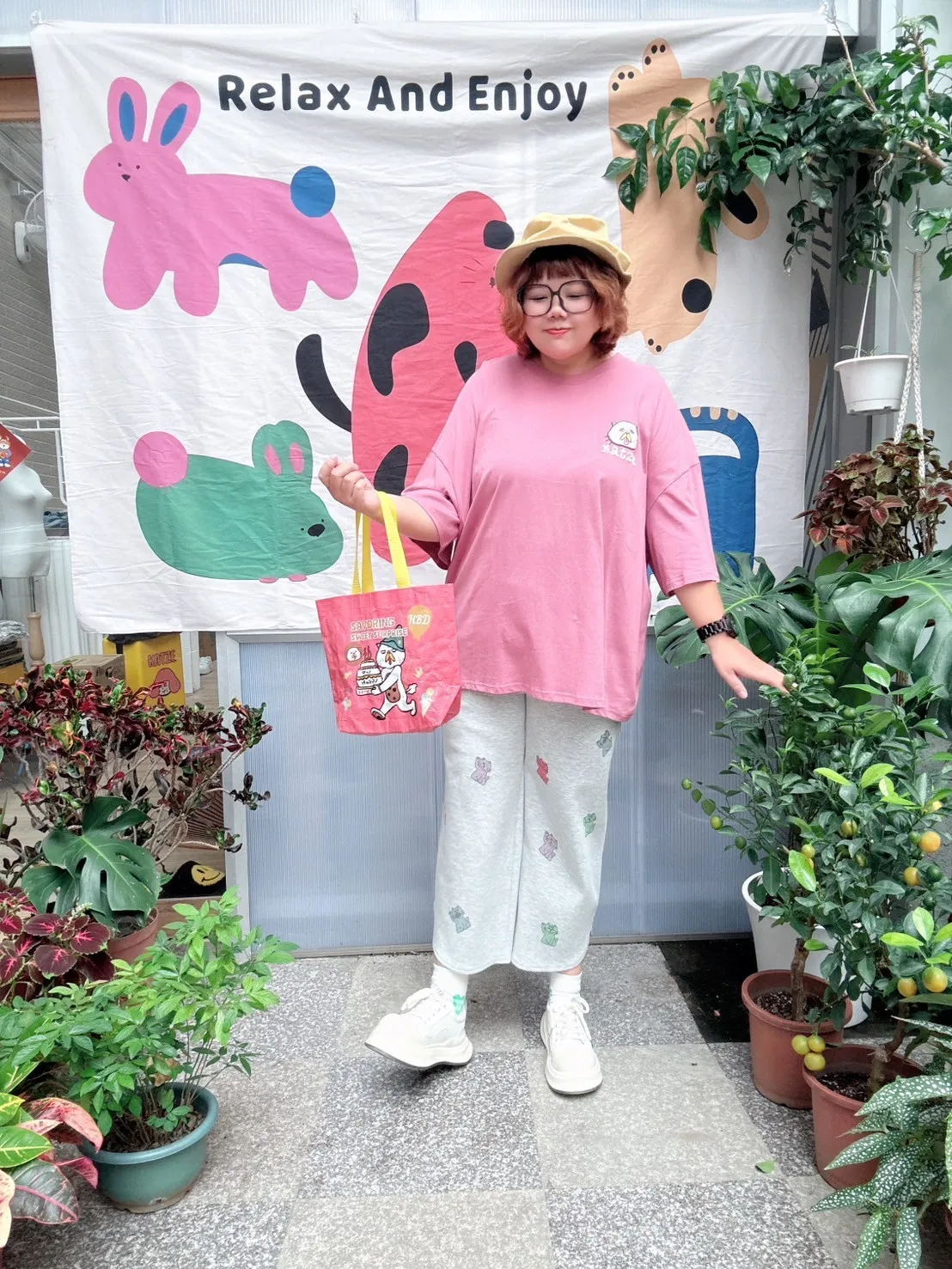 KATZE限量原創款-滿版招財小貓舒適太空棉褲 2色