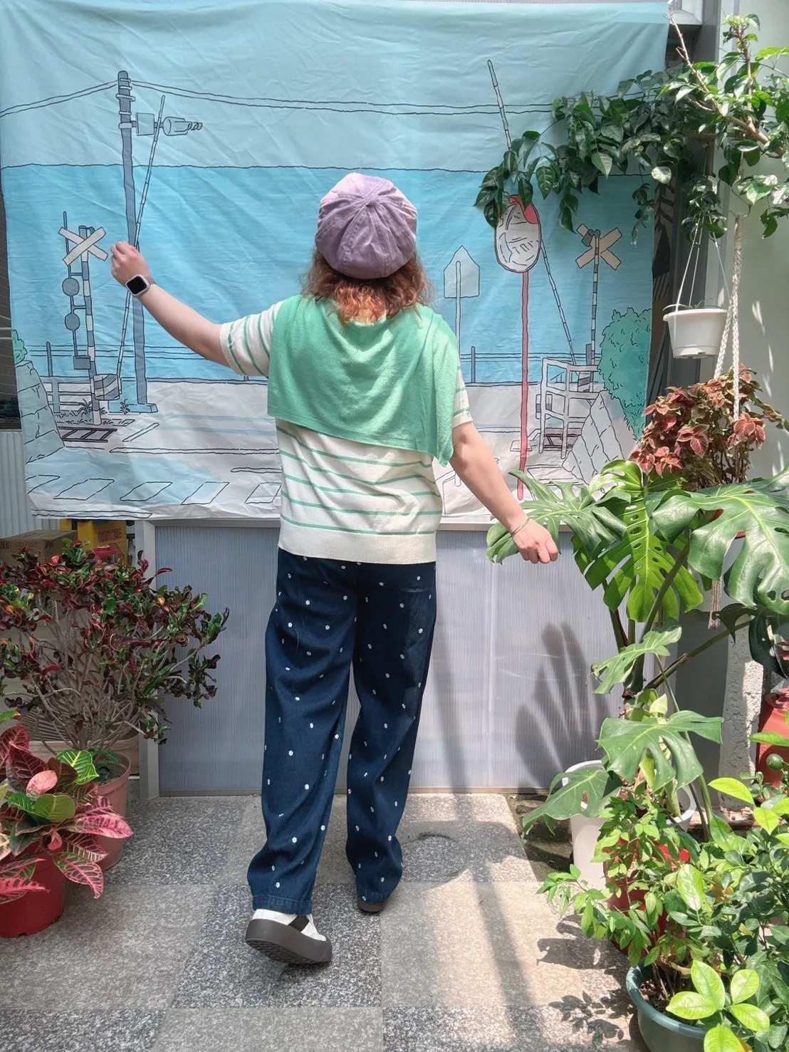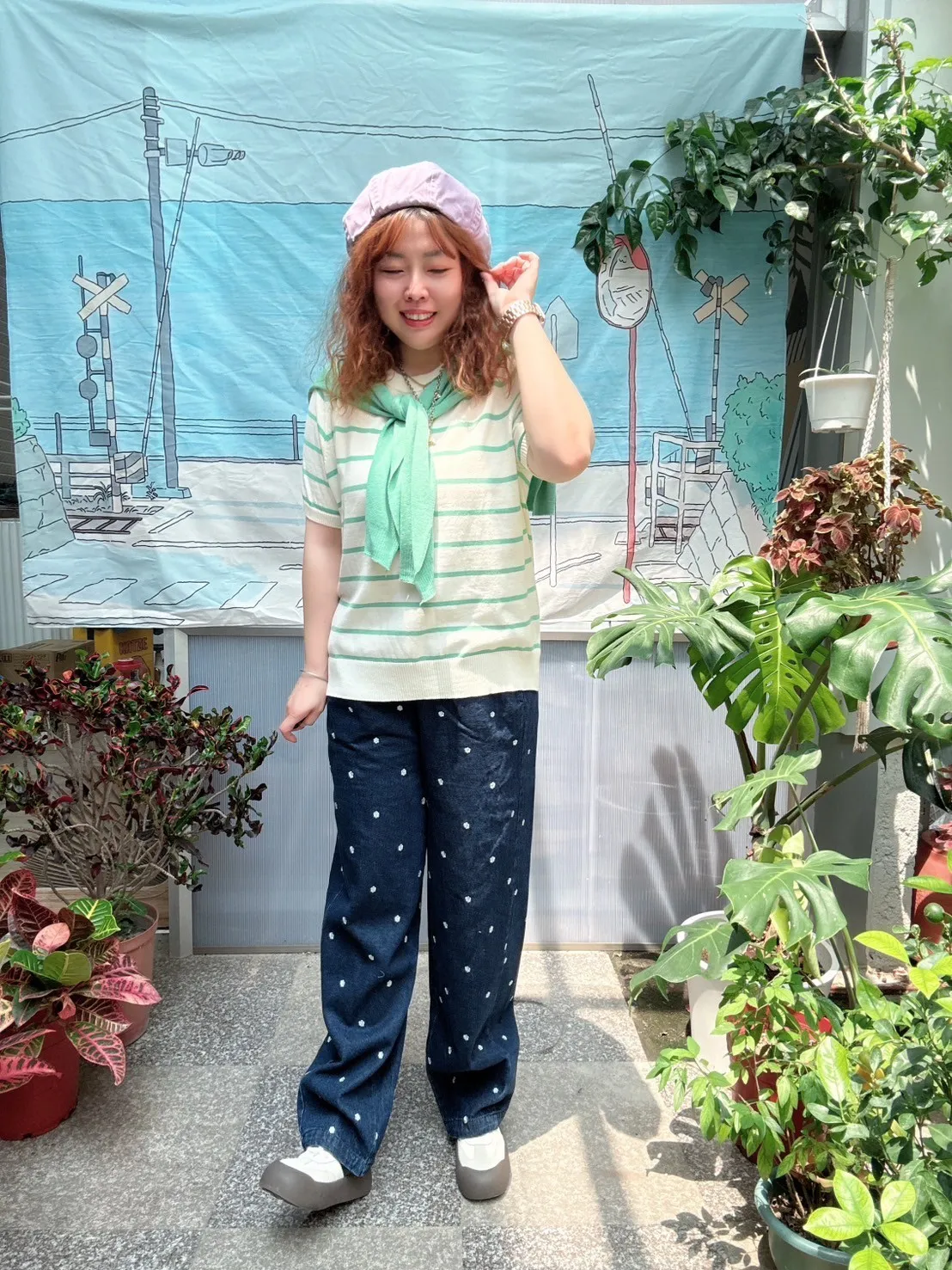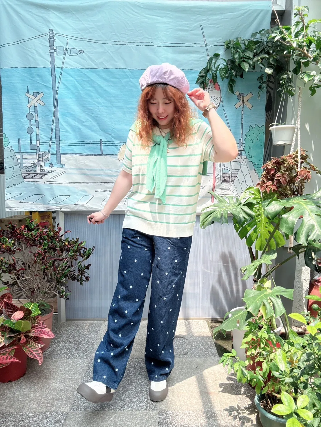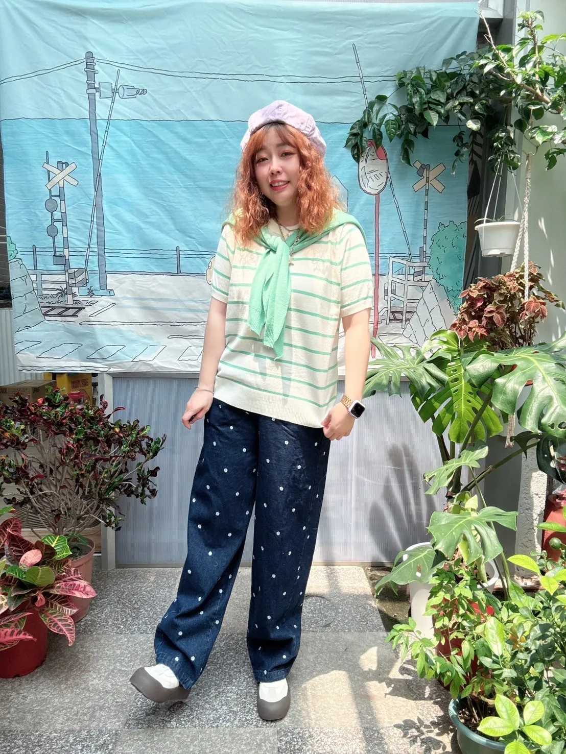 滿版小花牛仔褲
