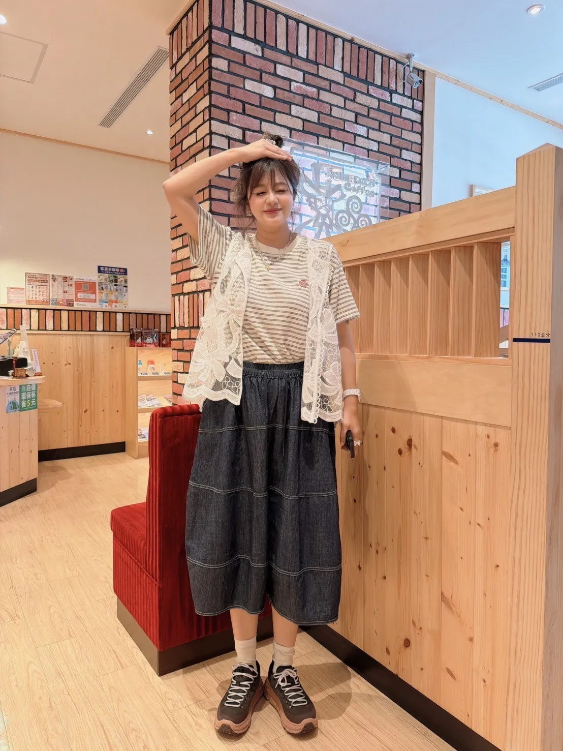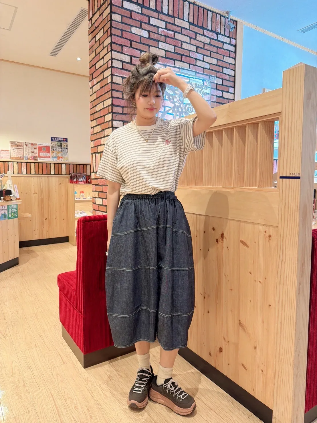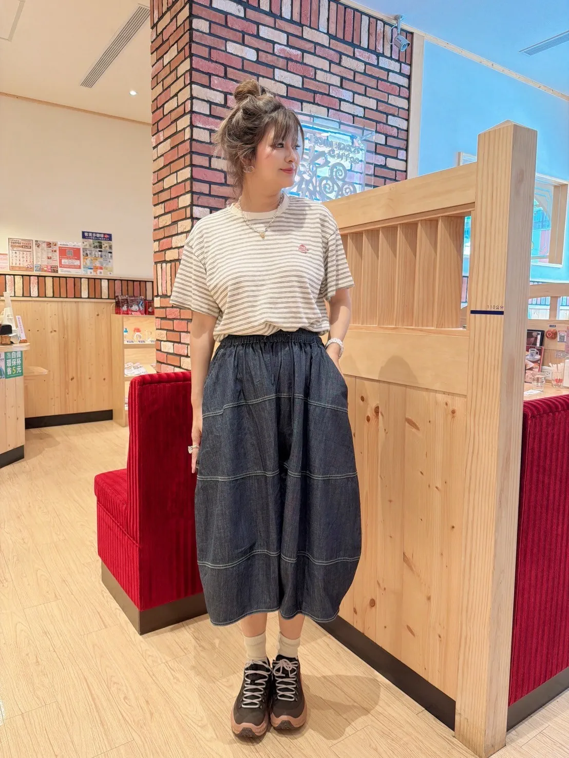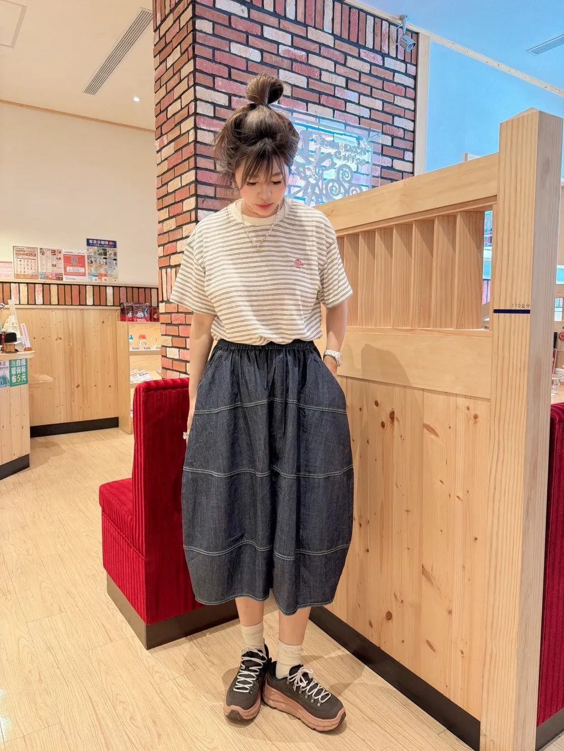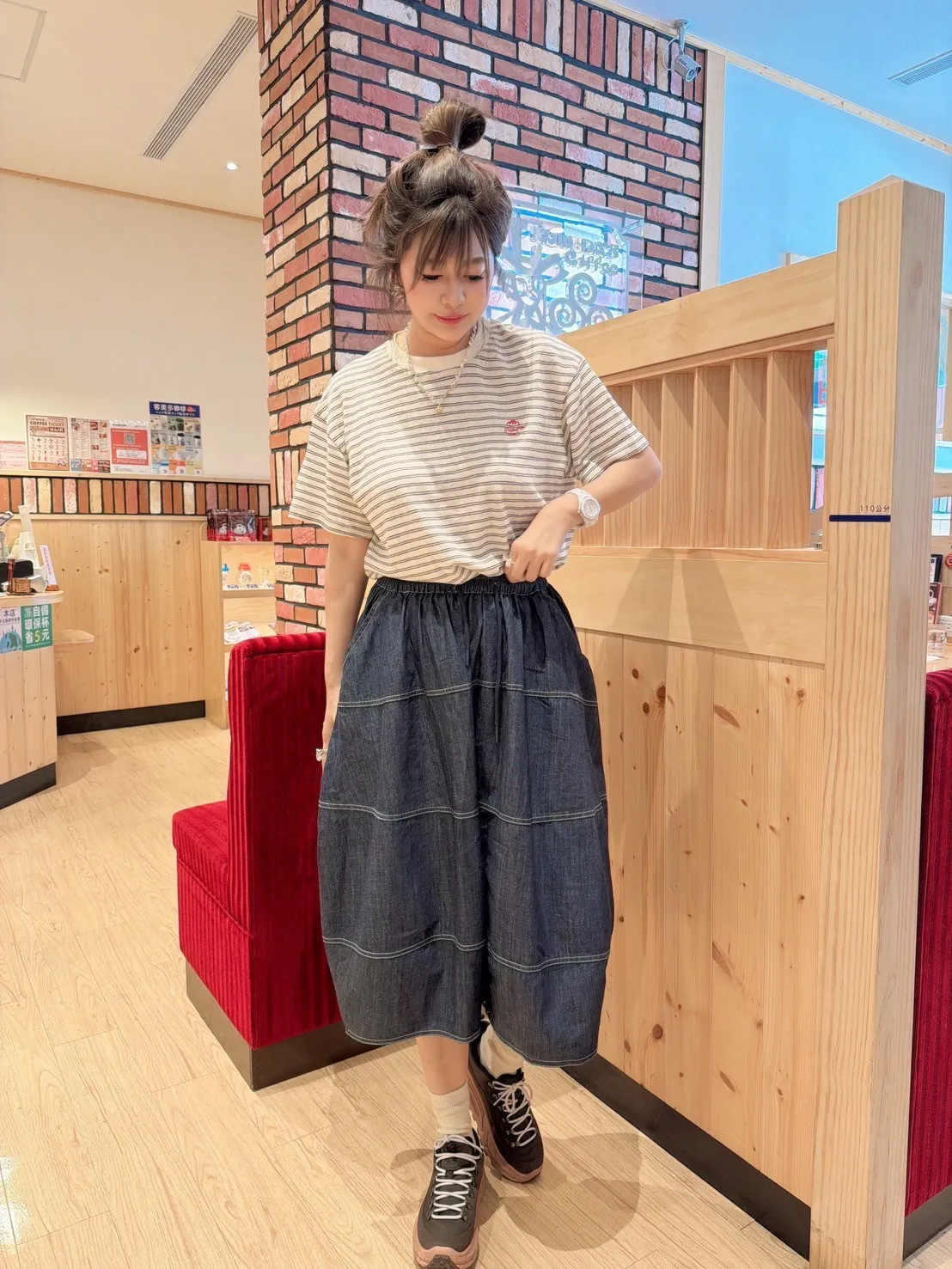 明線牛仔寬褲裙