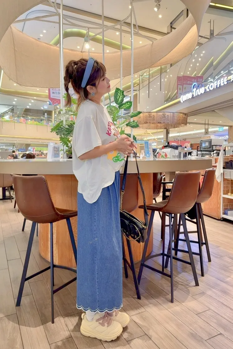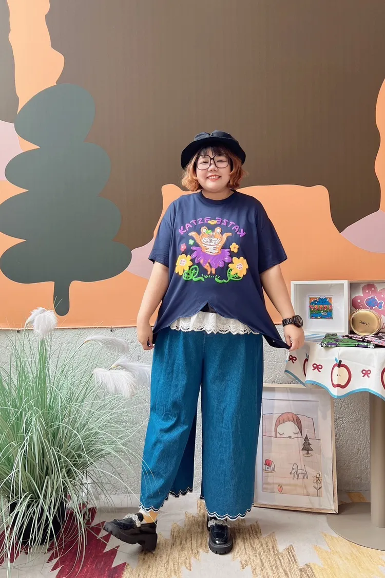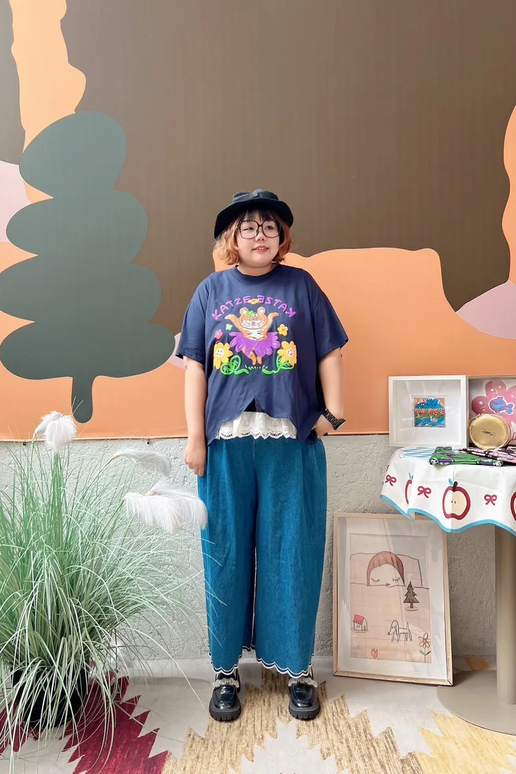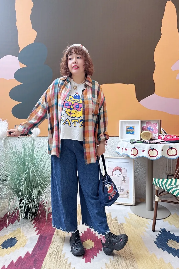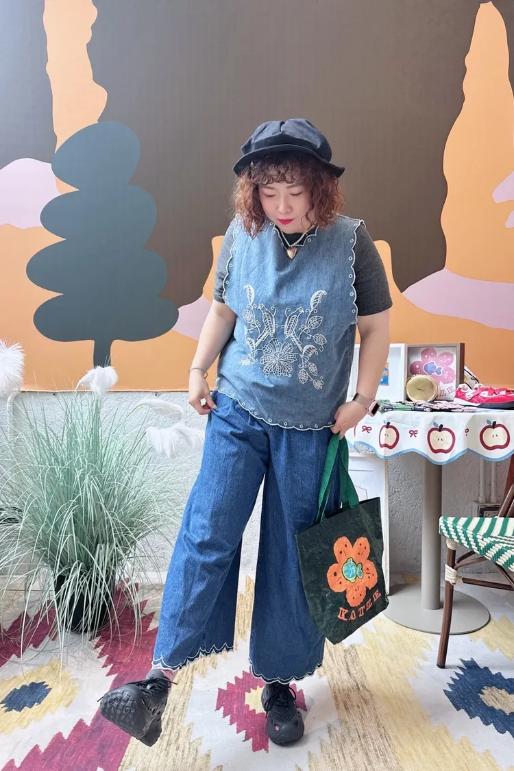 KATZE限量原創款-日系下擺花瓣鬆緊褲頭牛仔長褲