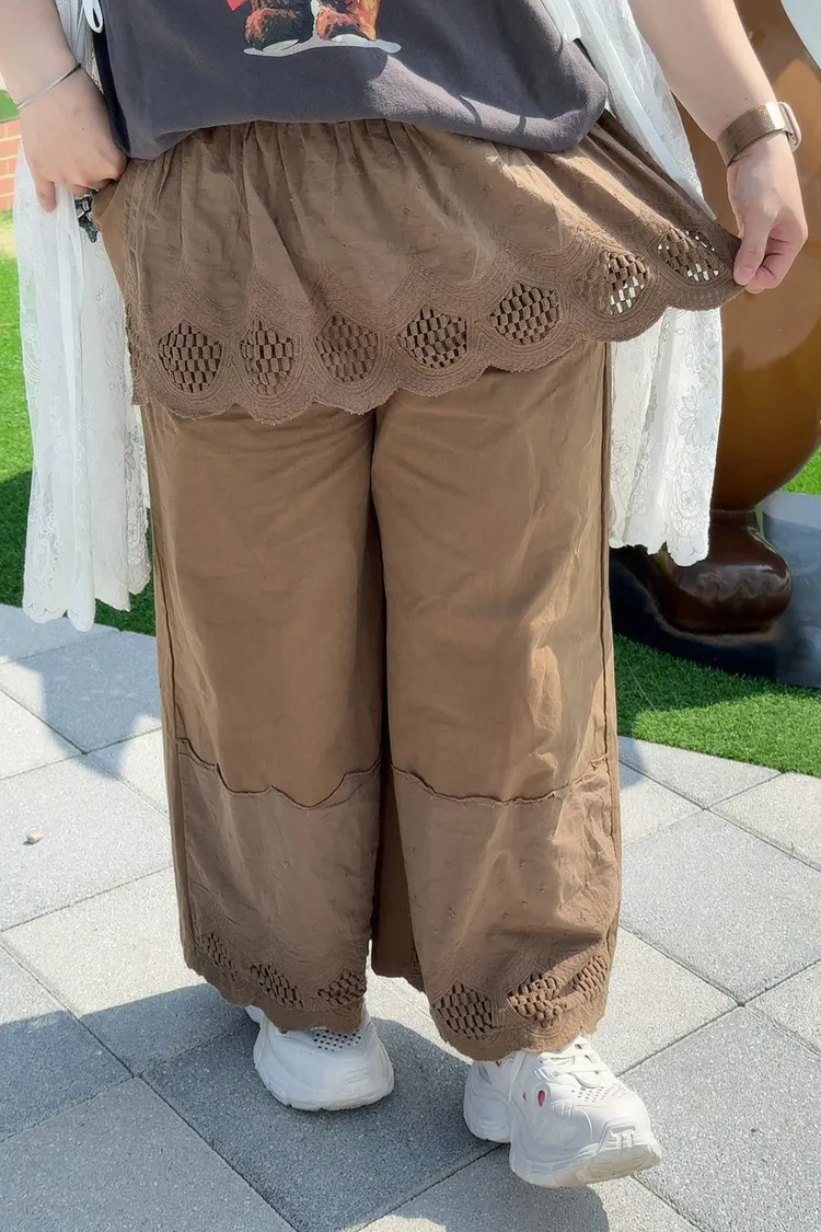 素面拼簍空部蕾絲襯裙褲 2色