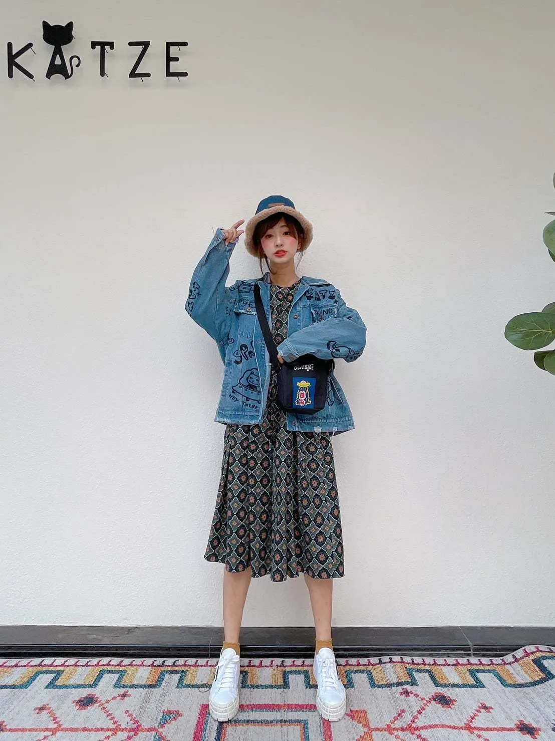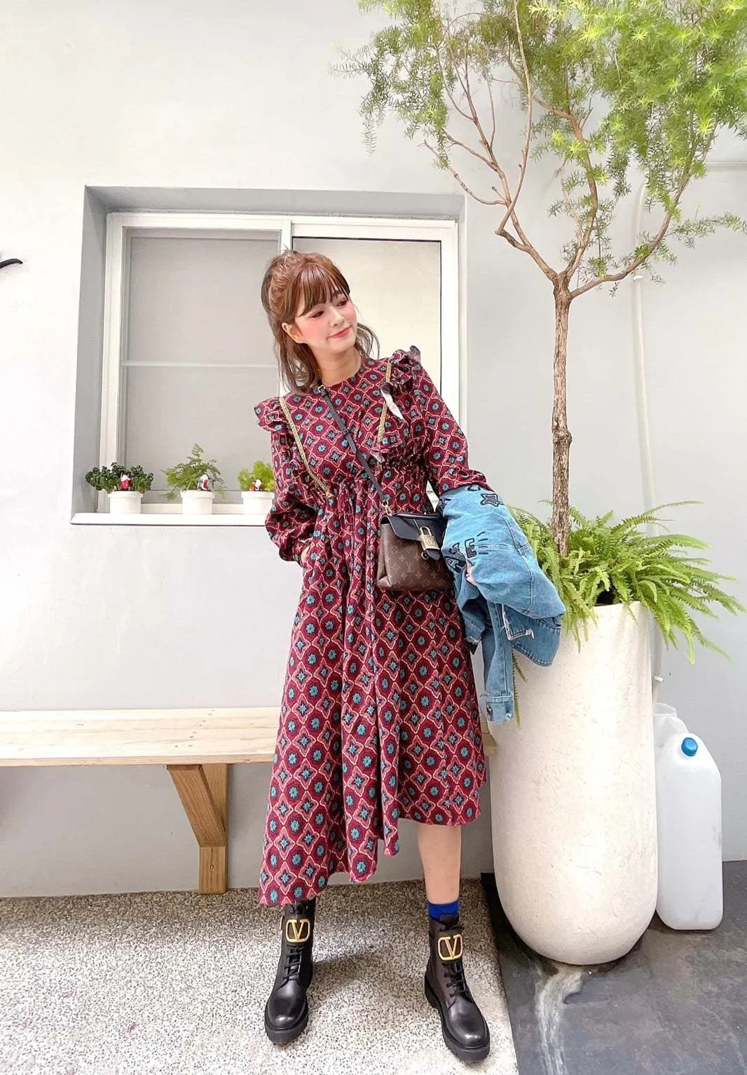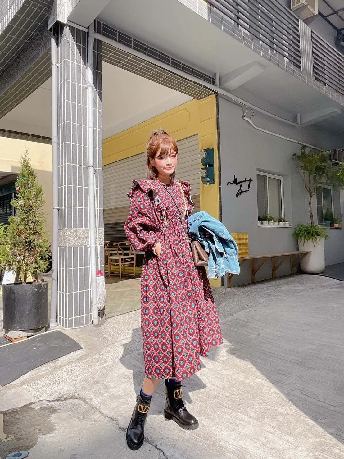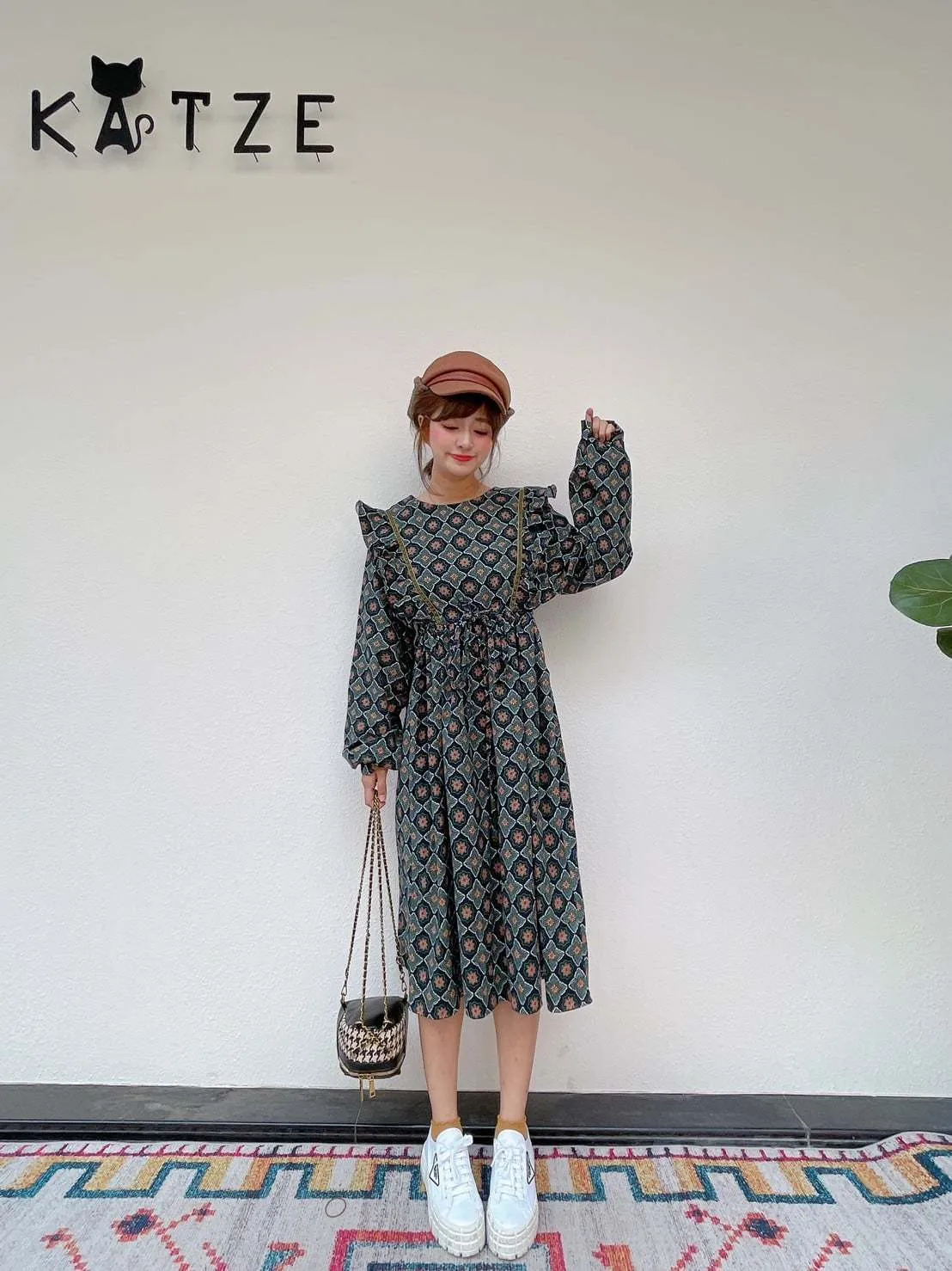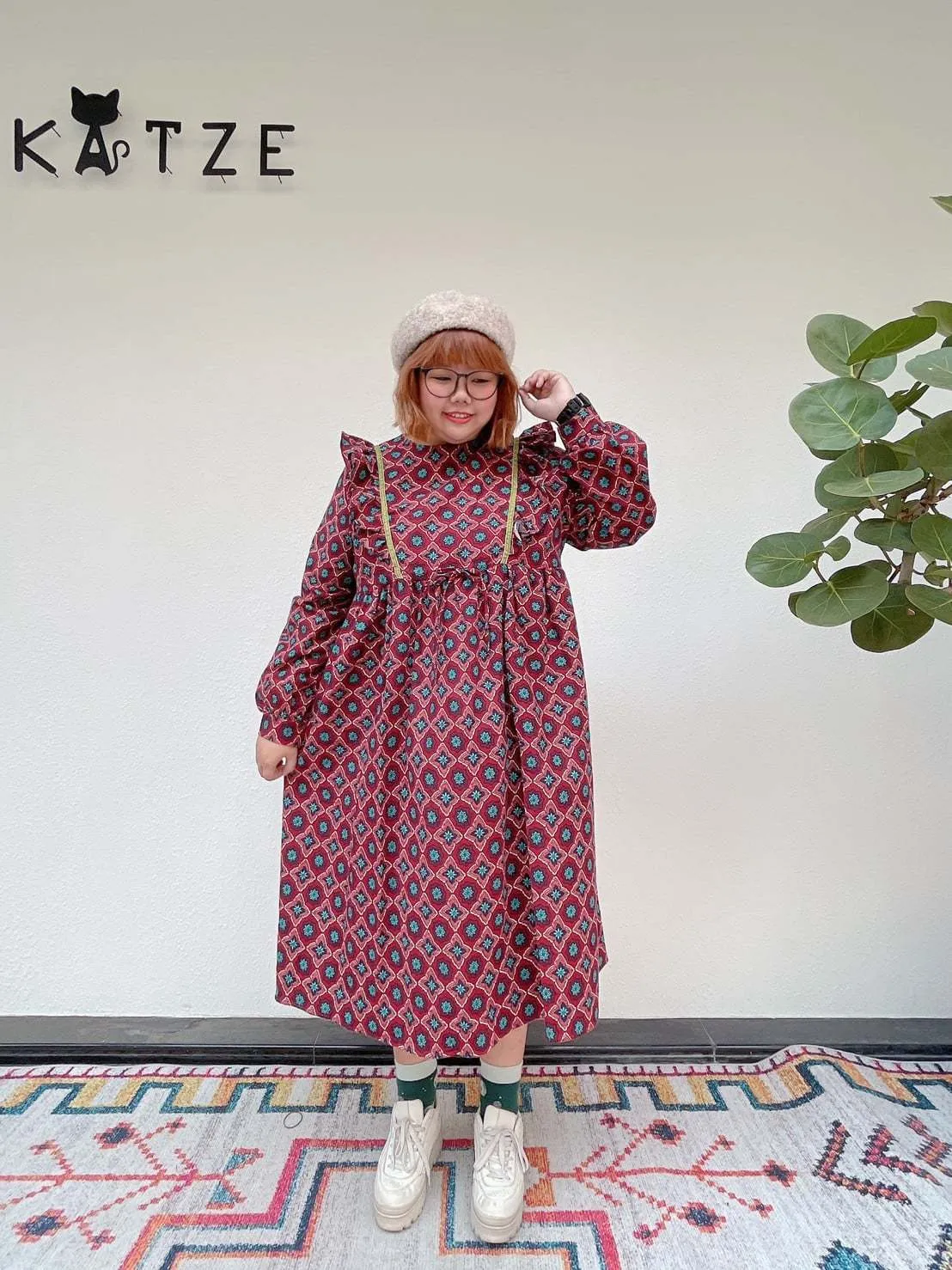 KATZE限量自訂款-老屋花磚荷葉抽繩復古洋 2色