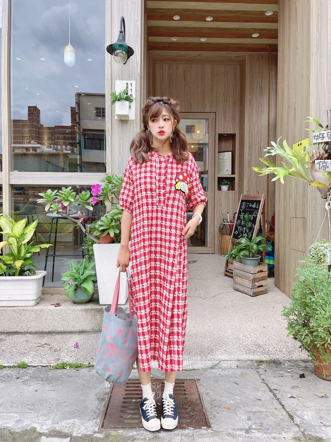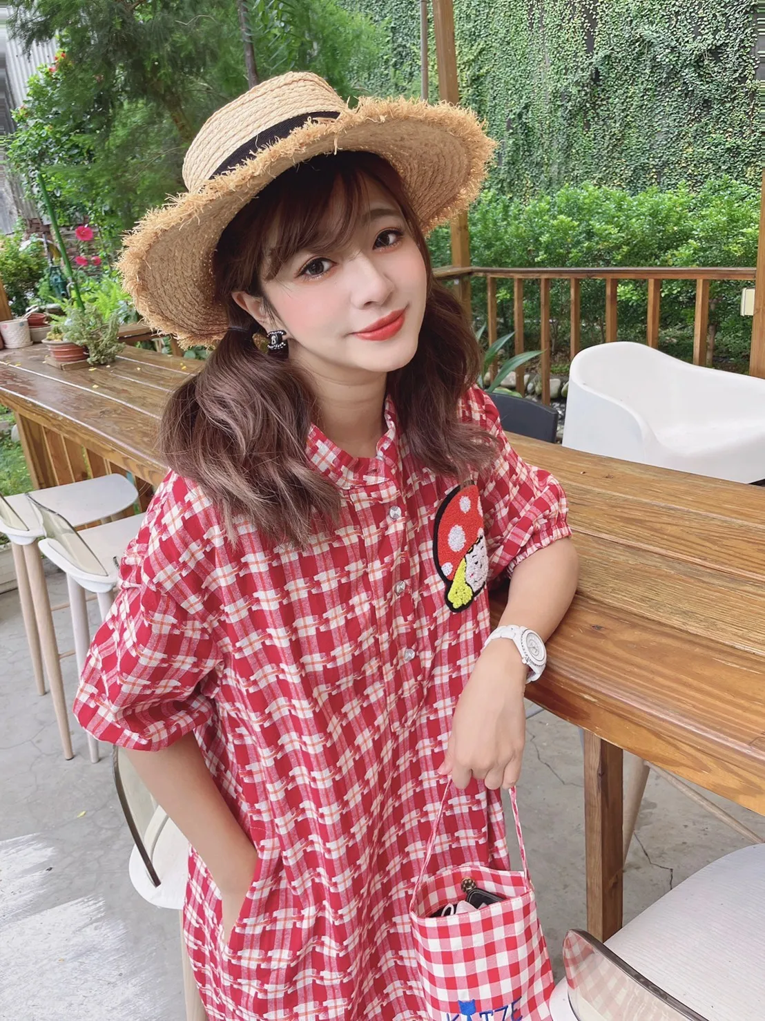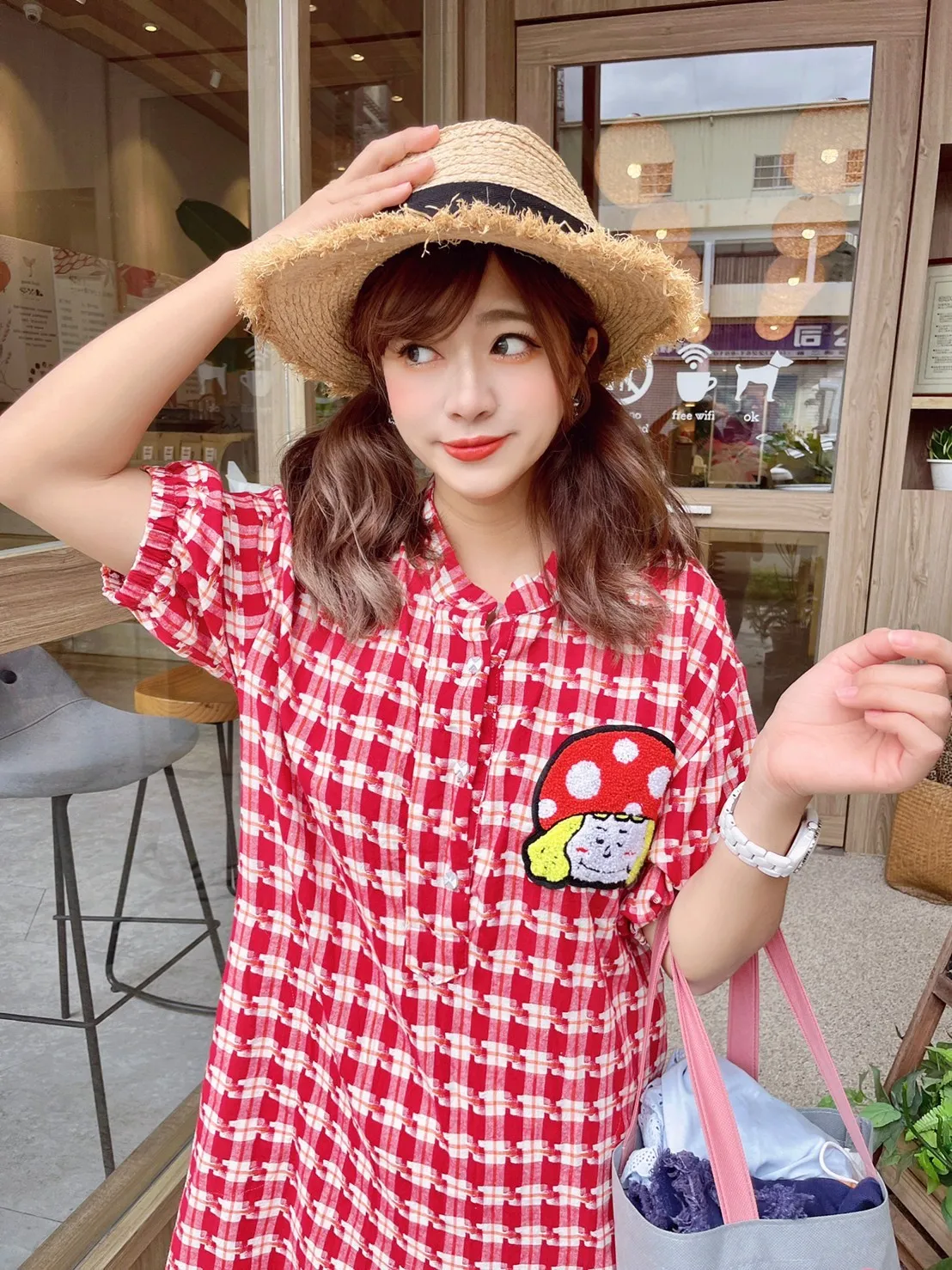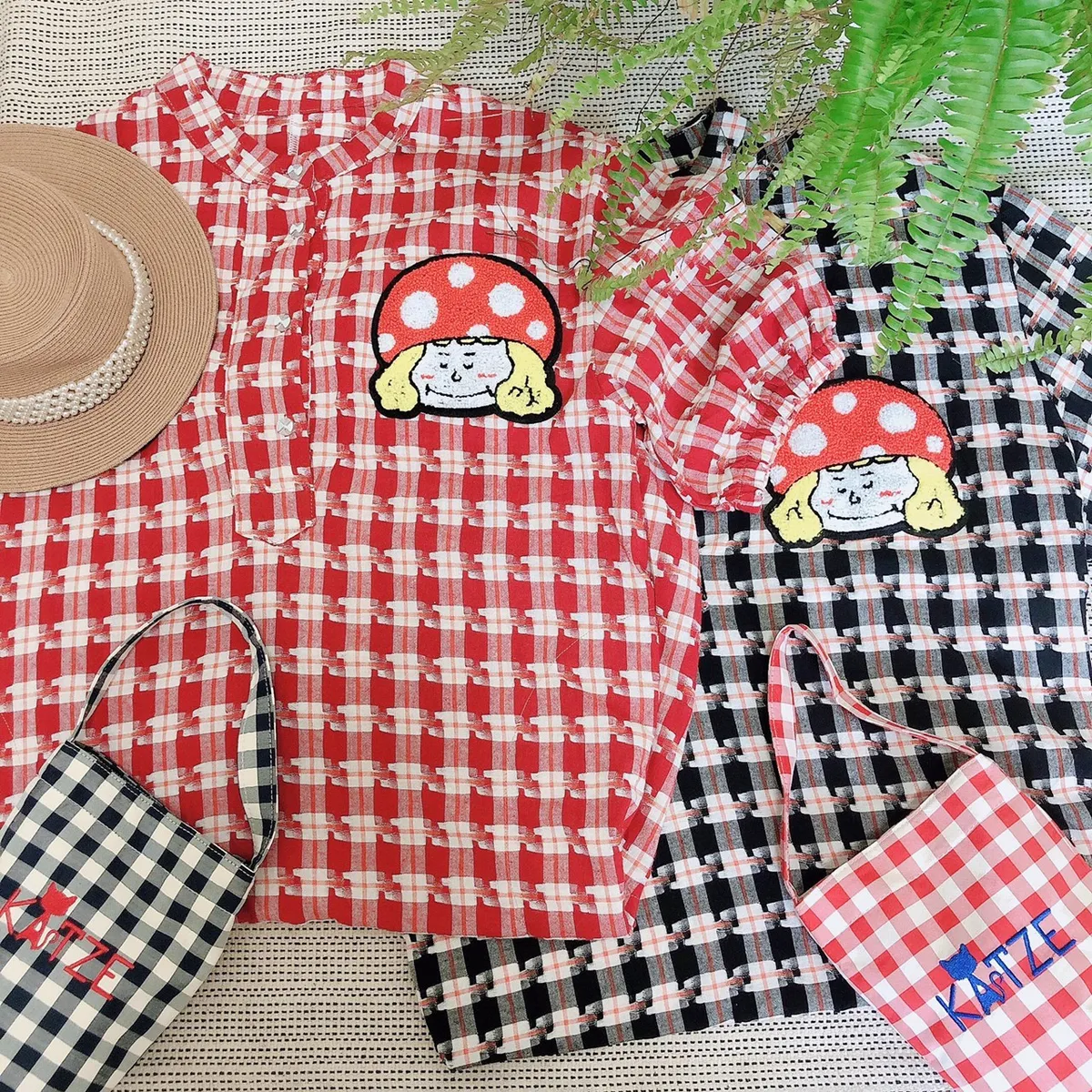 KATZE限量原創款-蘑菇肉妹格紋洋裝 2色