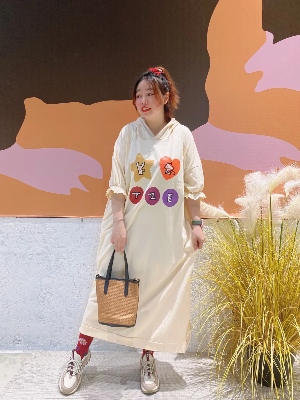 KATZE限量原創款-品牌LOGO連帽洋裝 2色