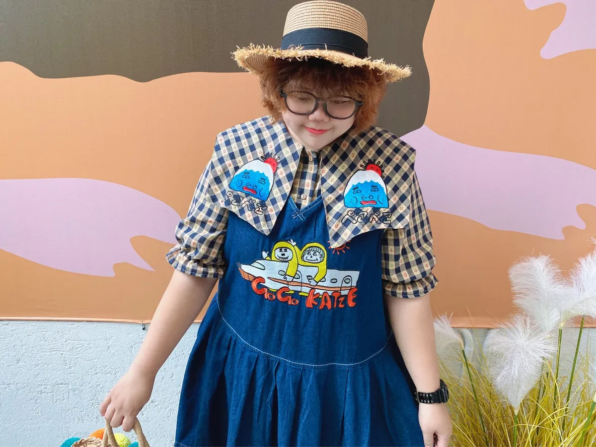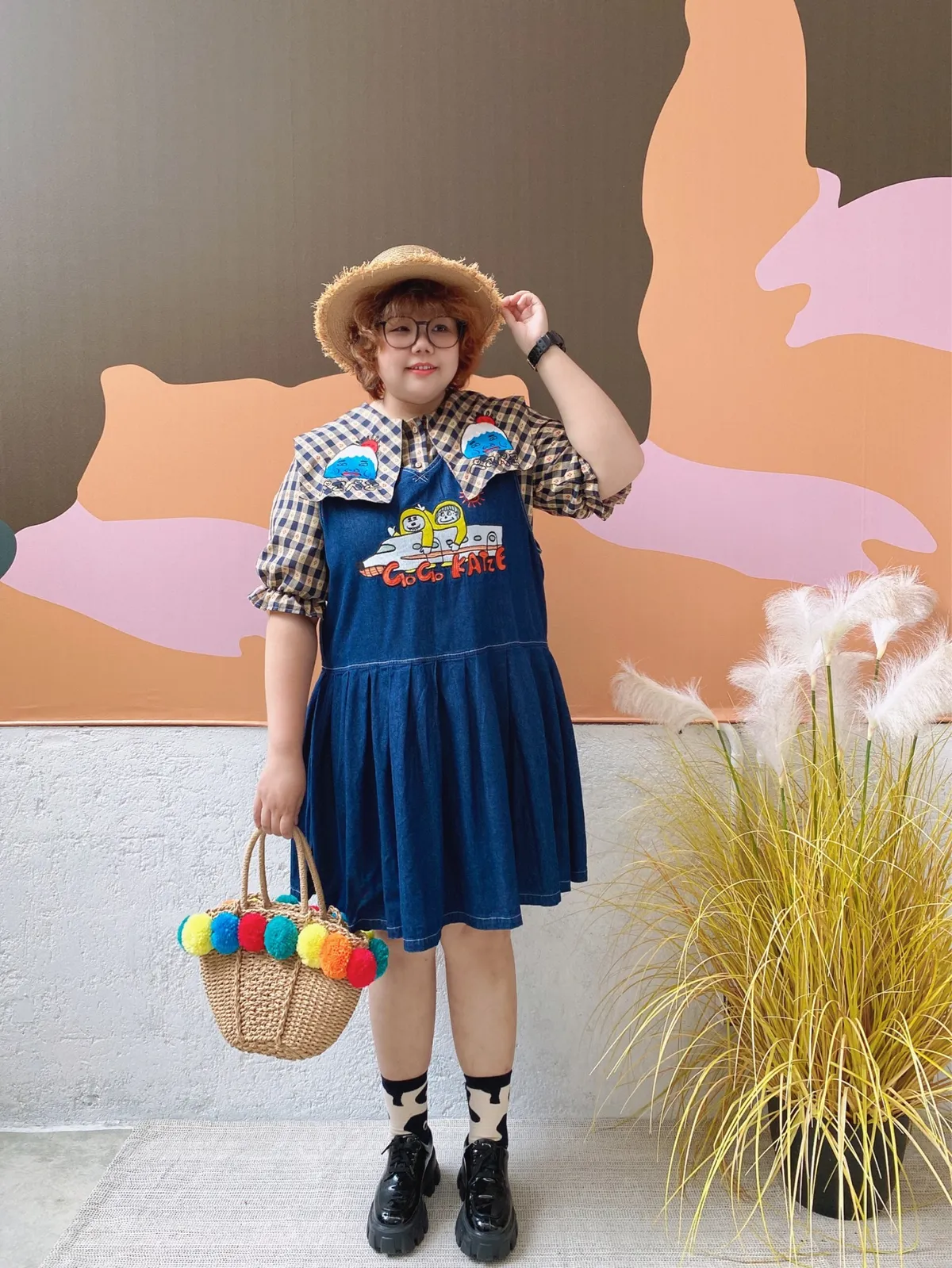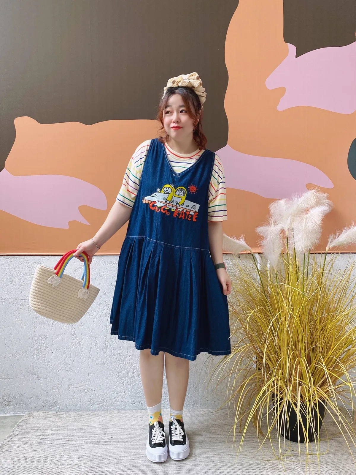 KATZE限量原創款-阿福肉妹一起去旅行牛仔背心洋