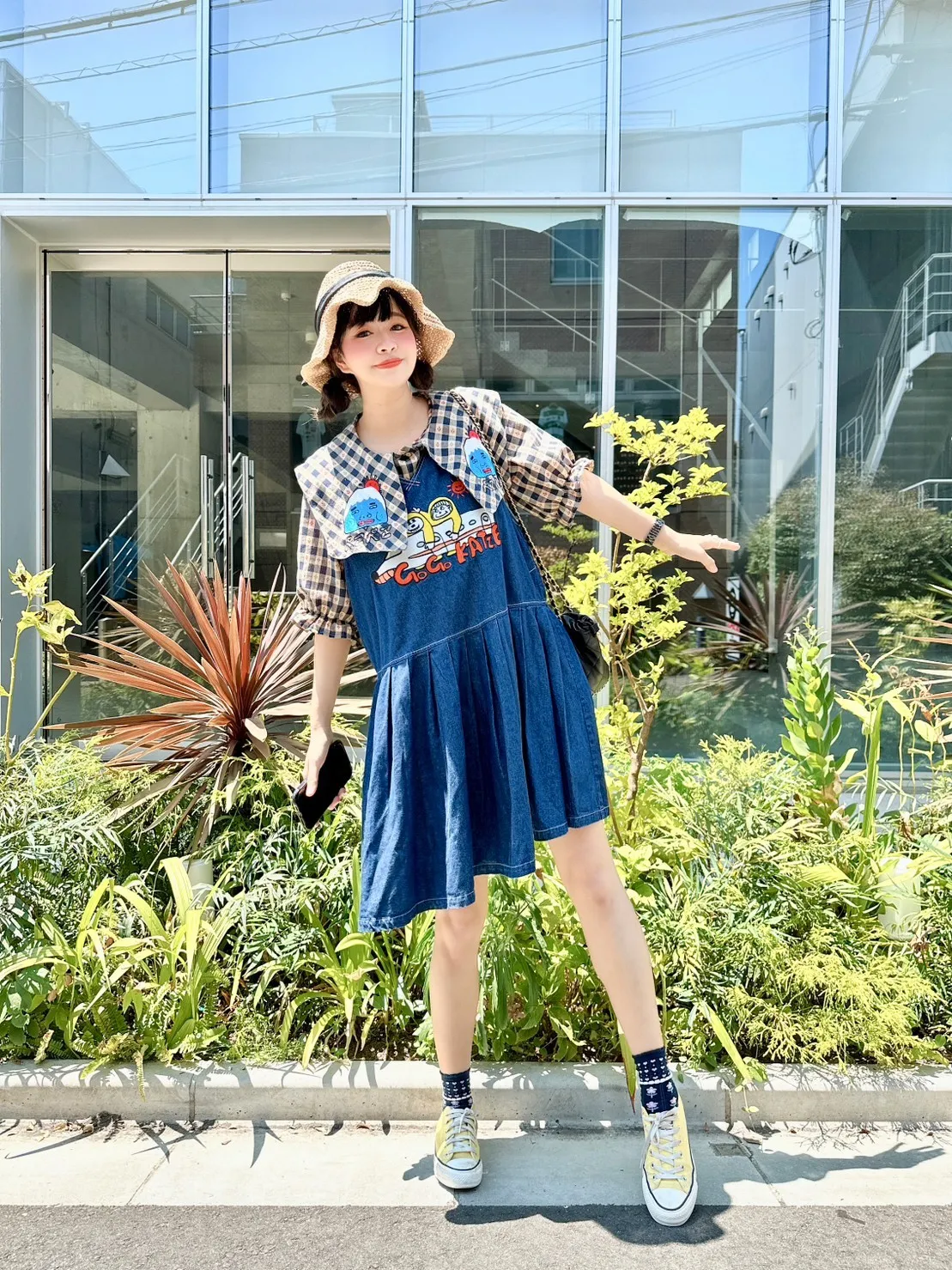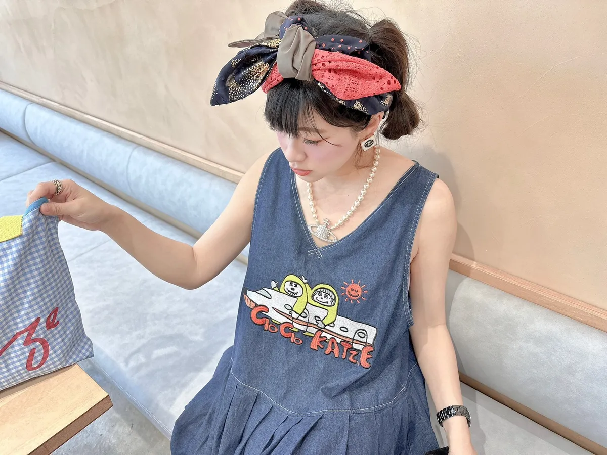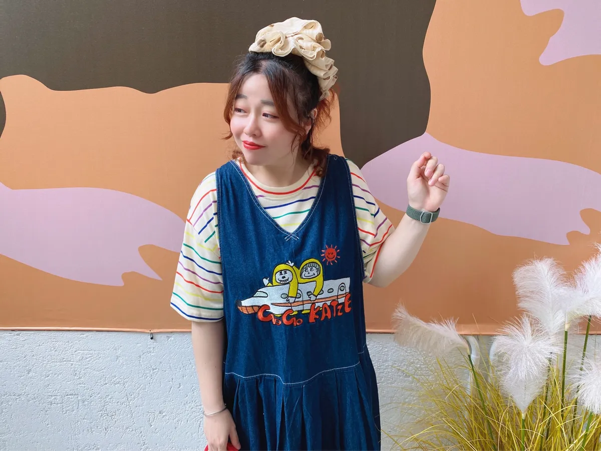 KATZE限量原創款-阿福肉妹一起去旅行牛仔背心洋