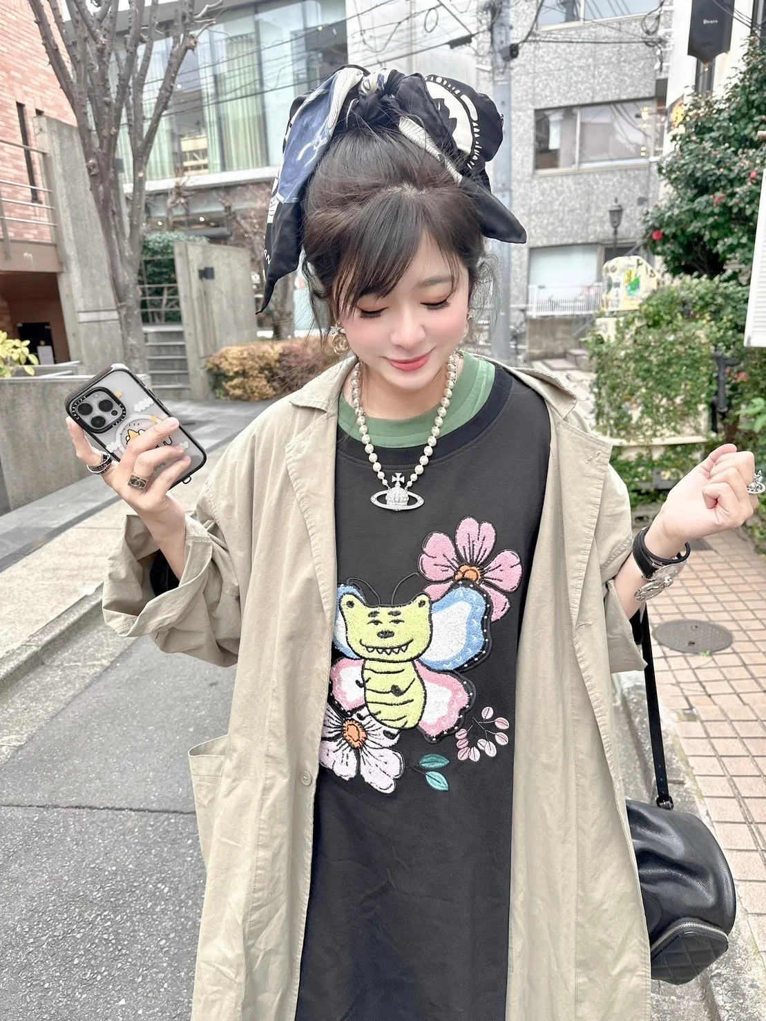 KATZE限量原創款-滿滿毛巾繡花招蜂引蝶阿福洋裝 2色