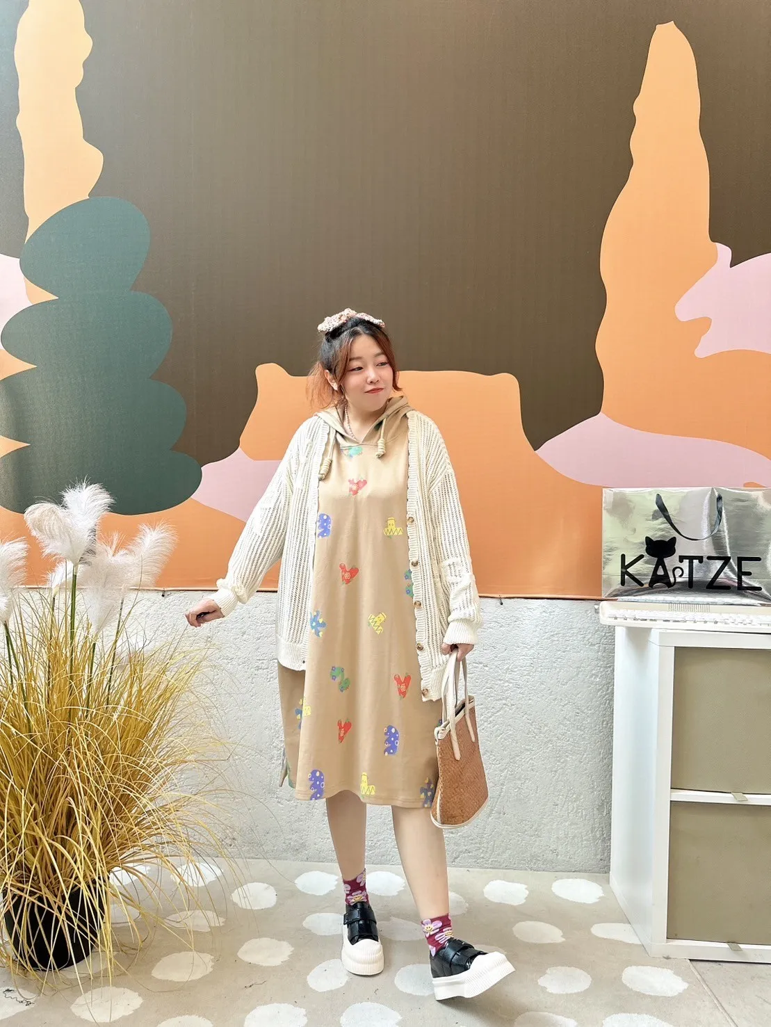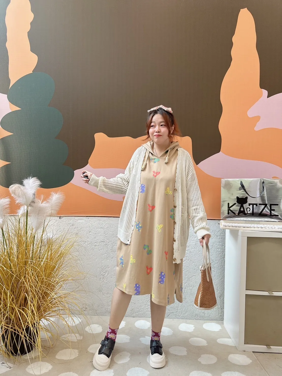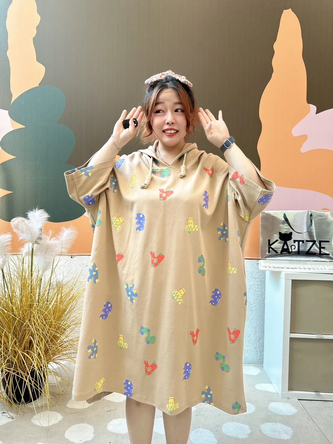 KATZE限量原創款-滿版LOGO字母連帽【洋裝】