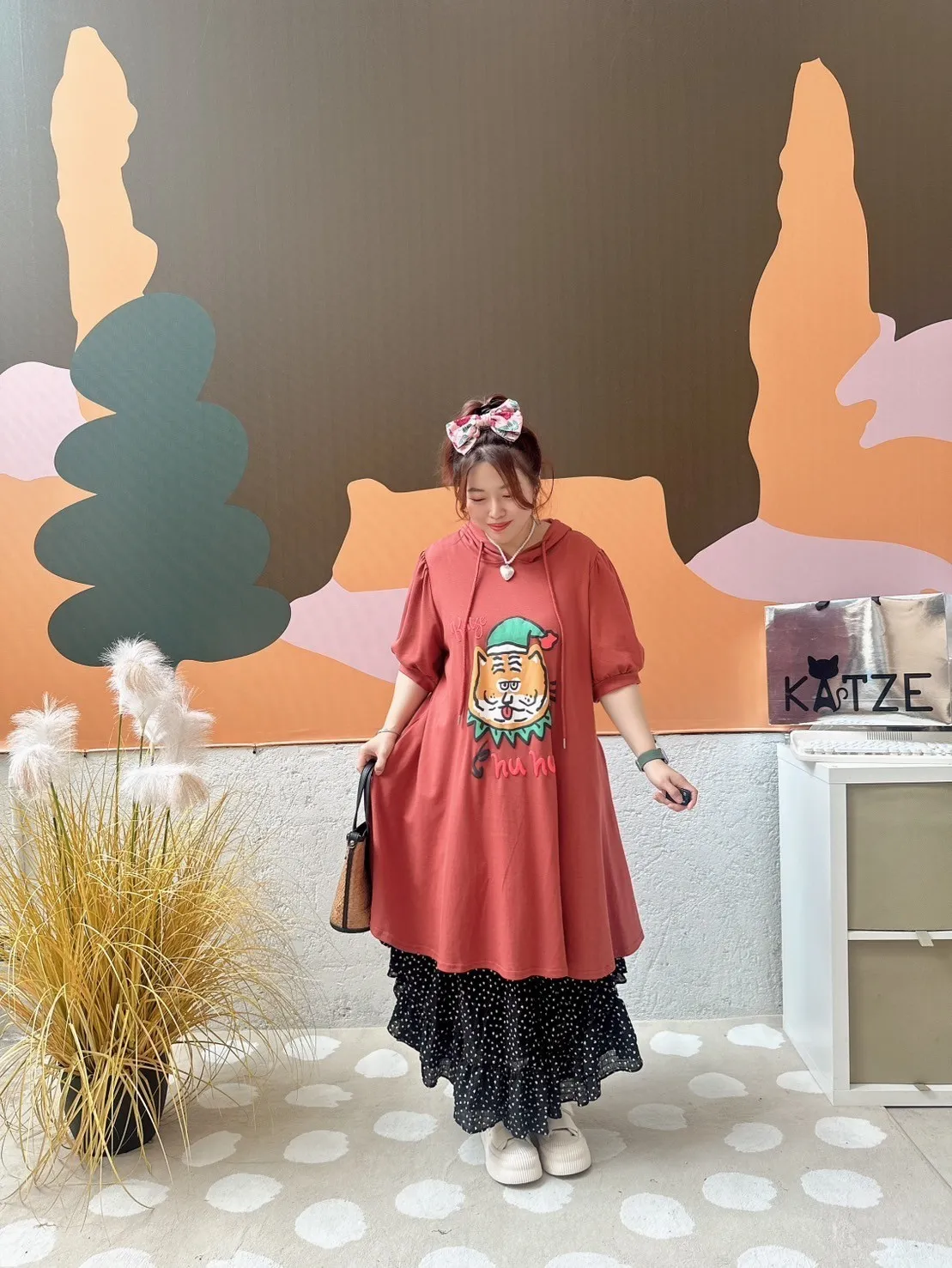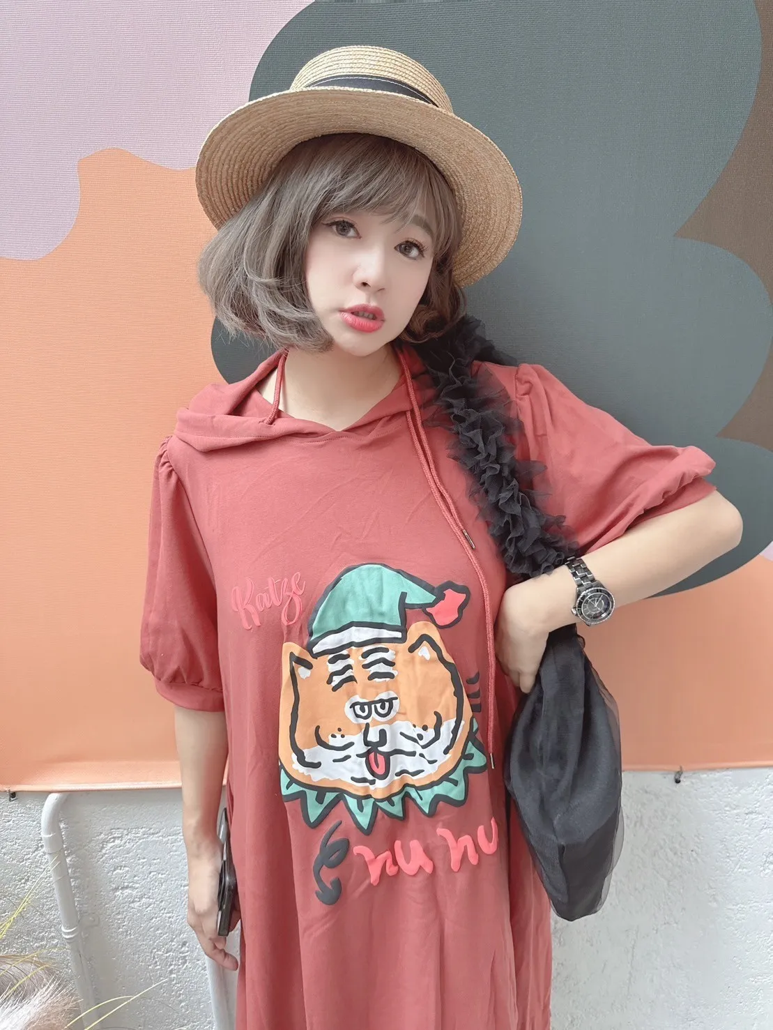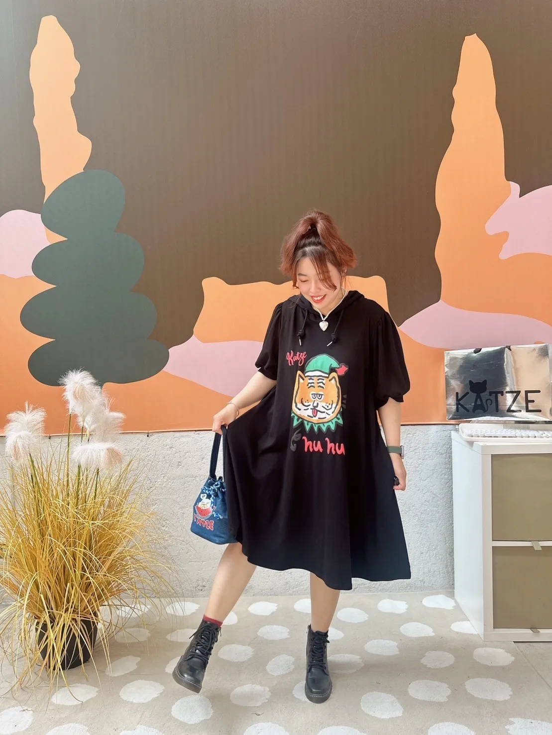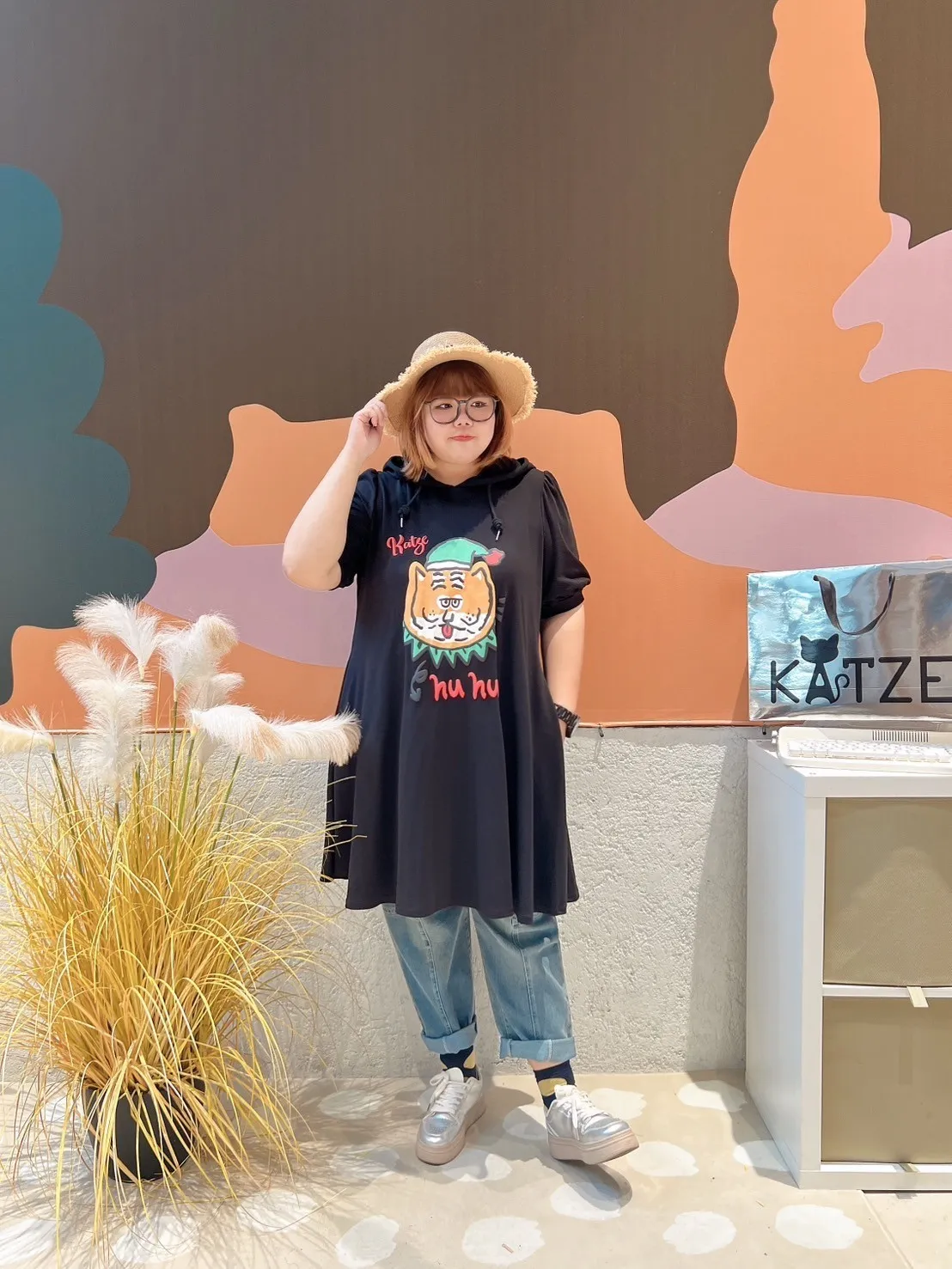 KATZE限量原創款-可愛阿虎連帽短洋 2色