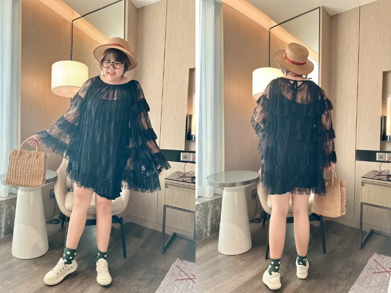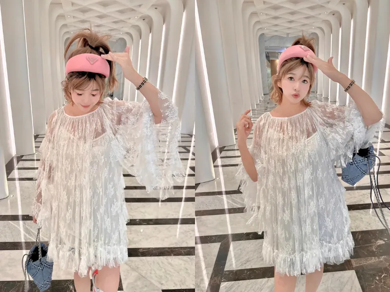 浮誇蕾絲短版洋裝 2色