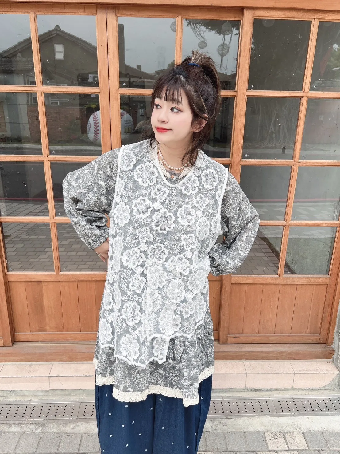 滾蕾絲開釦短版洋裝 2色