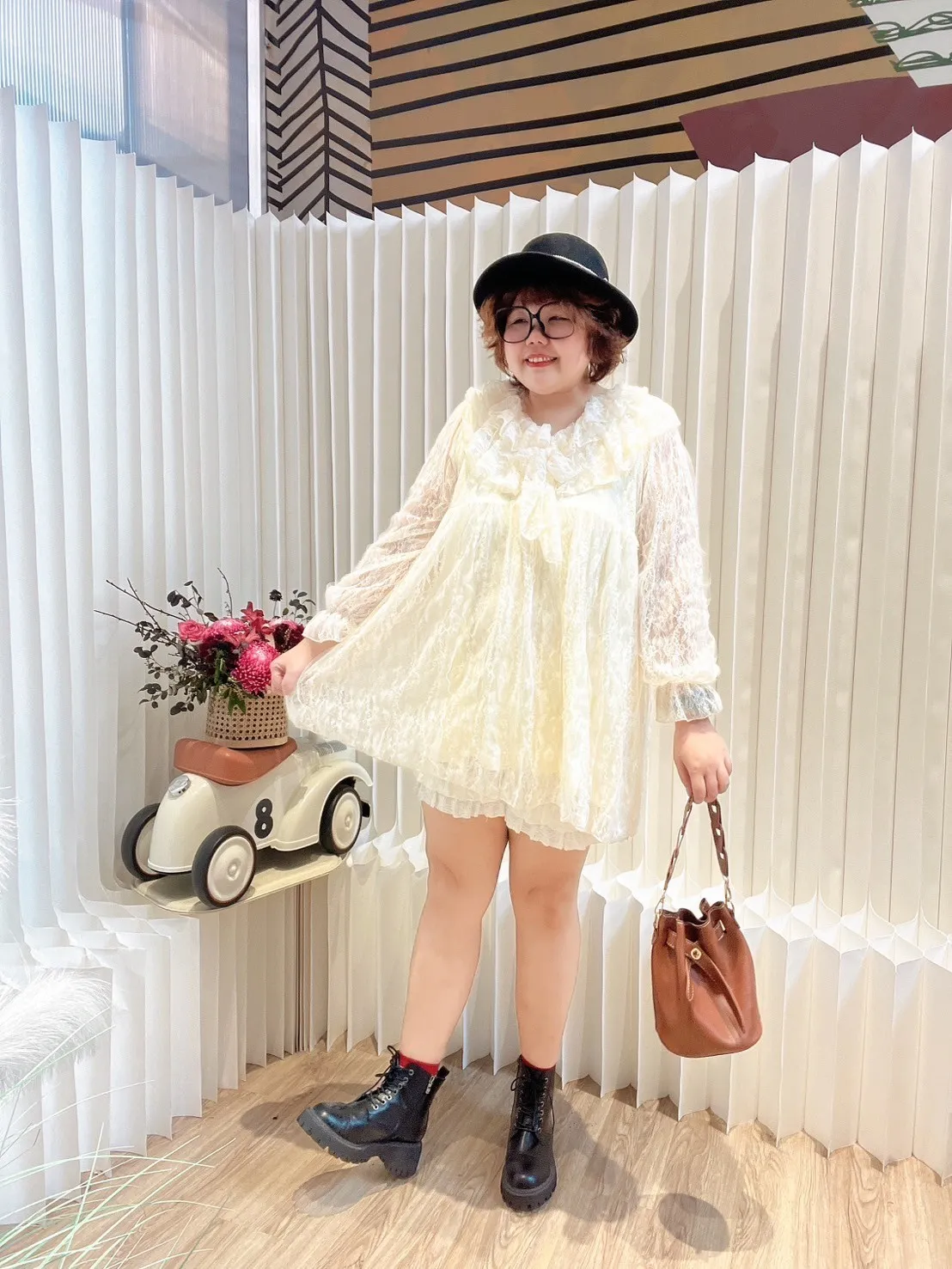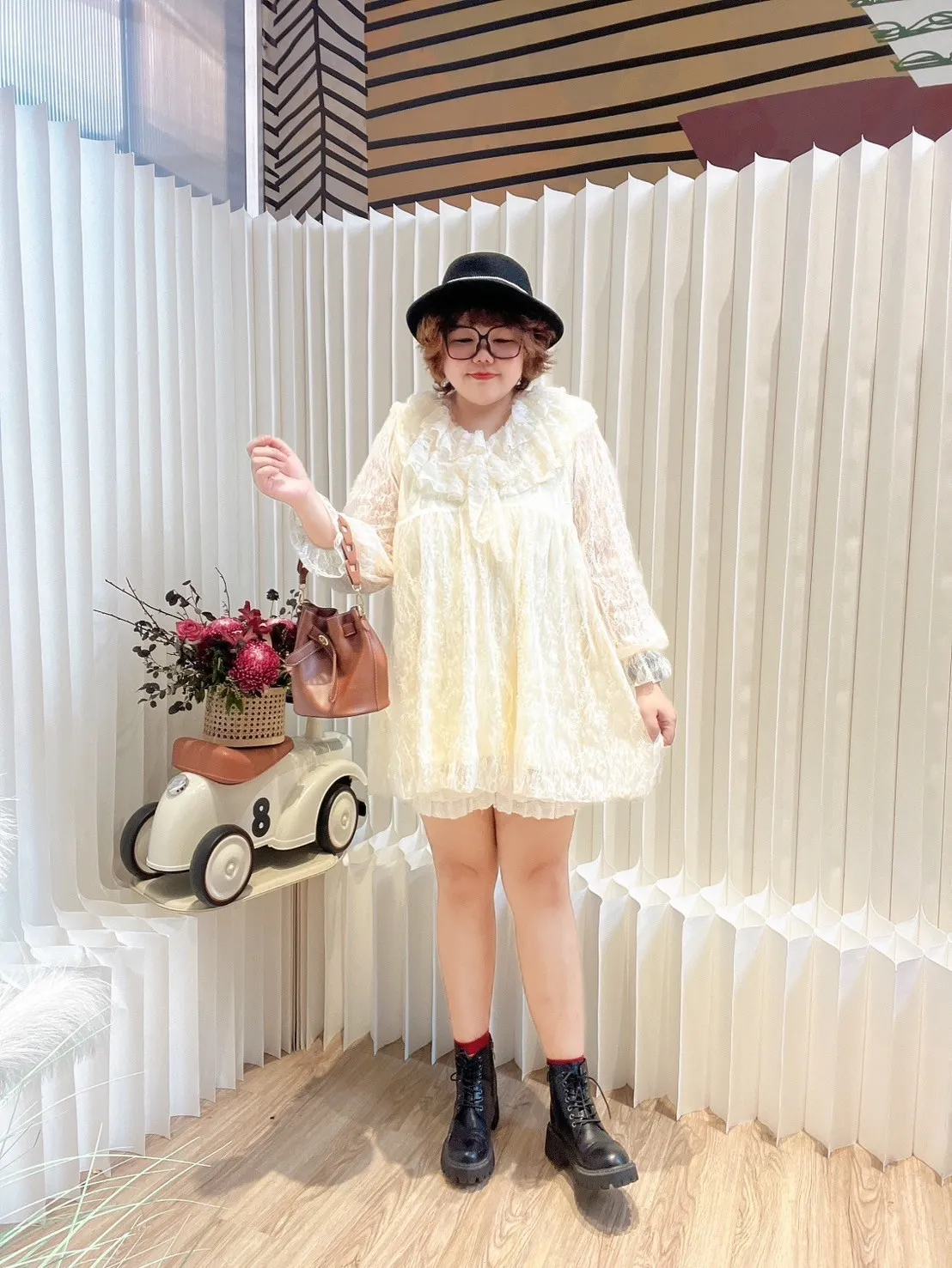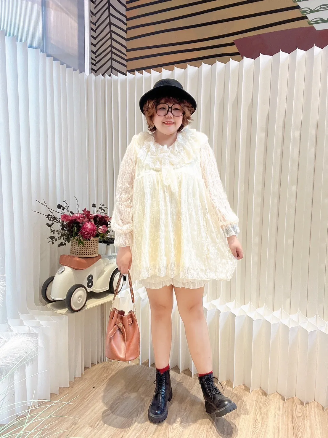 荷葉領蕾絲短洋