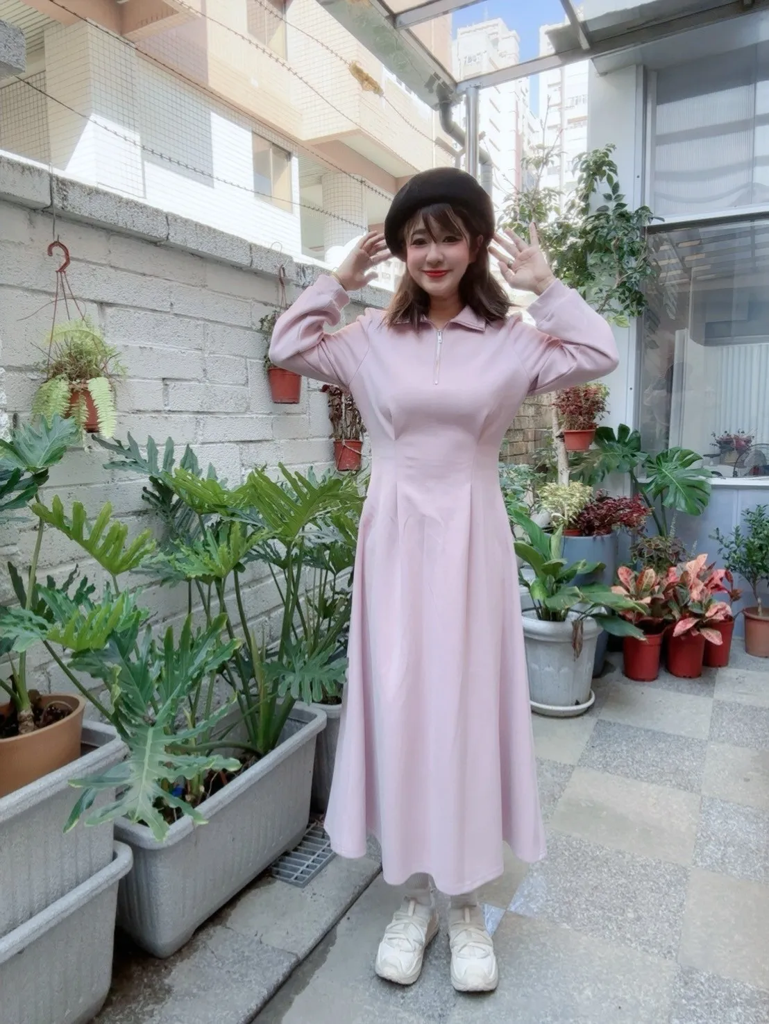 拉鏈翻領休閒洋裝 2色