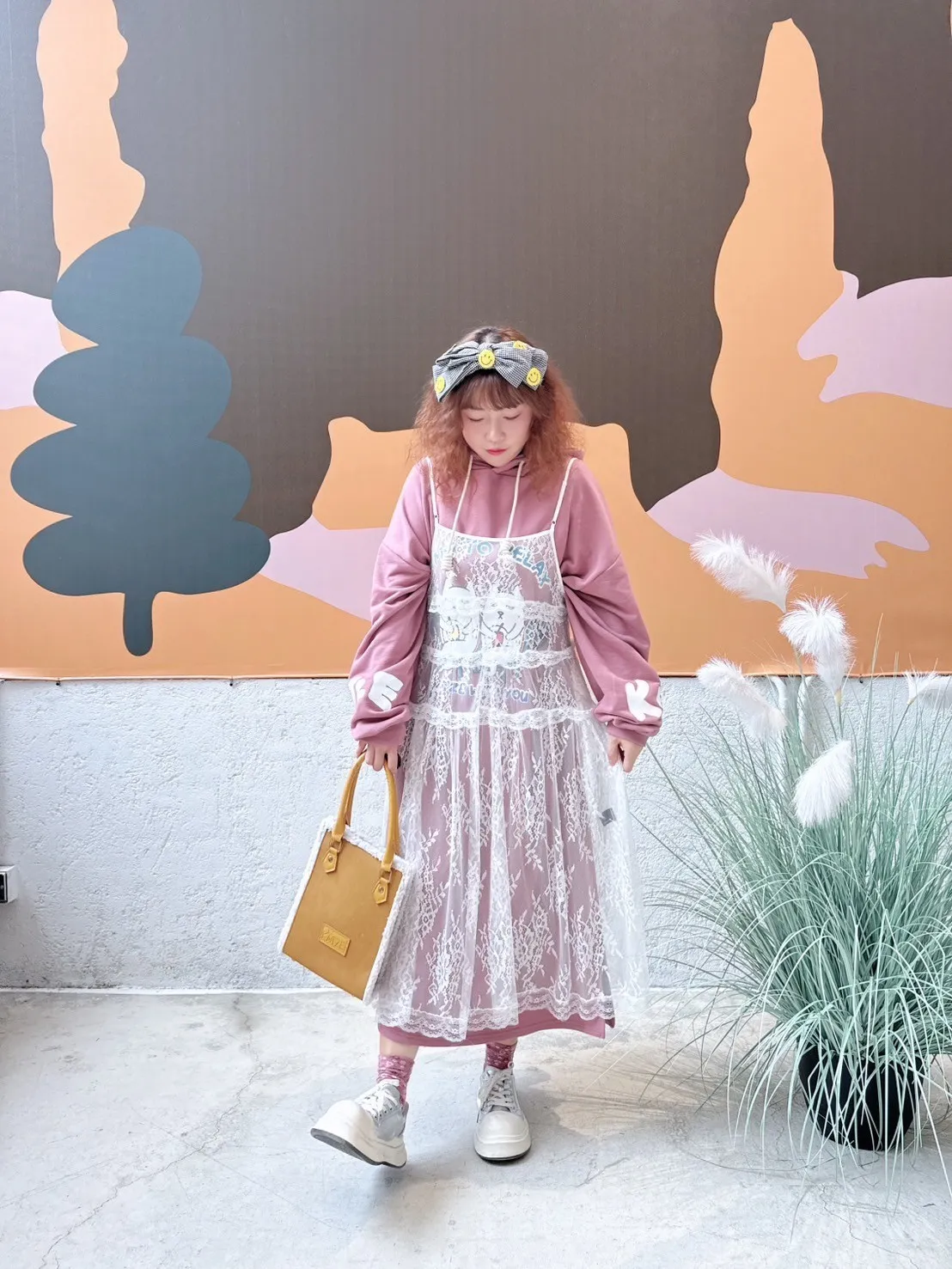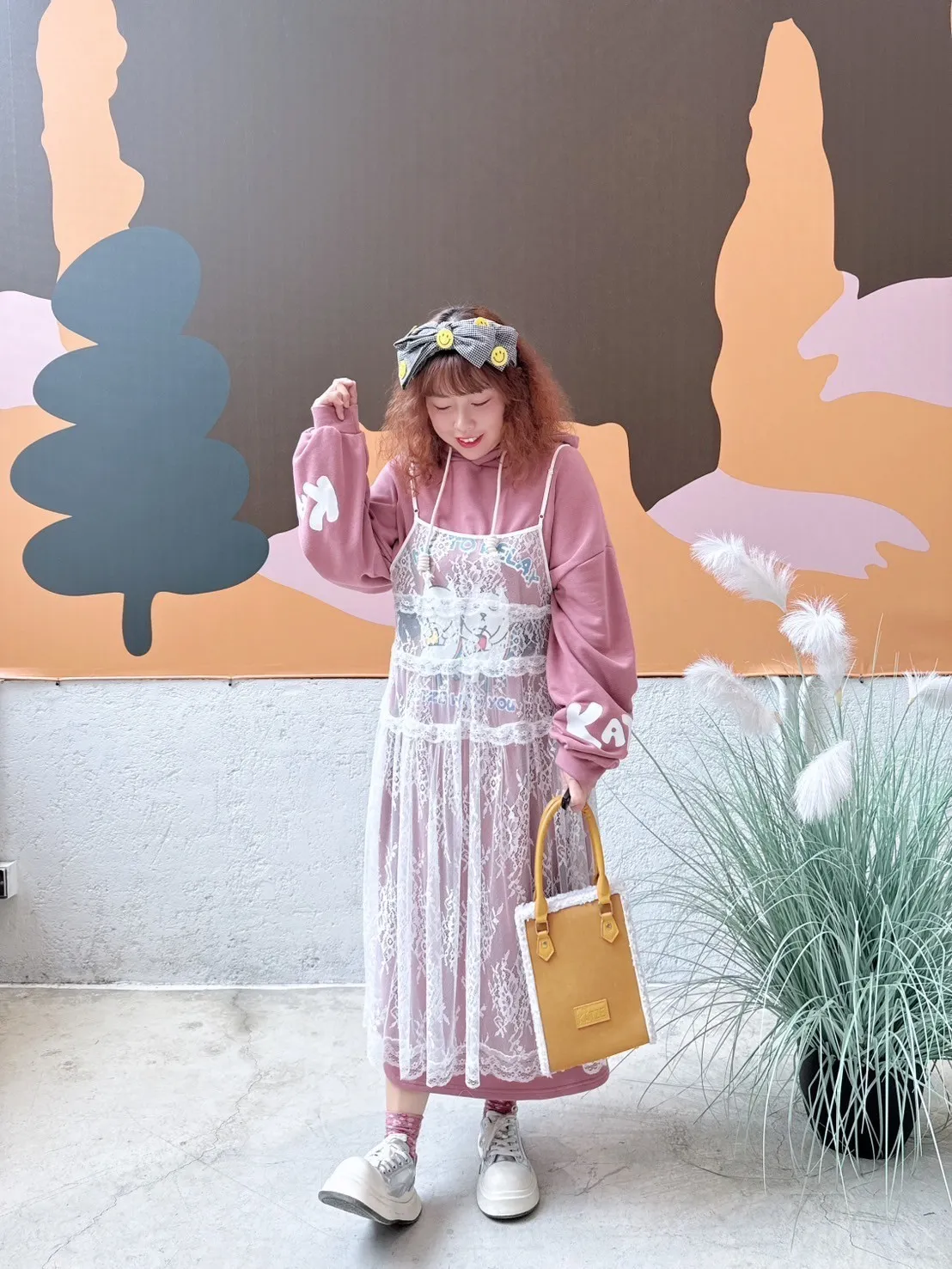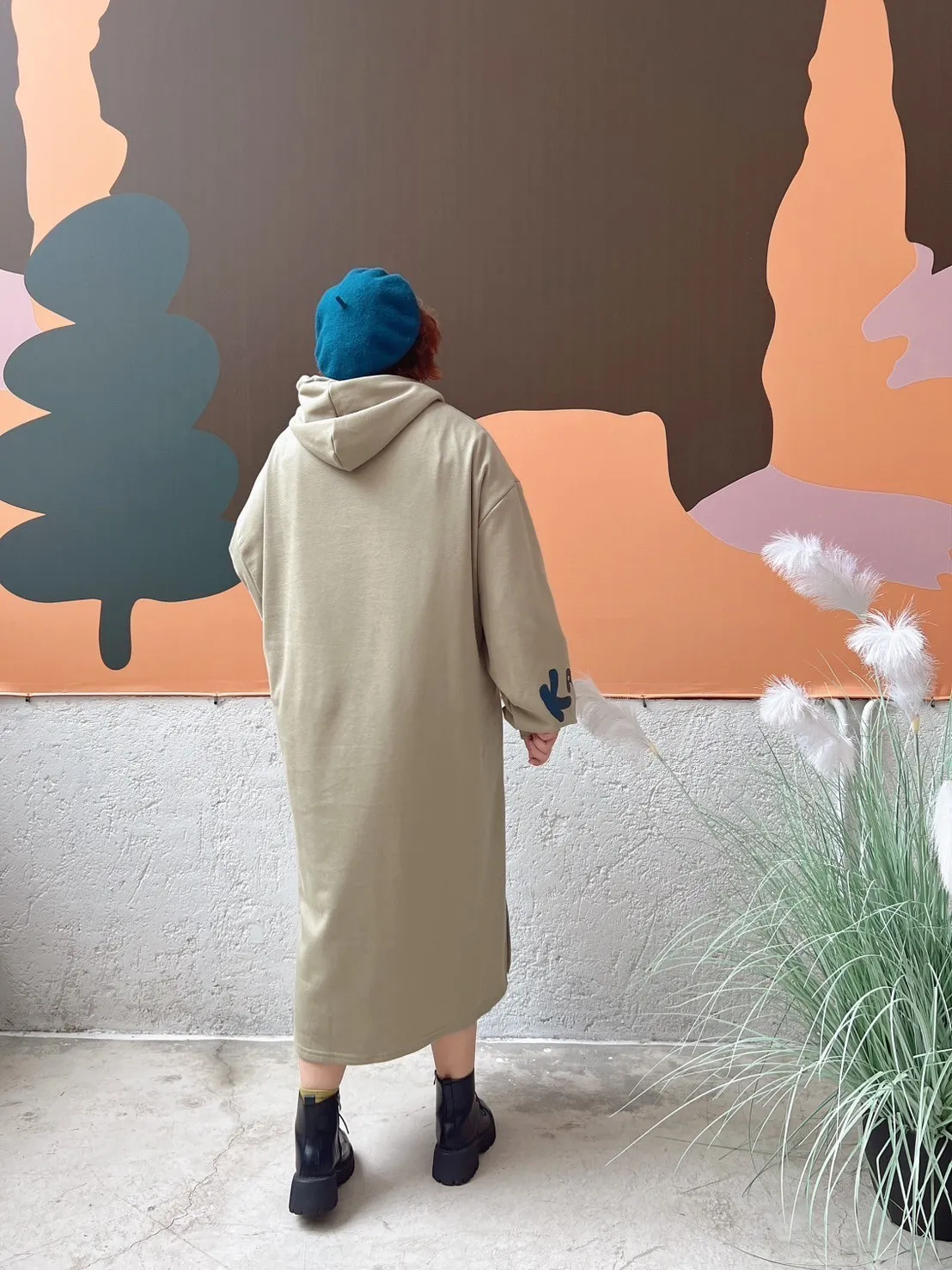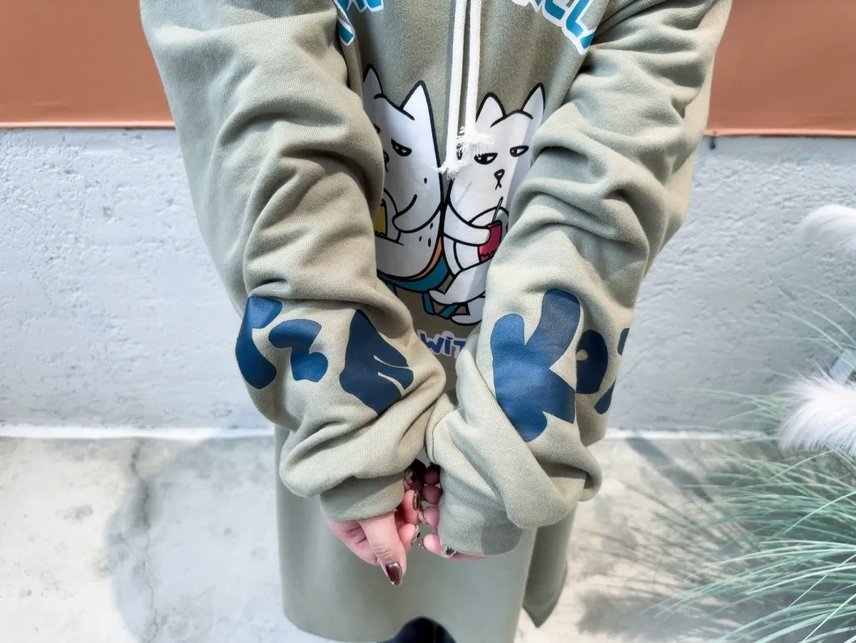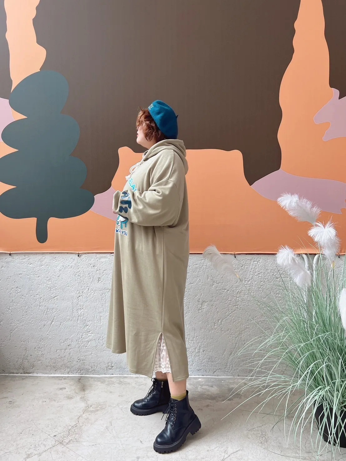 KATZE限量原創款-TIME TO RELAX印刷一起貓舒適連帽洋裝 2色