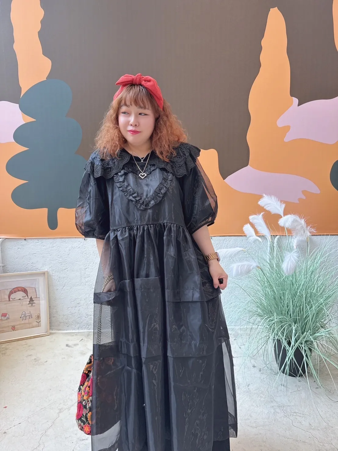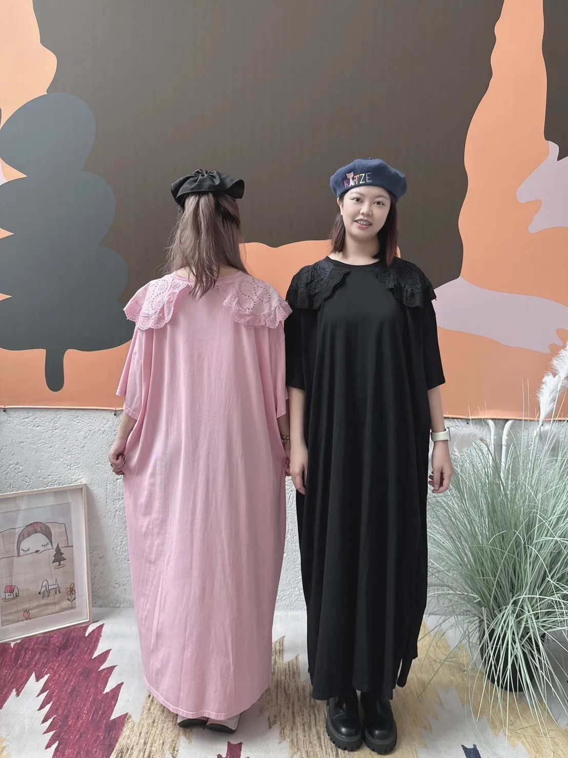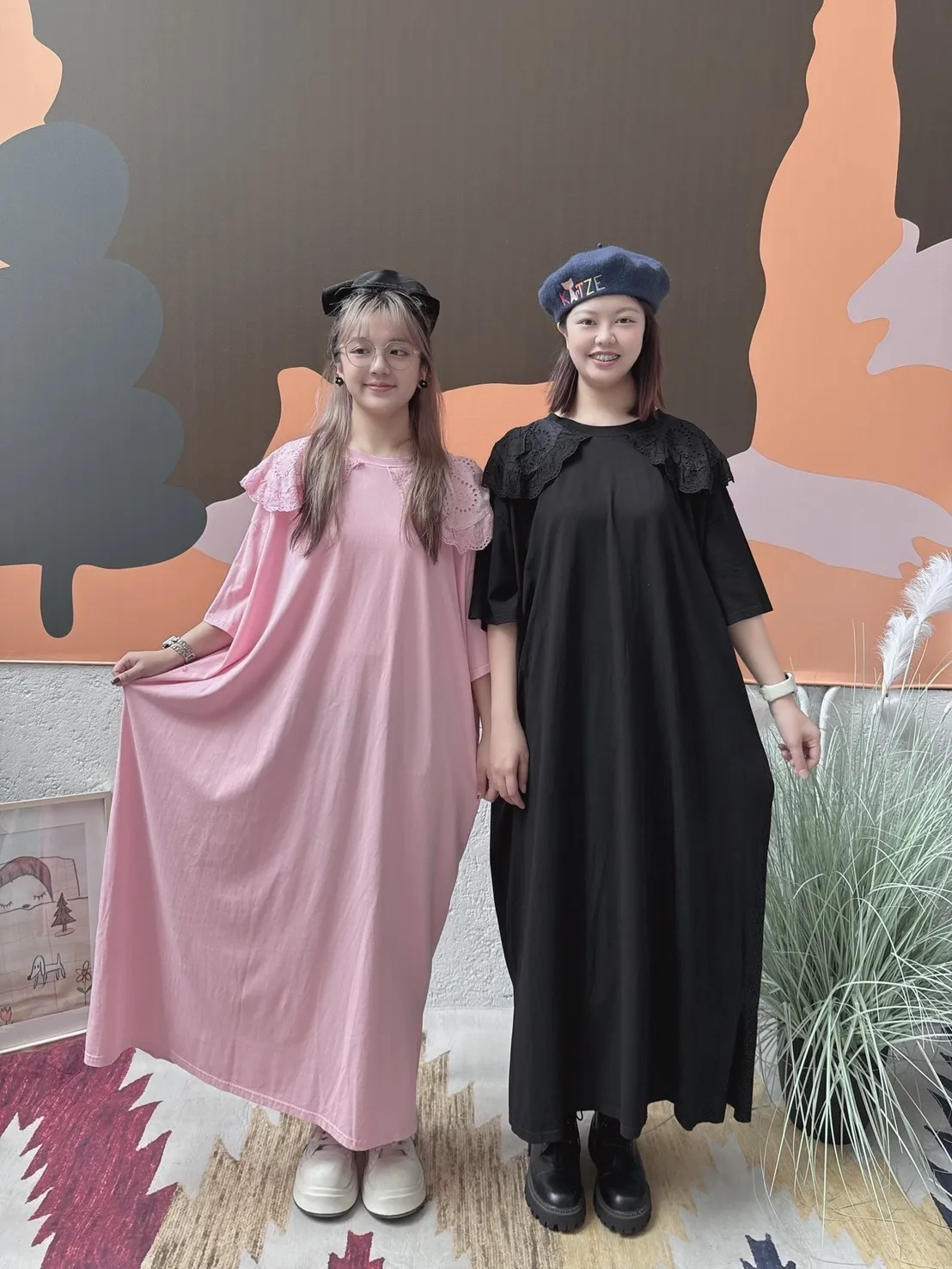 KATZE限量原創款-布蕾絲領片純色洋裝 2色