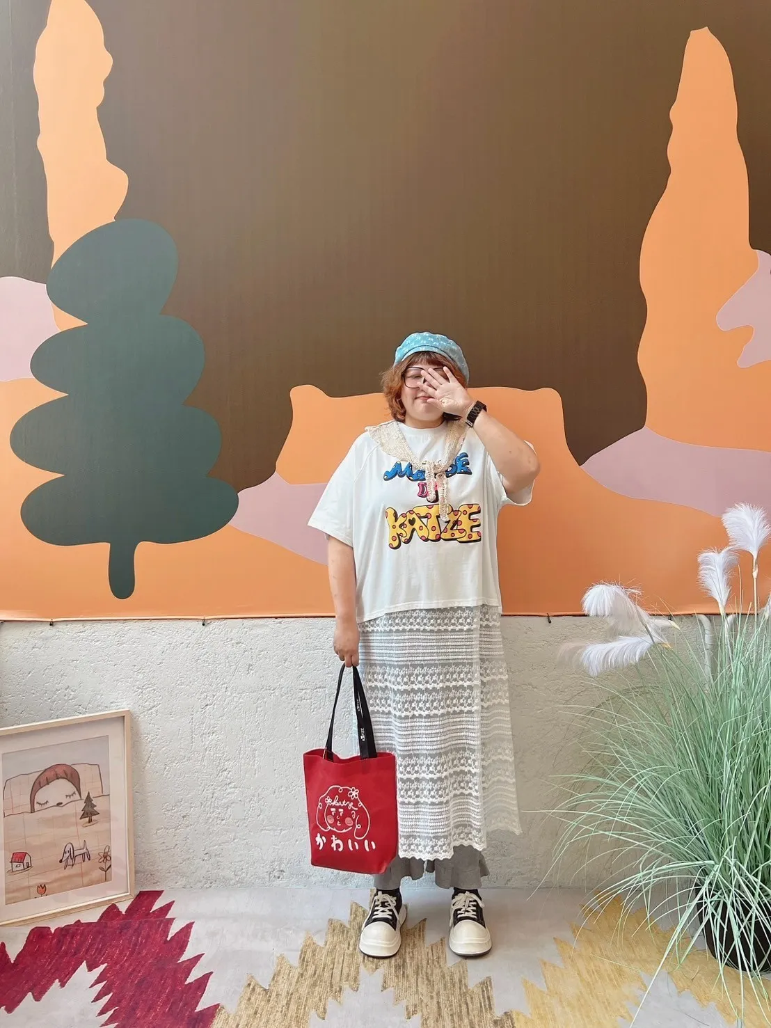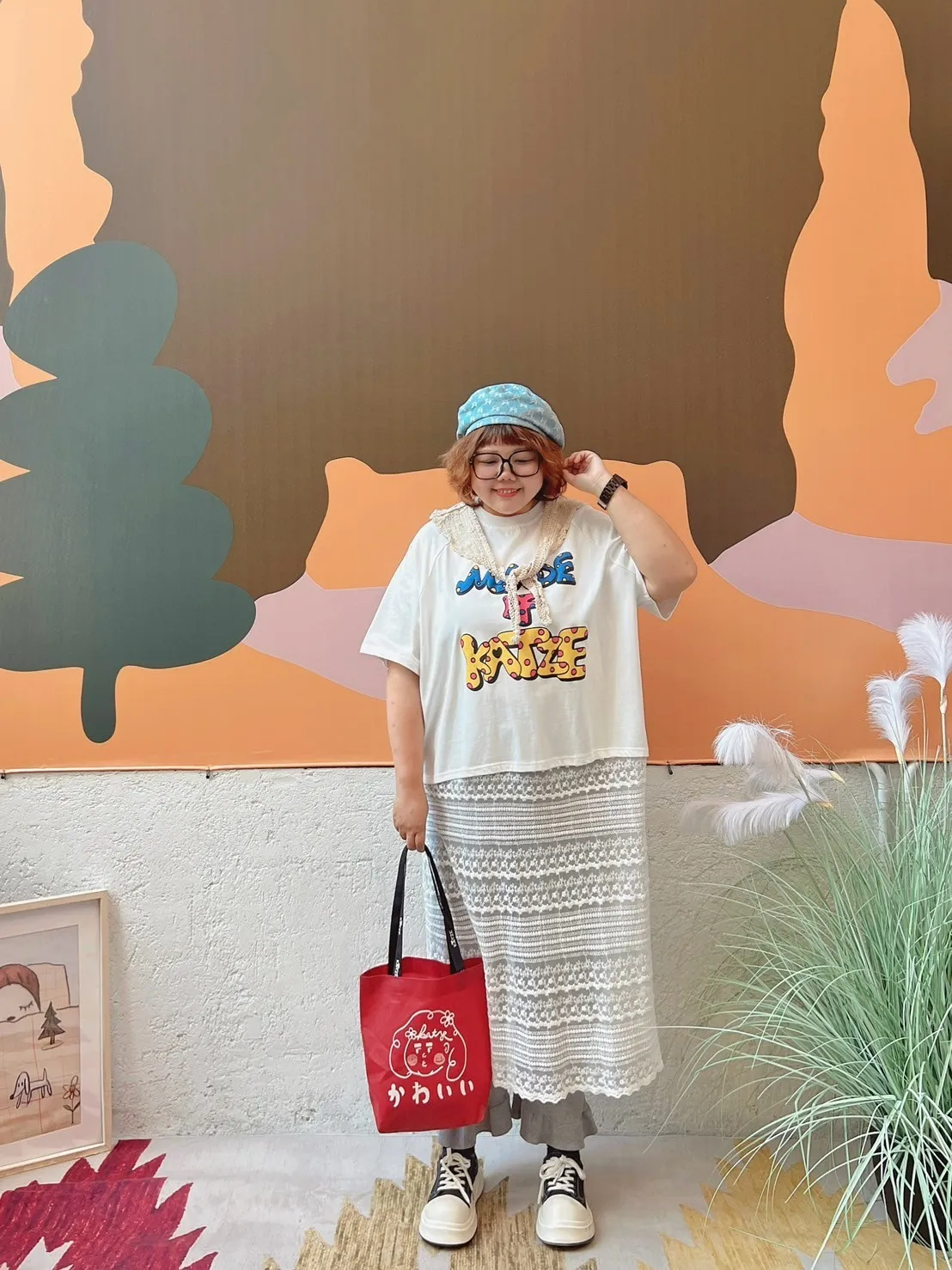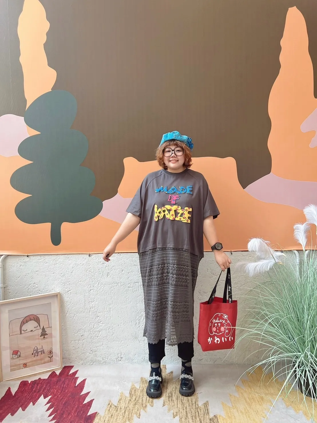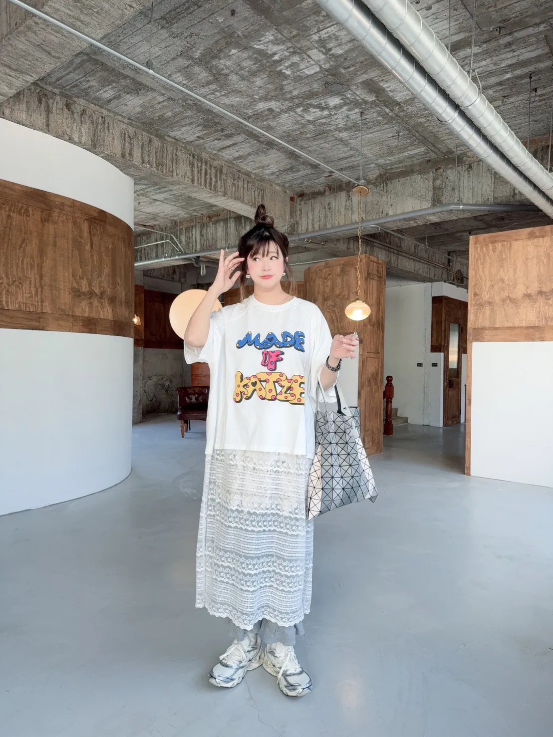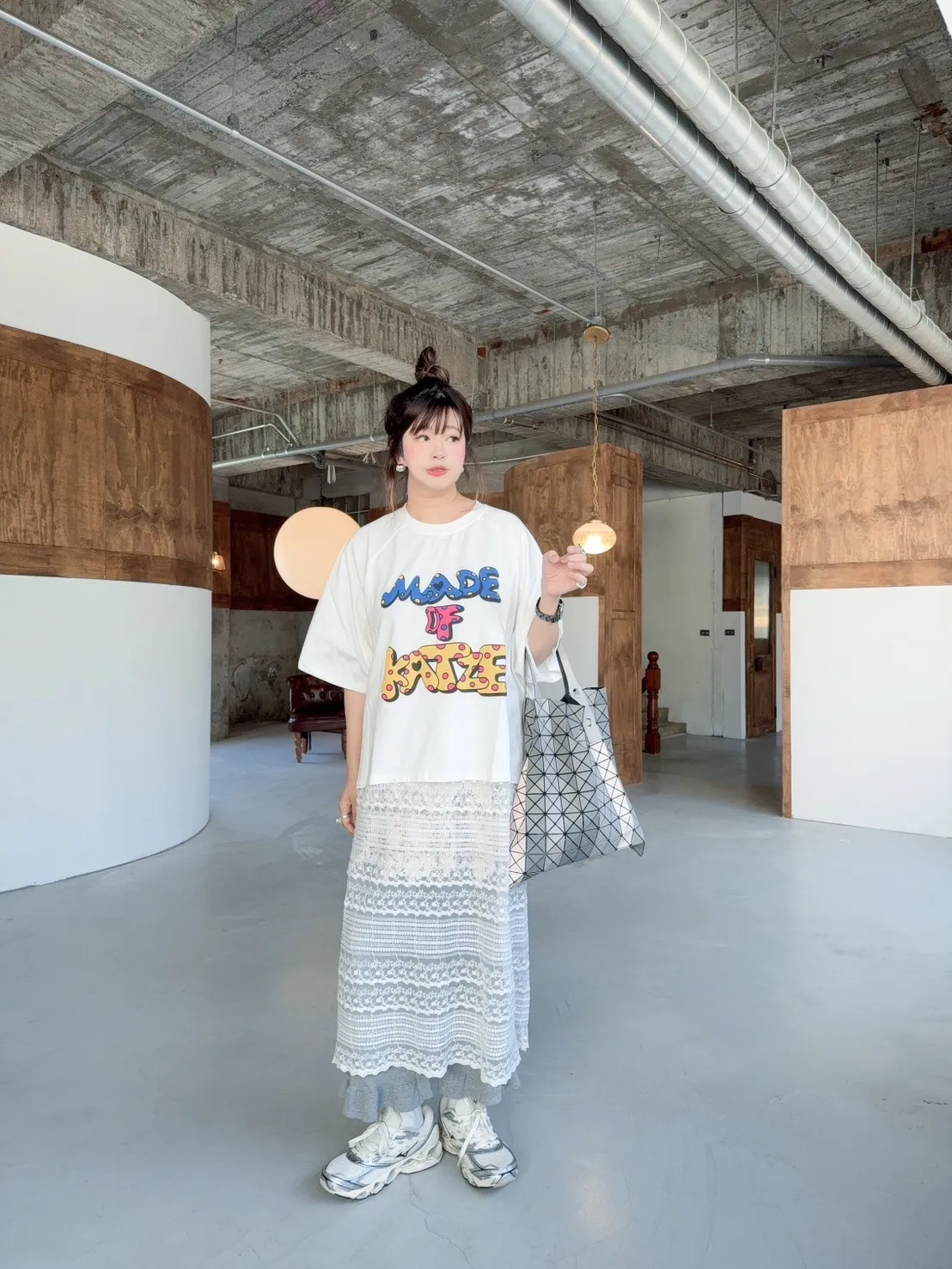 KATZE限量原創款-MADE OF KATZE英字印刷拼接蕾絲洋裝 2色