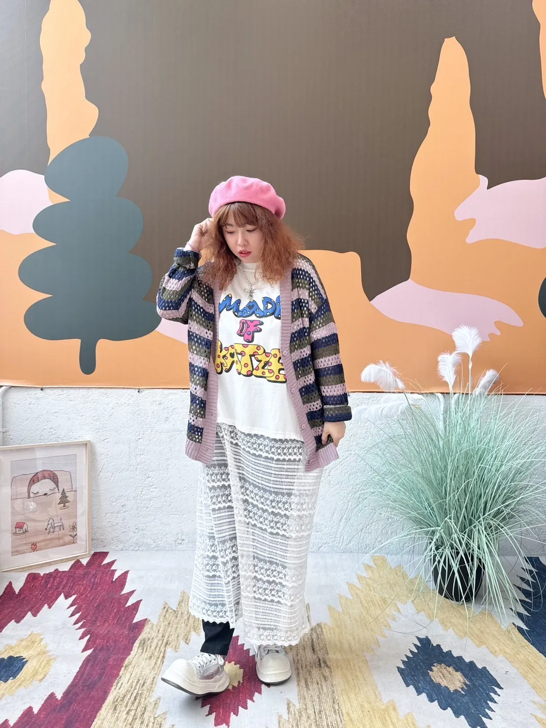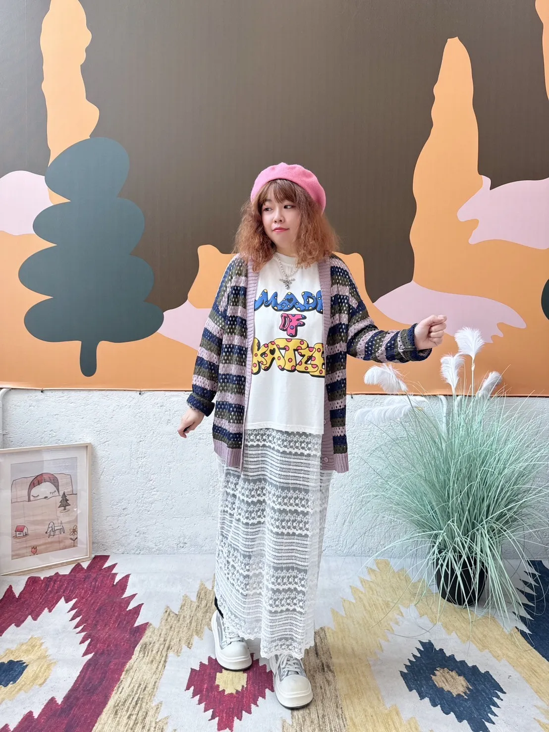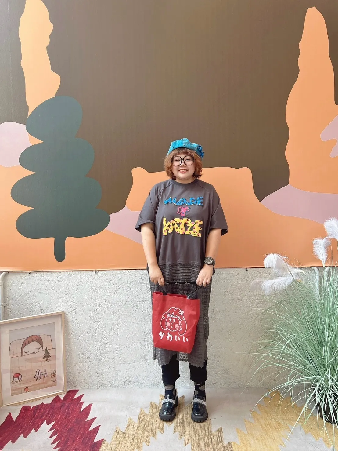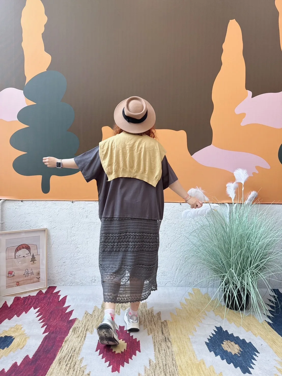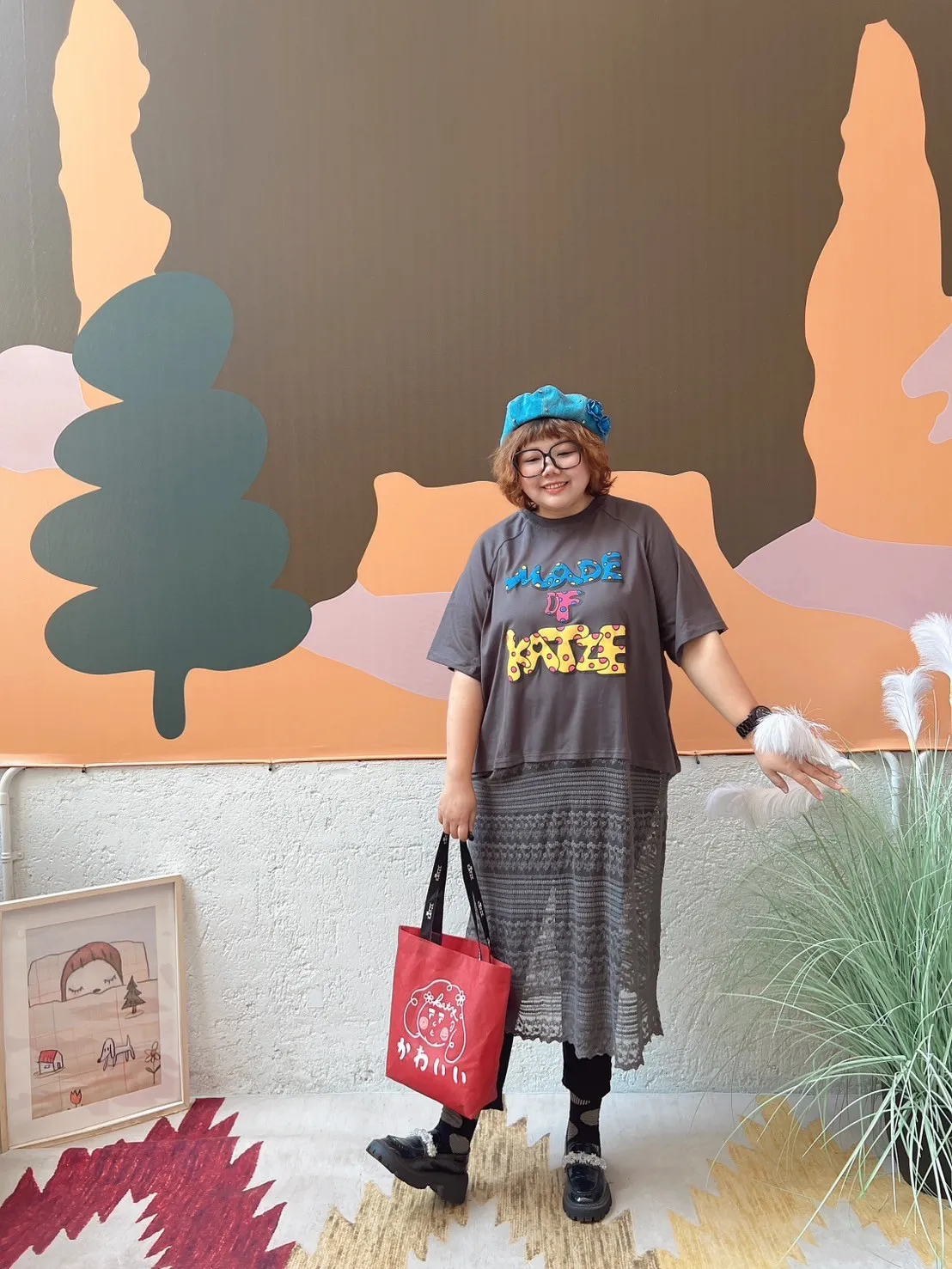 KATZE限量原創款-MADE OF KATZE英字印刷拼接蕾絲洋裝 2色
