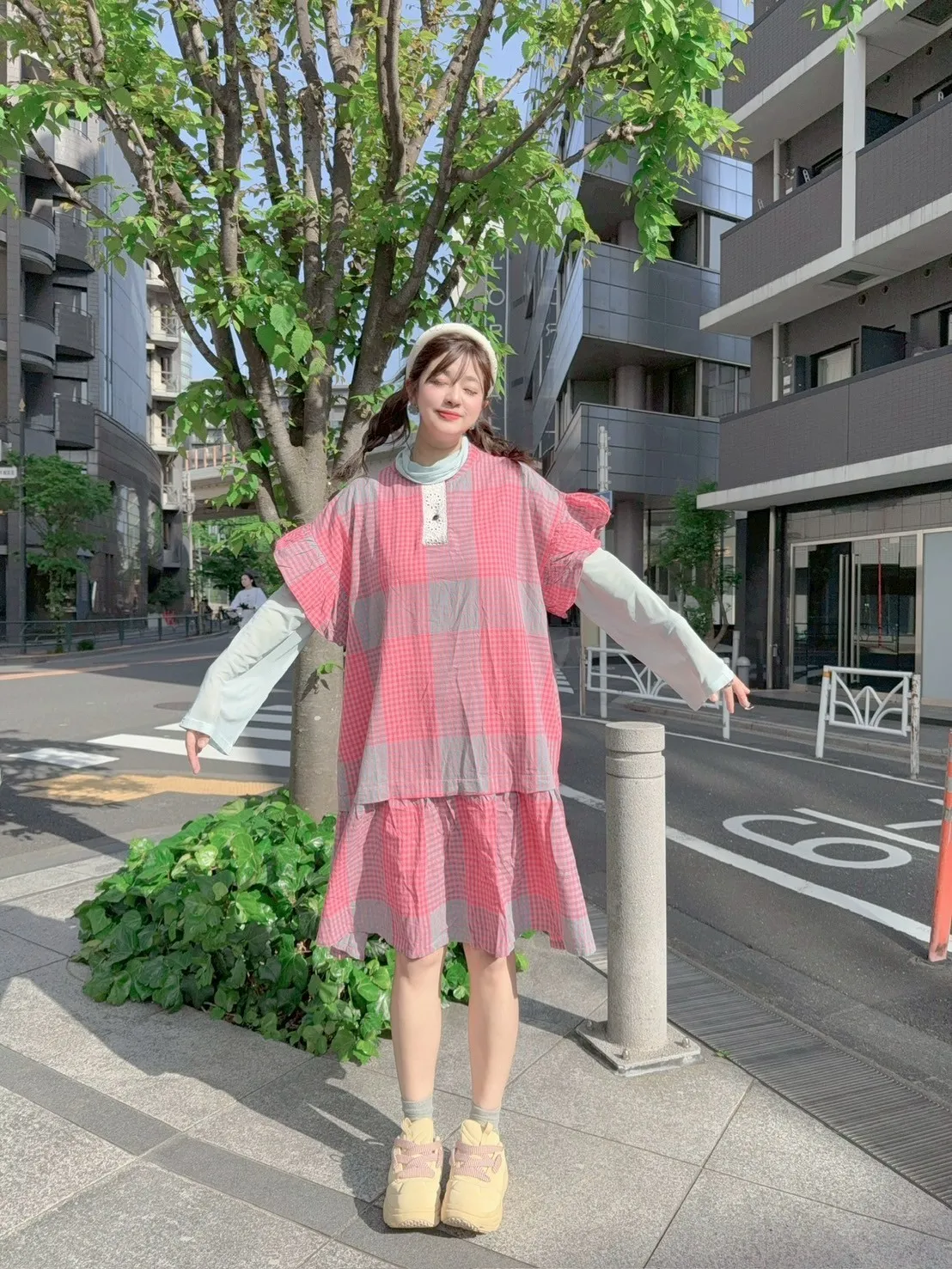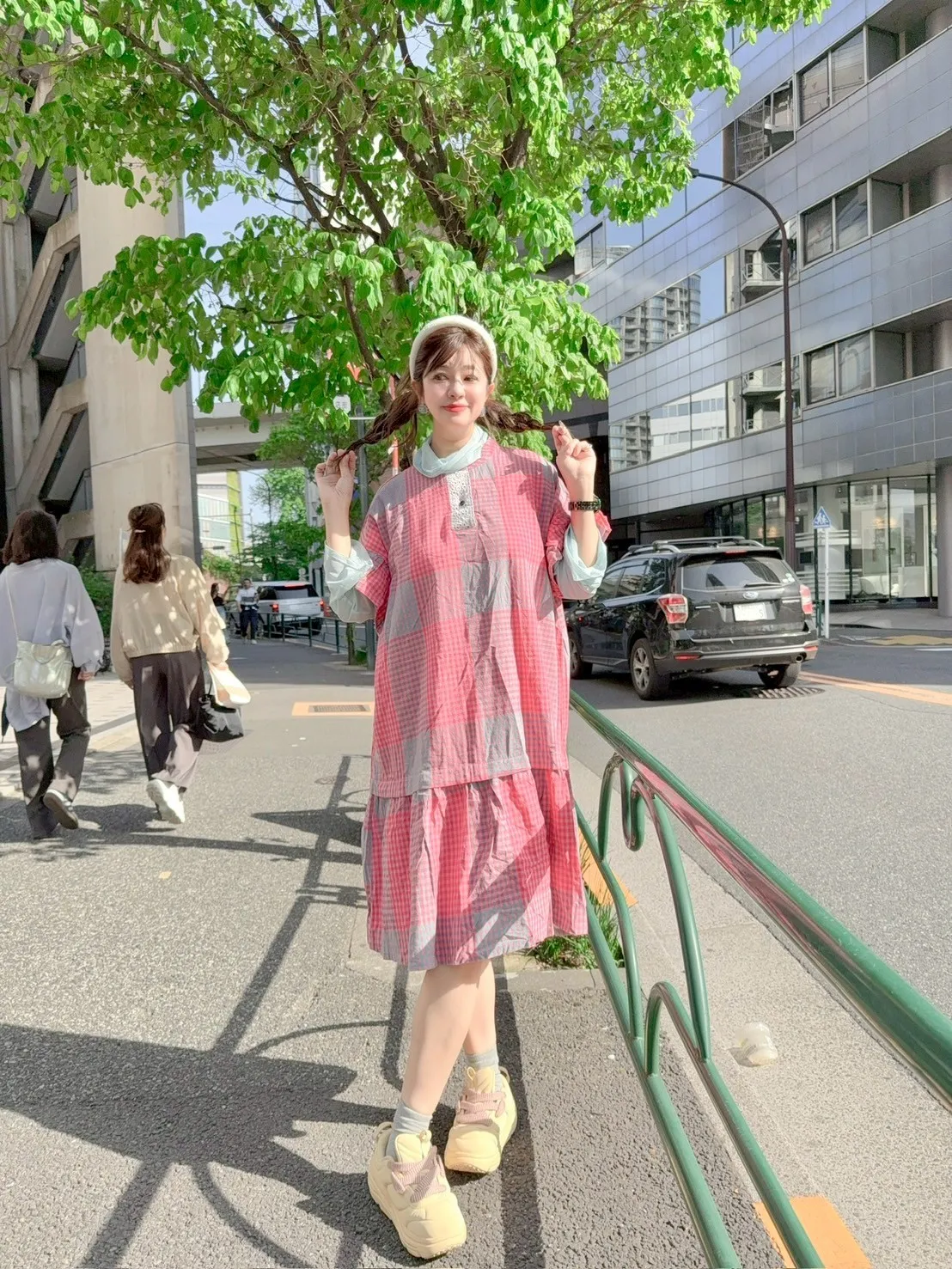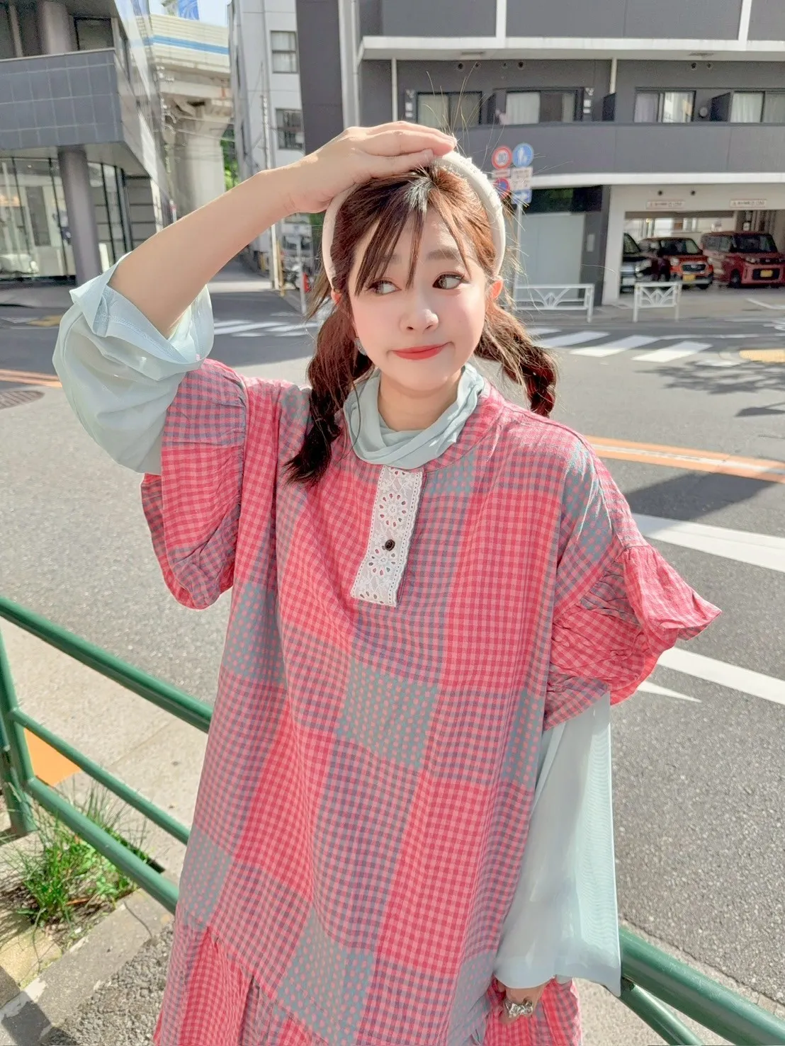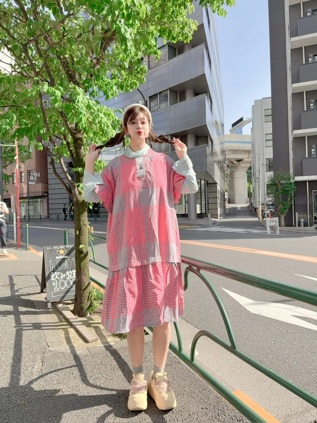 日系拼色格紋洋裝