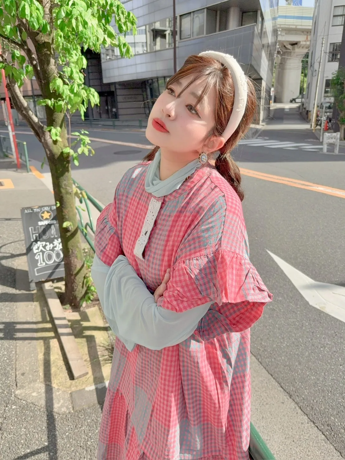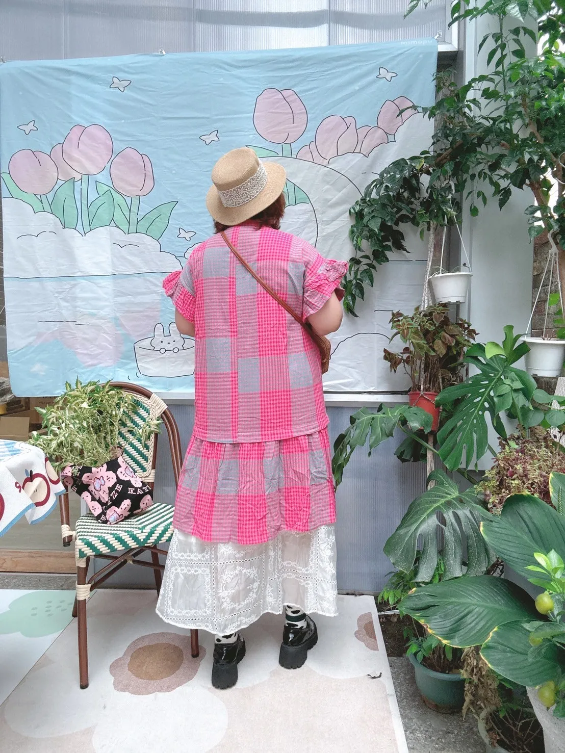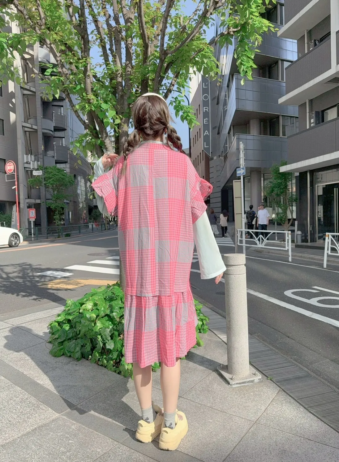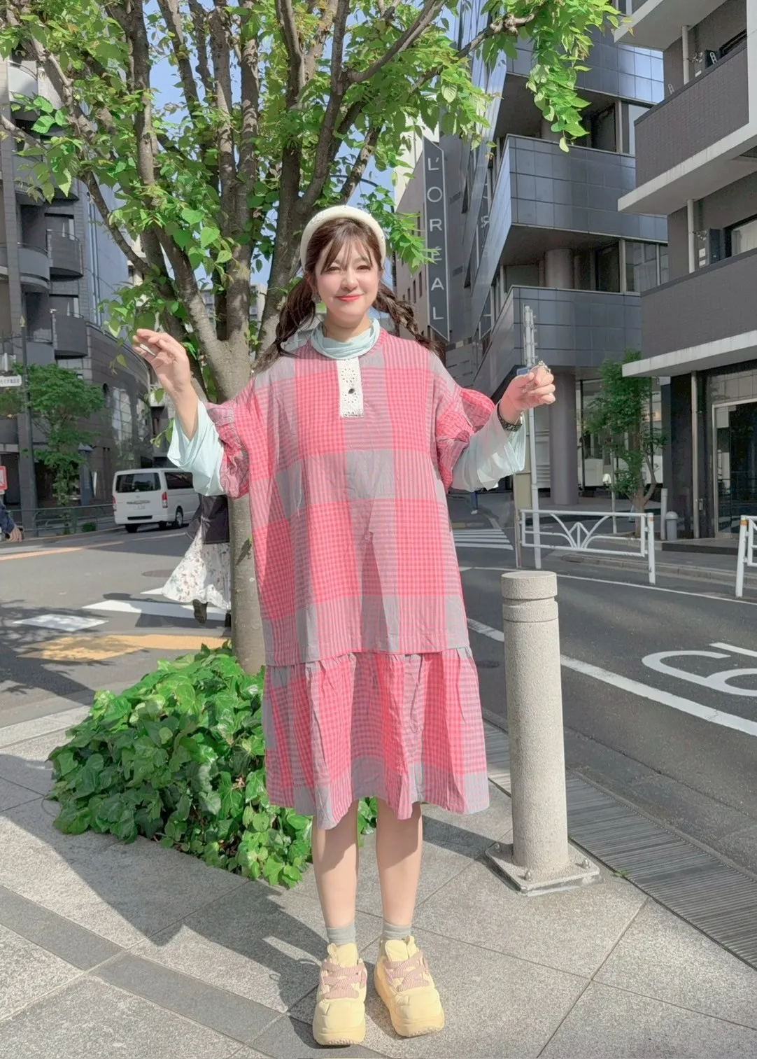 日系拼色格紋洋裝