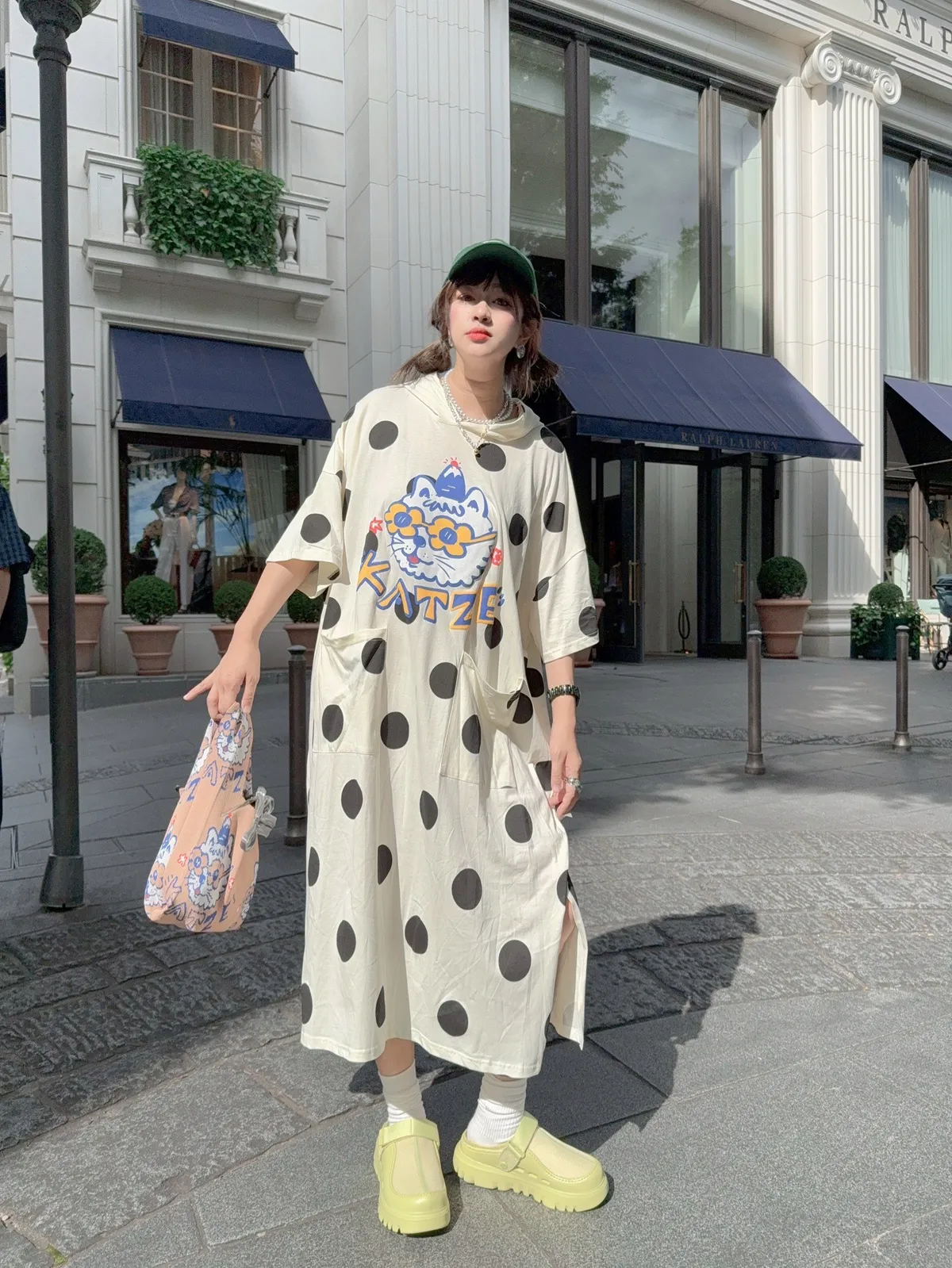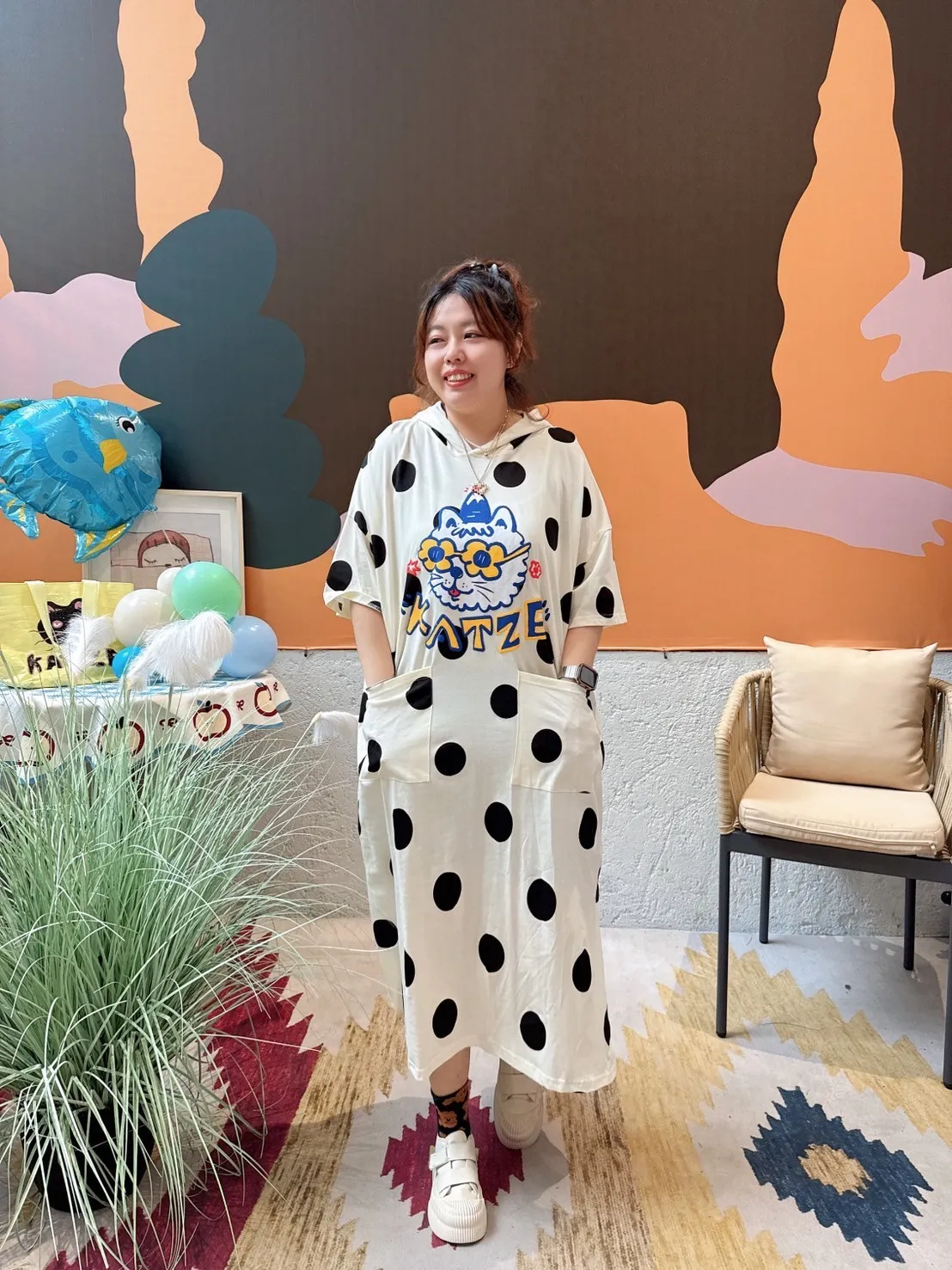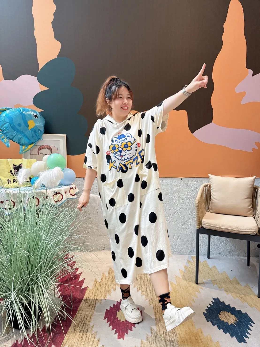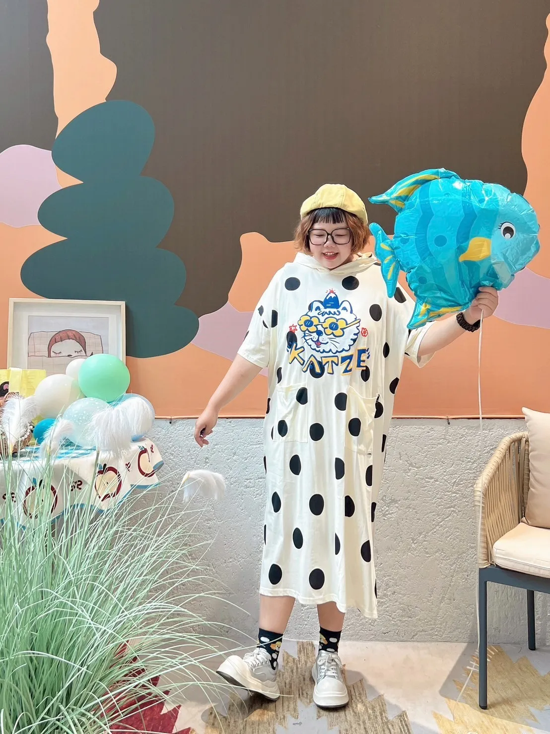 KATZE限量原創款-墨鏡肉包點點連帽洋裝 2色