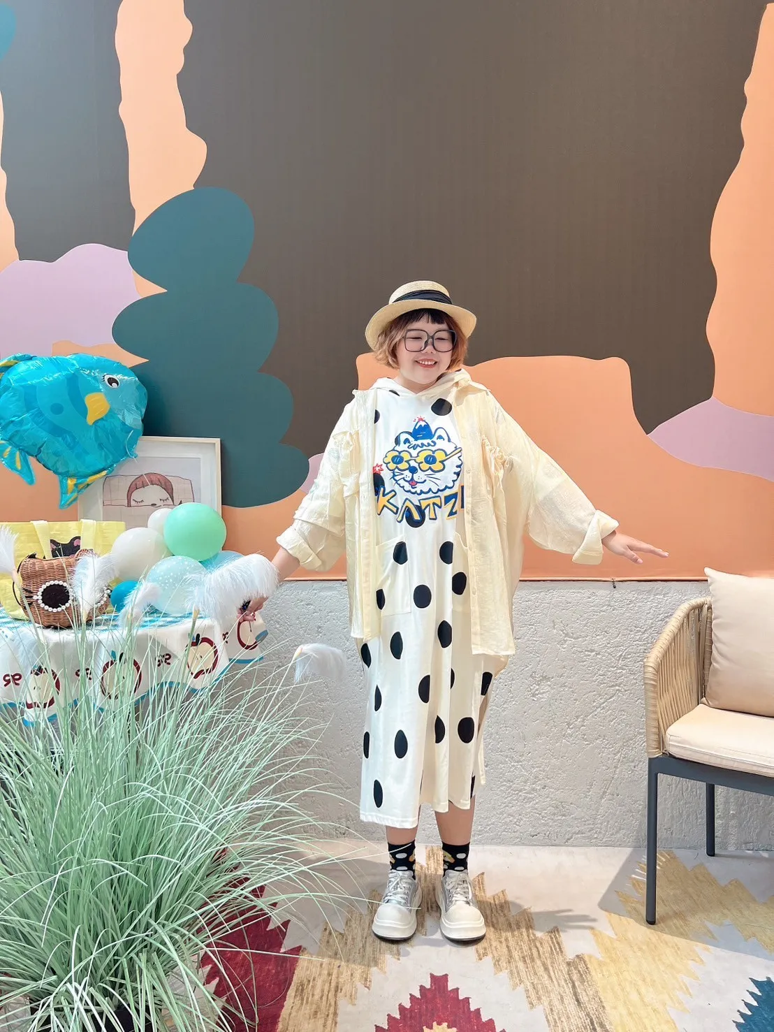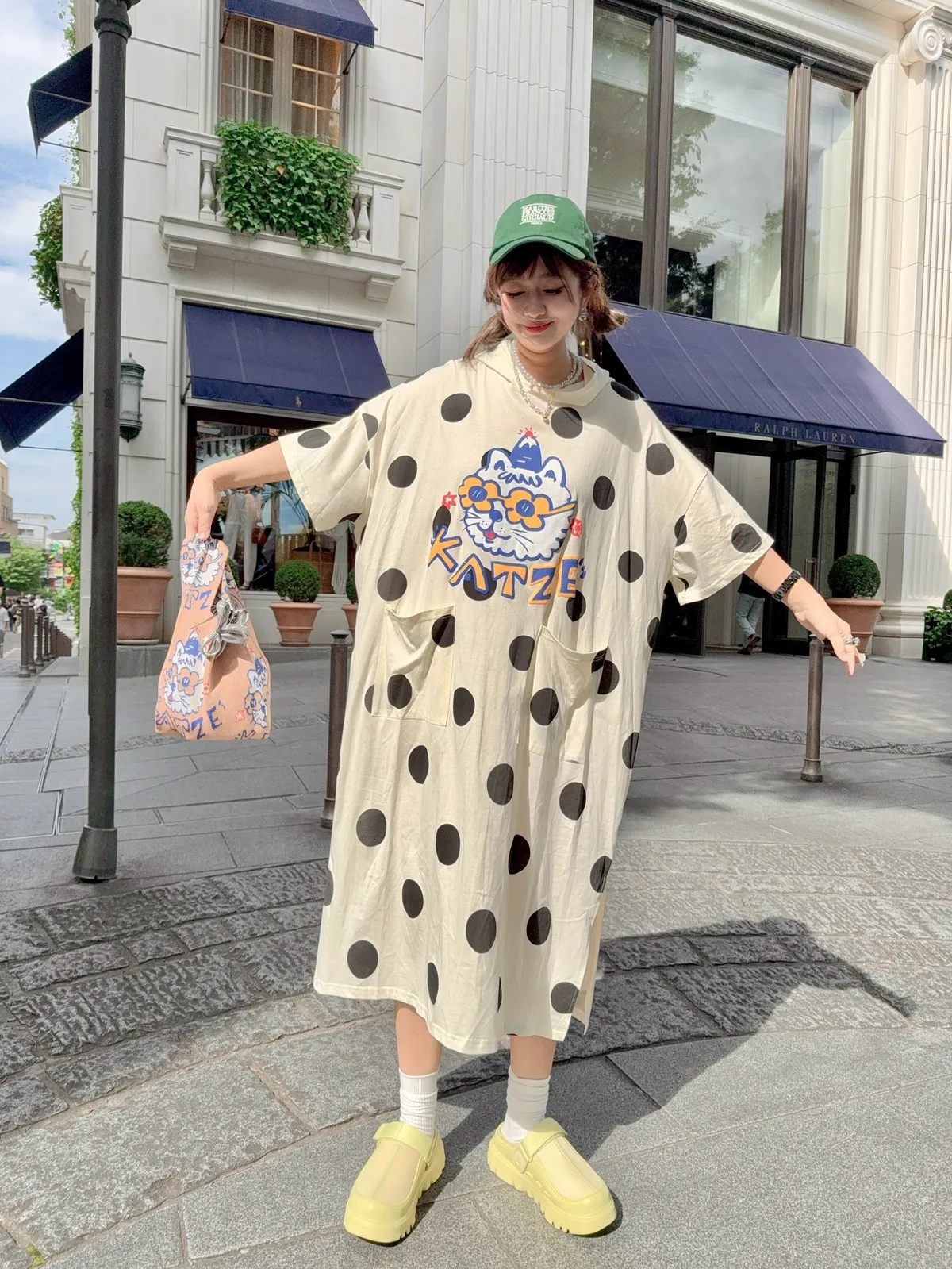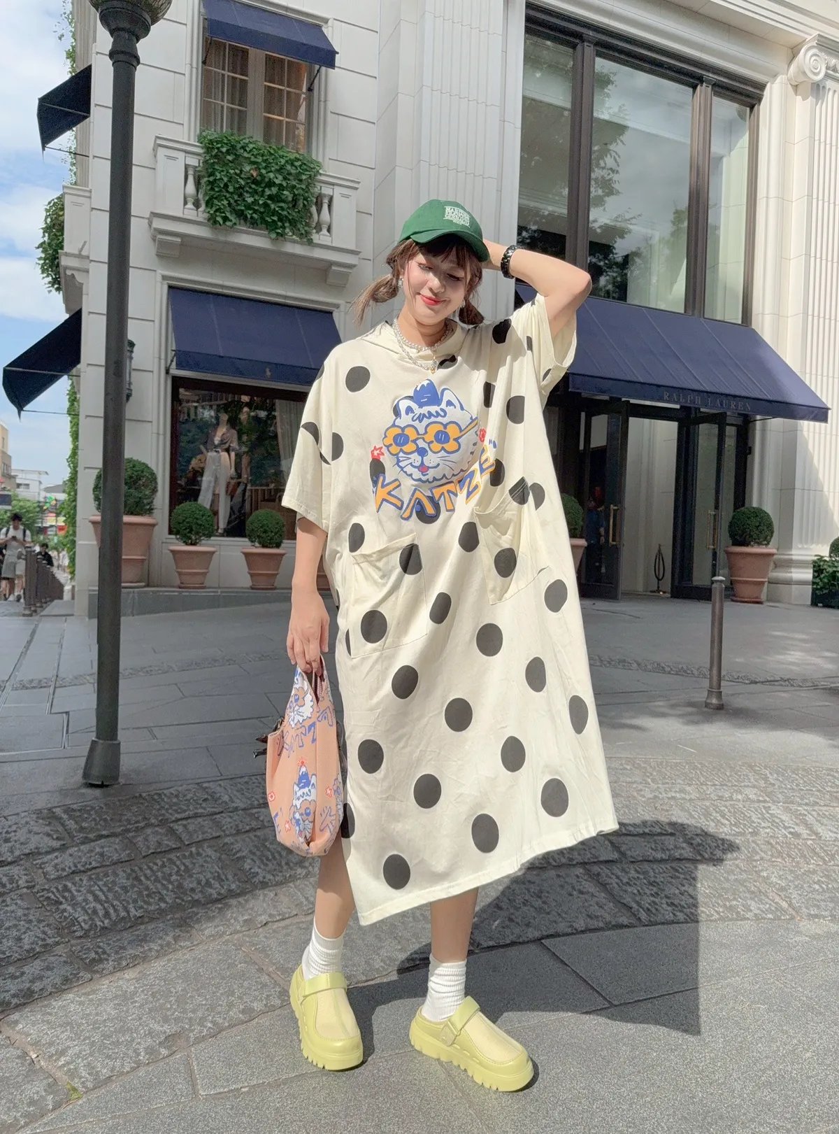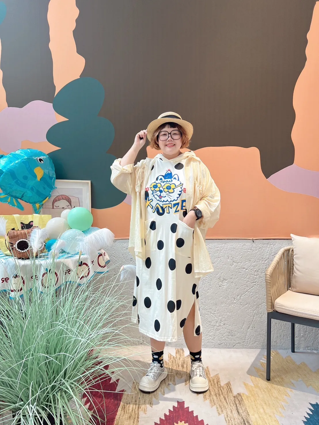KATZE限量原創款-墨鏡肉包點點連帽洋裝 2色