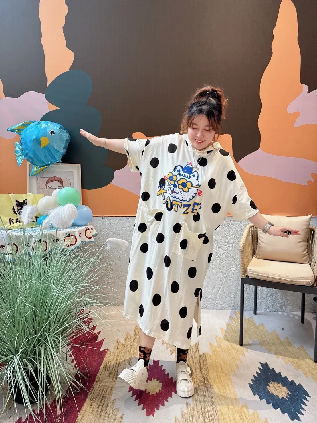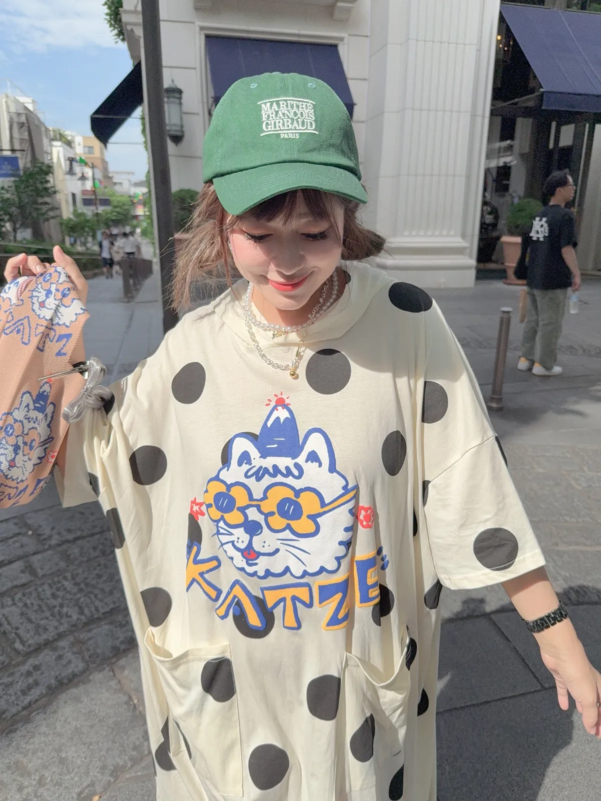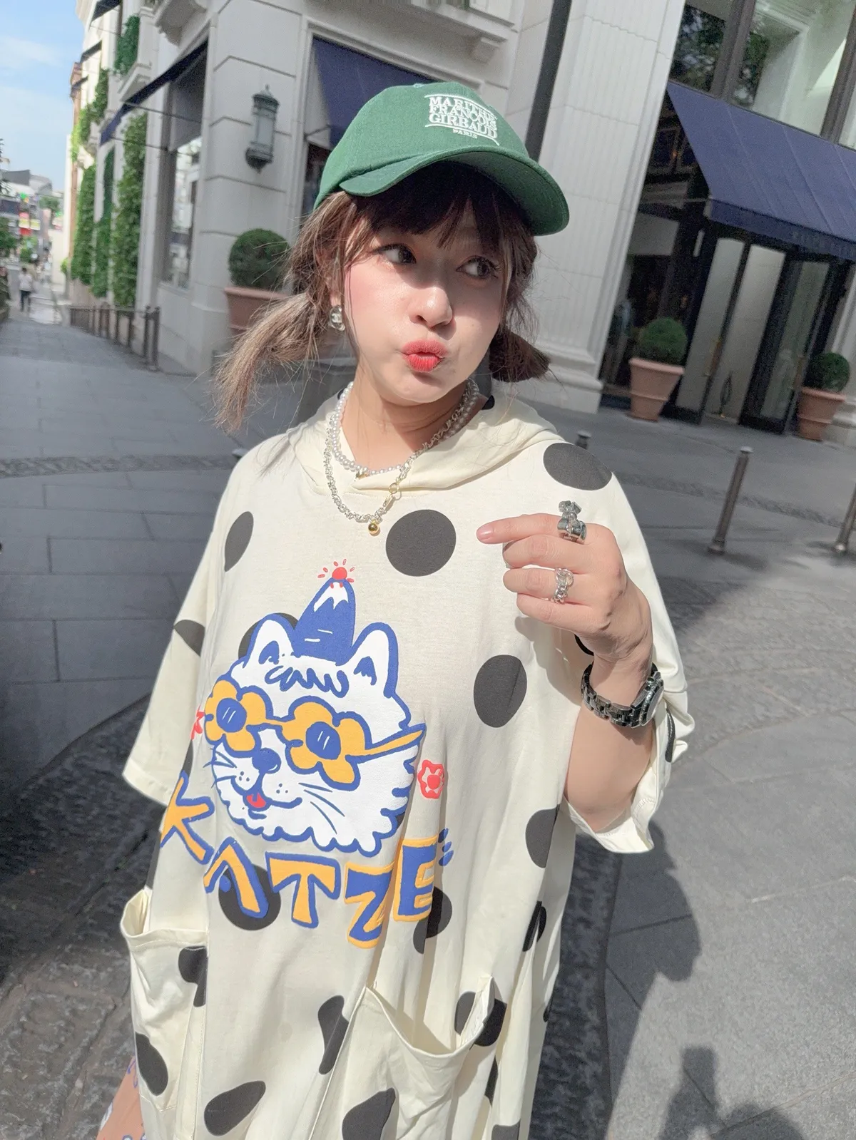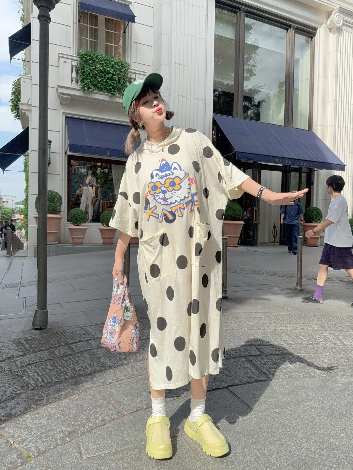 KATZE限量原創款-墨鏡肉包點點連帽洋裝 2色