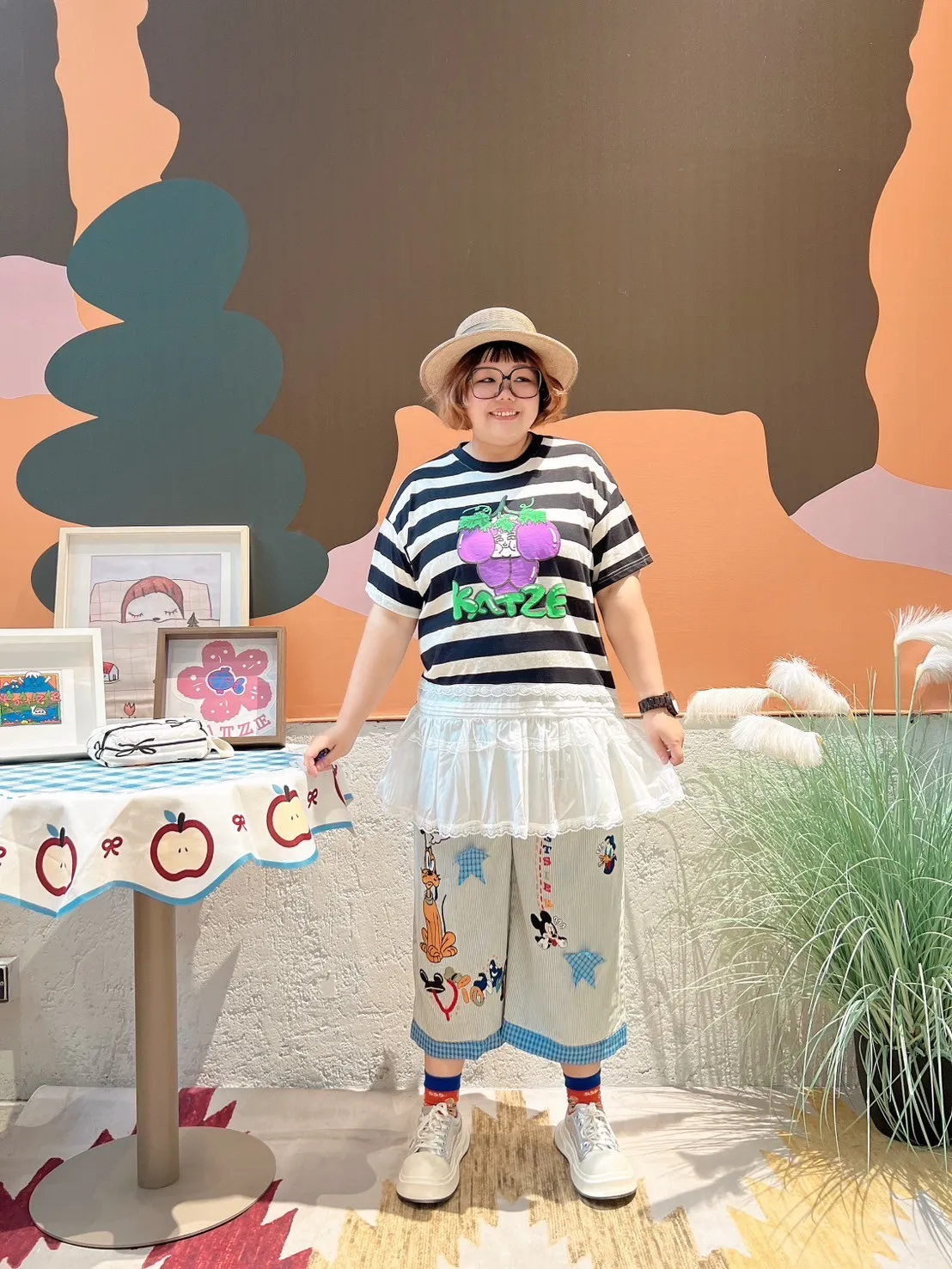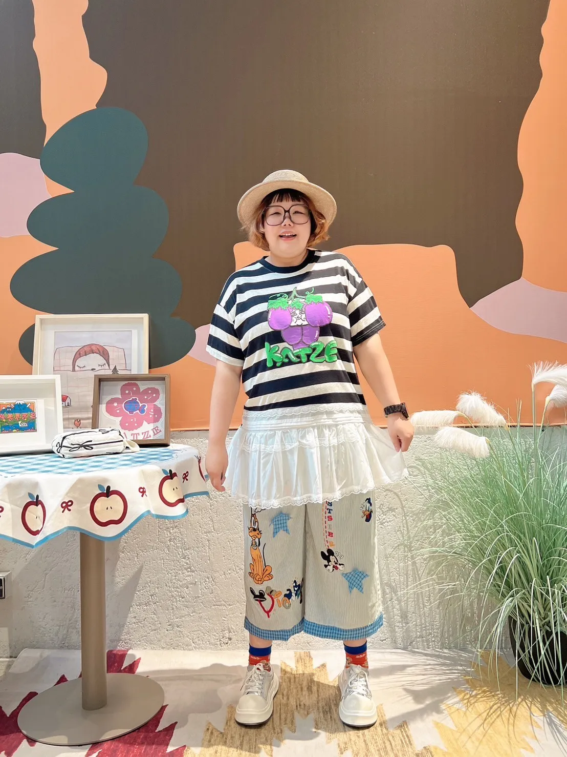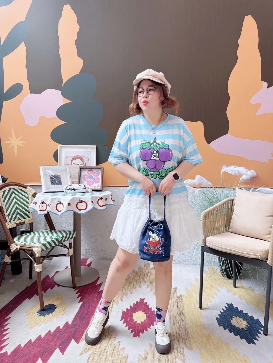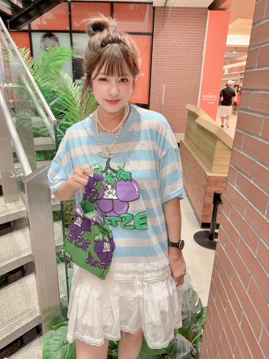 KATZE限量原創款-肉妹葡萄橫條拼接蕾絲短洋 2色