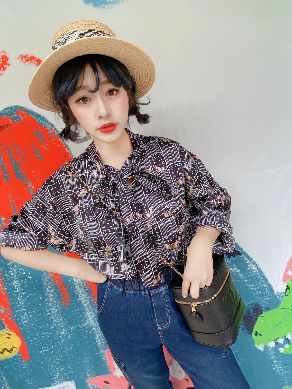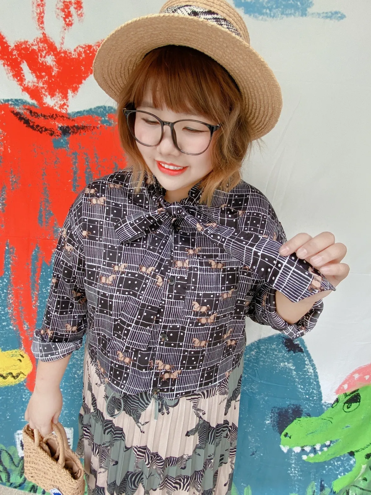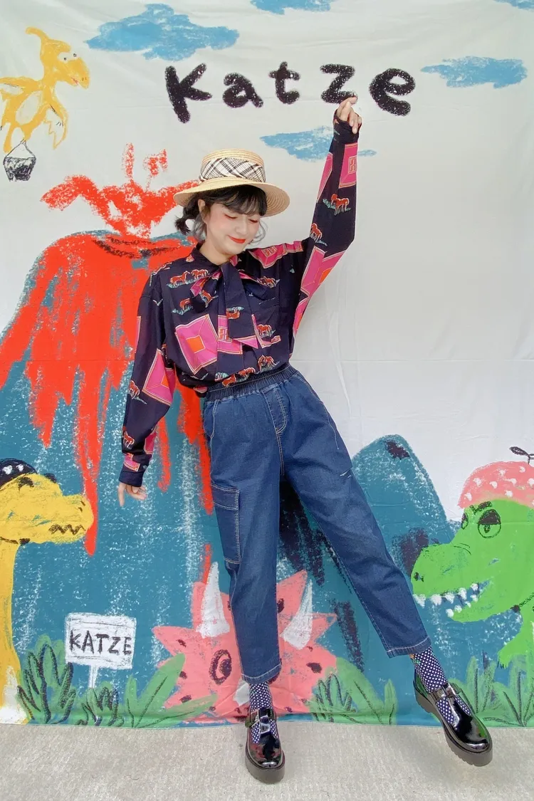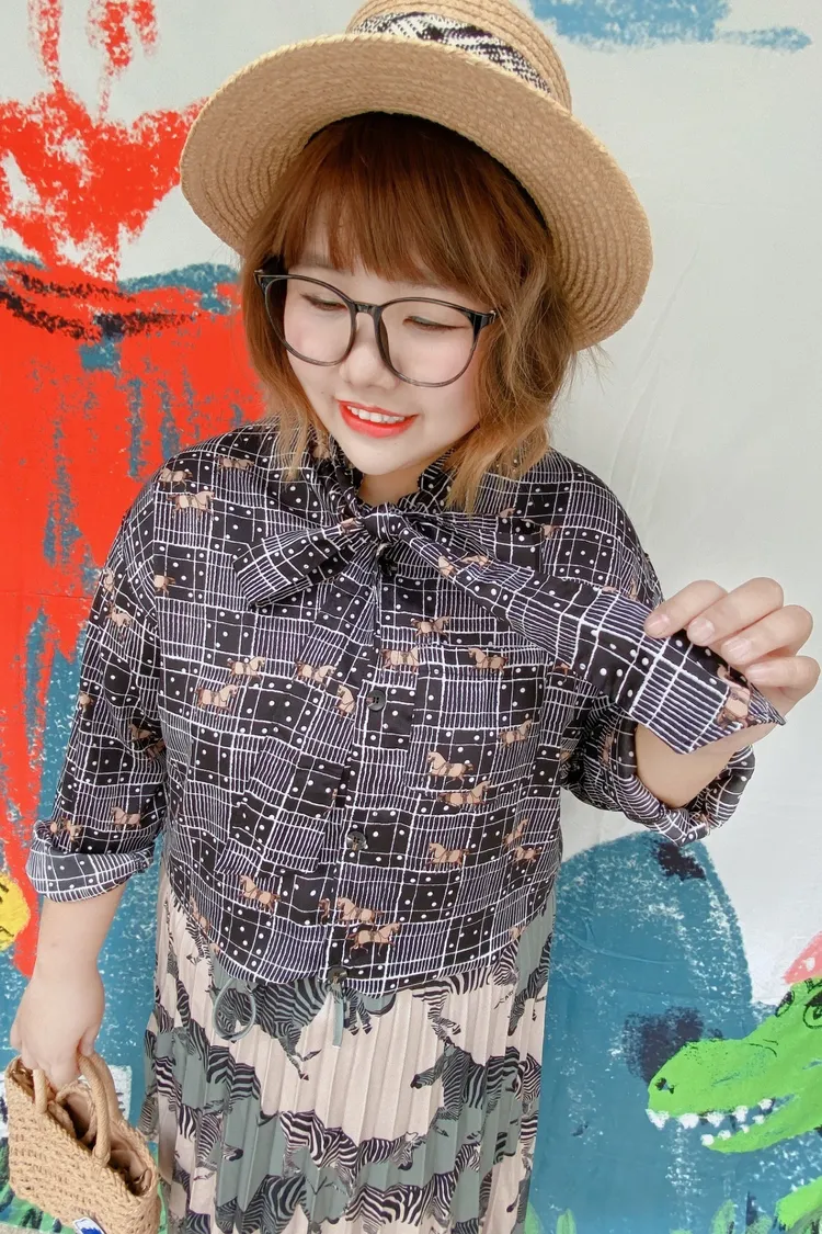 KATZE限量自訂款-小馬綁帶雪紡襯衫 2色