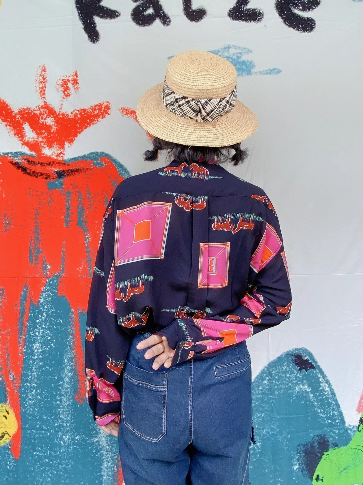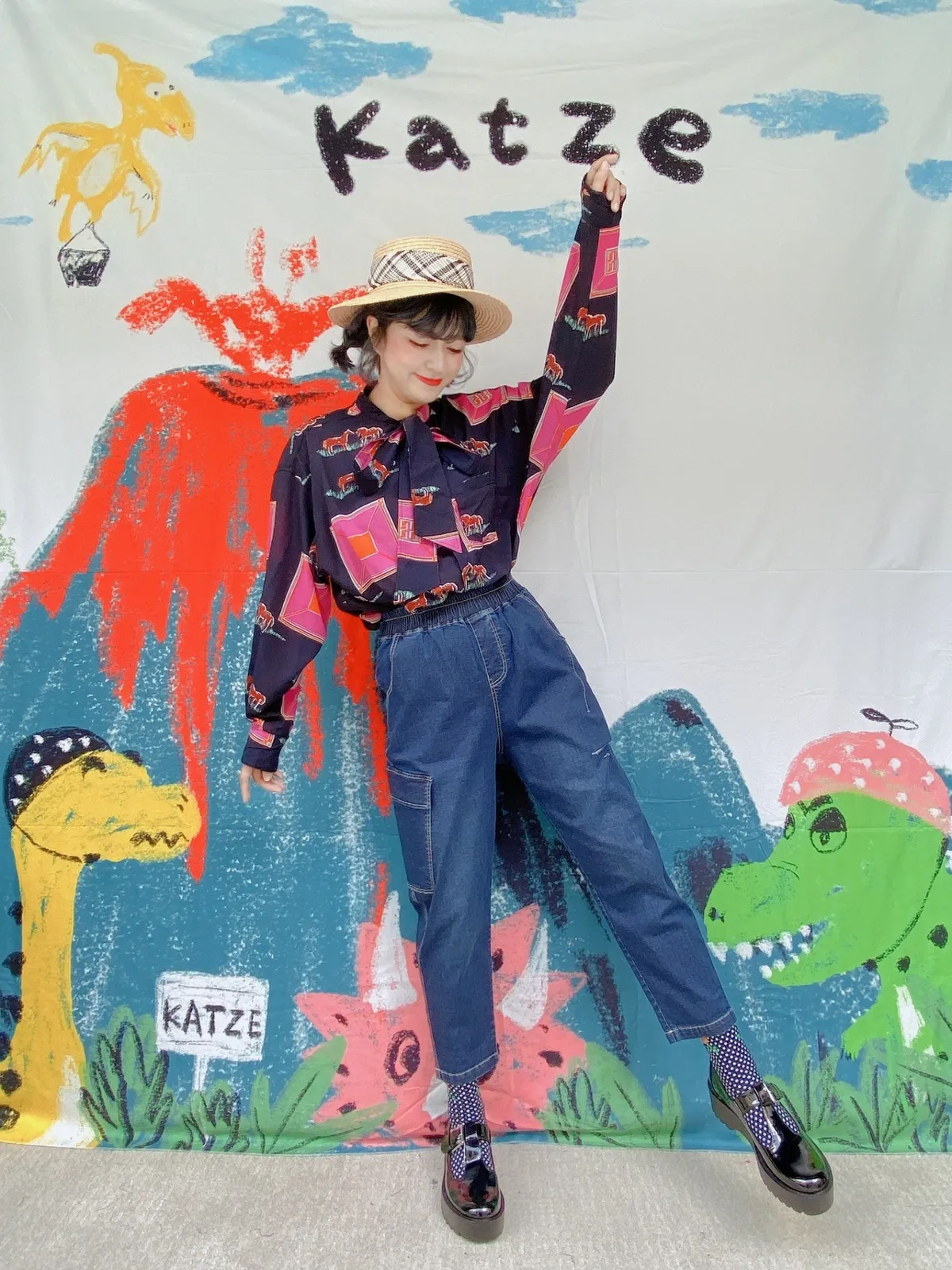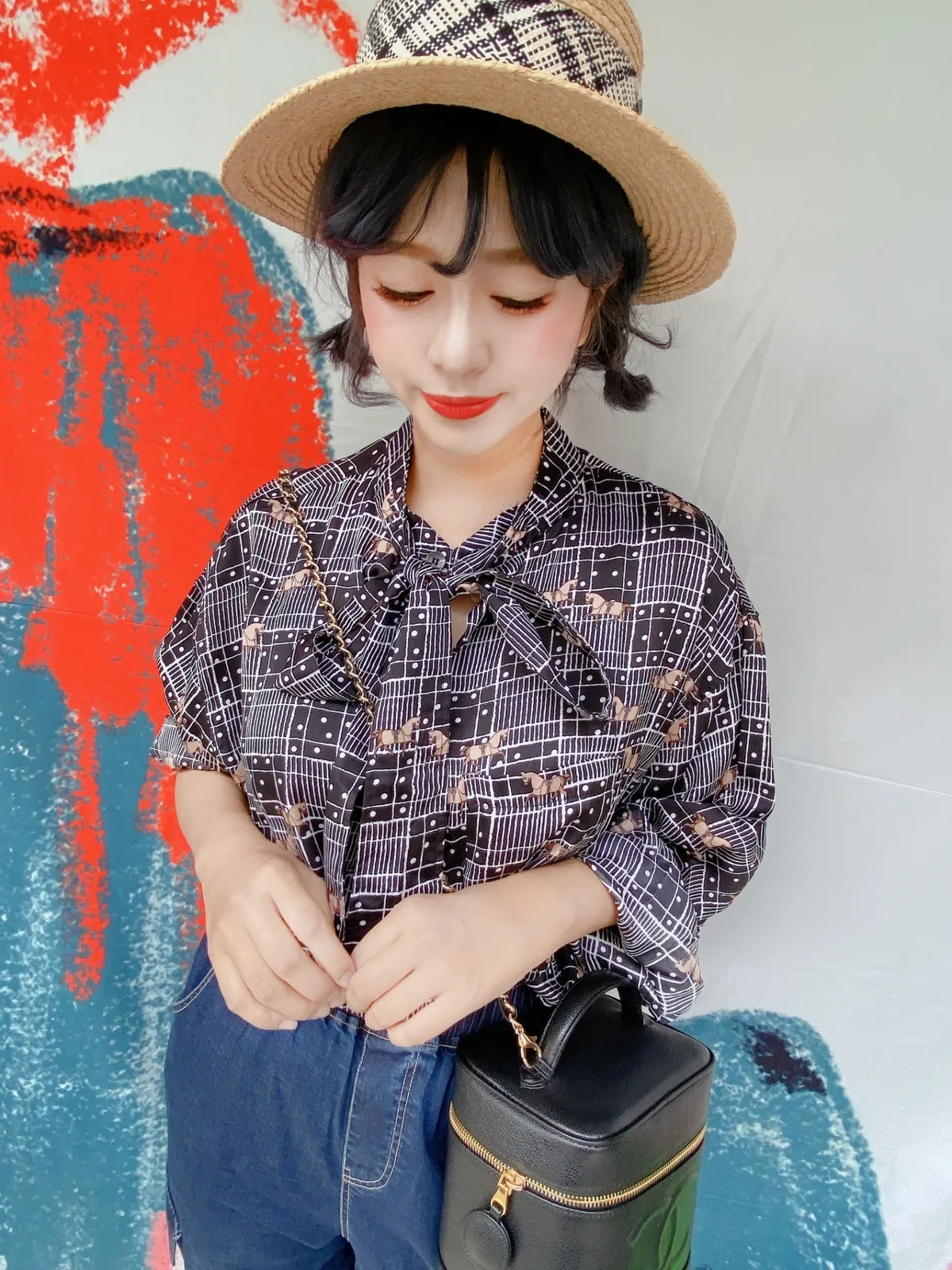 KATZE限量自訂款-小馬綁帶雪紡襯衫 2色