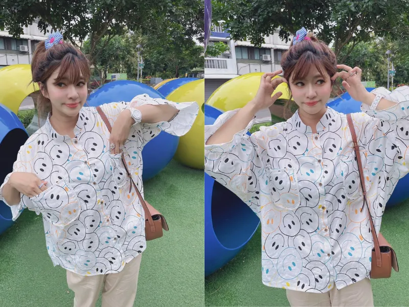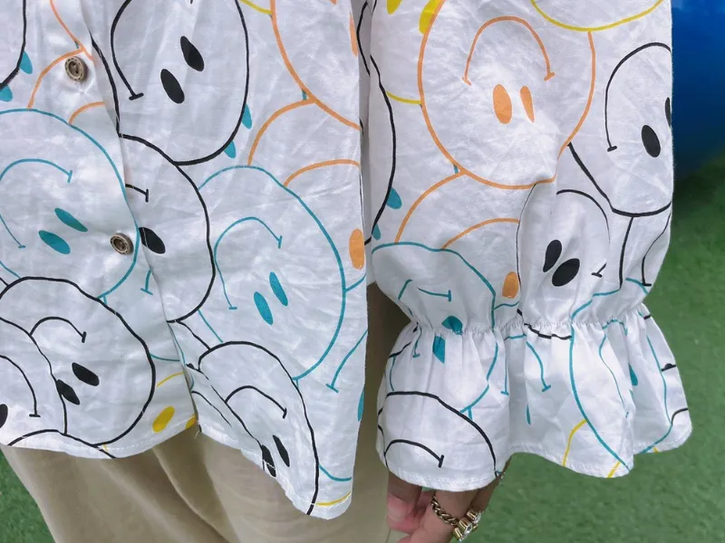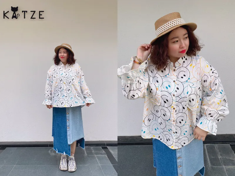KATZE限量原創款-滿版笑臉涼涼包邊口袋襯衫