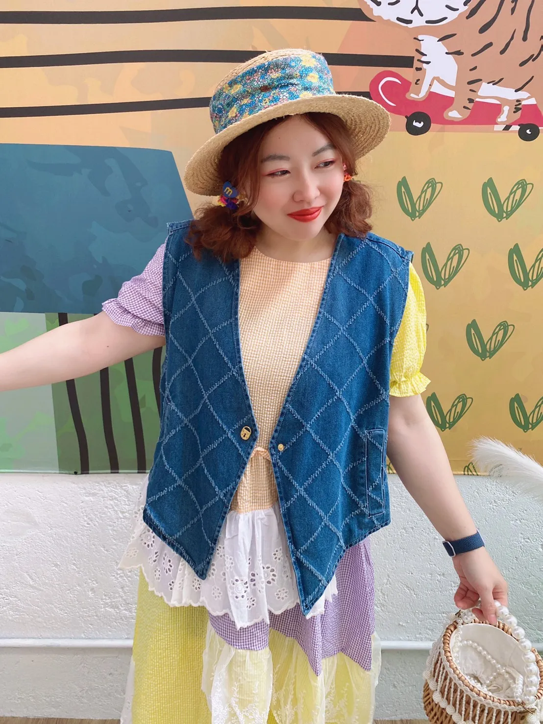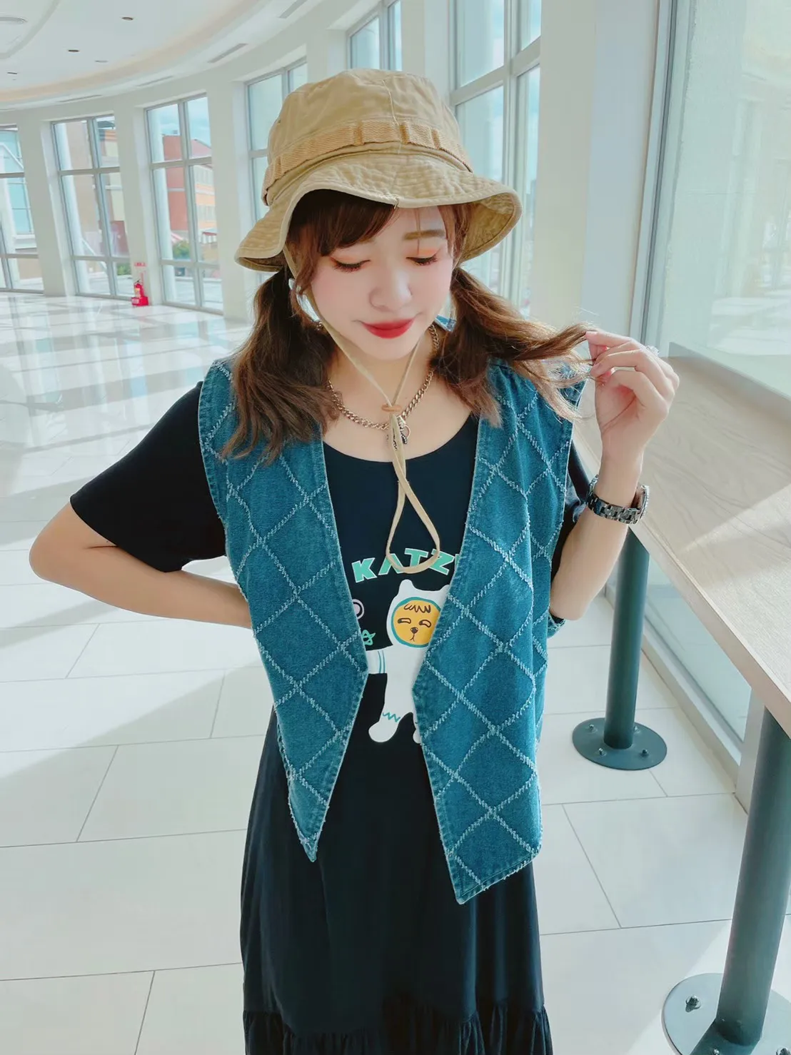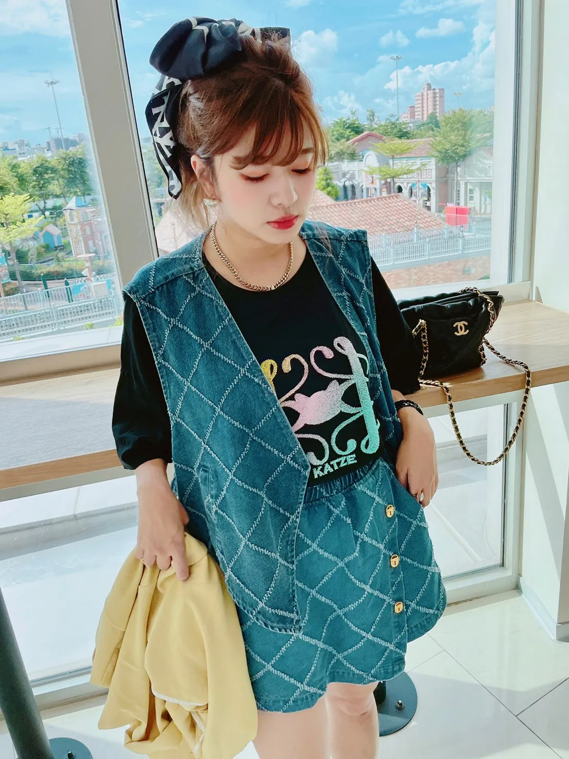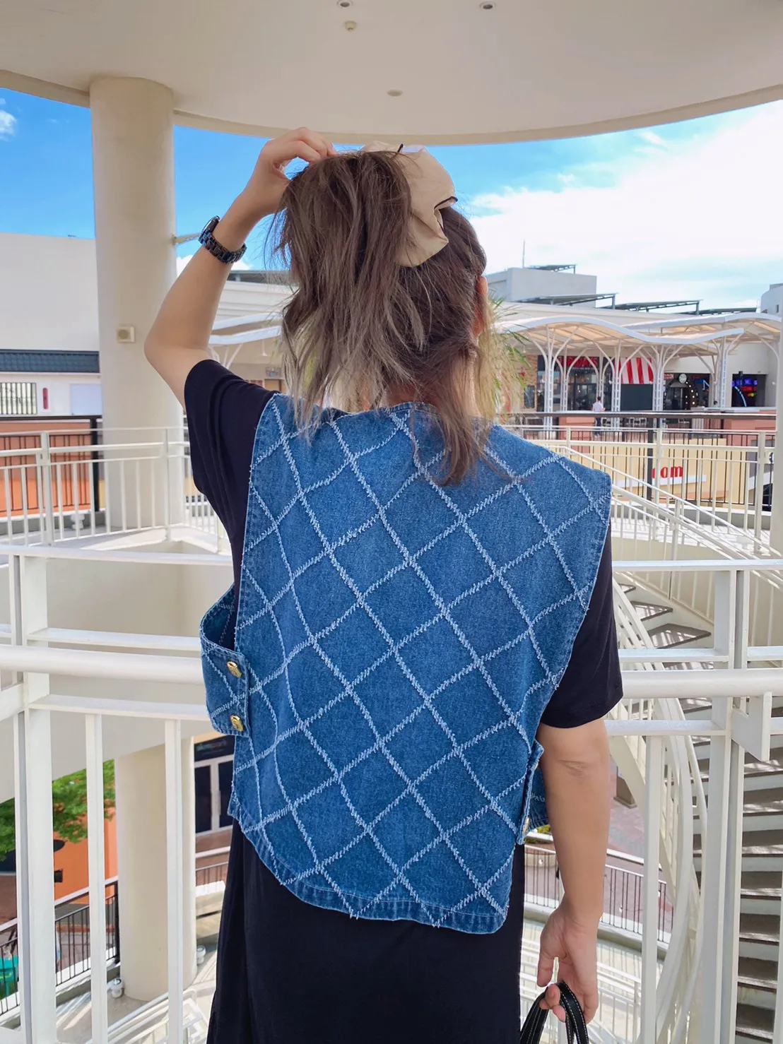 KATZE限量原創款-小香金釦風牛仔修飾背心