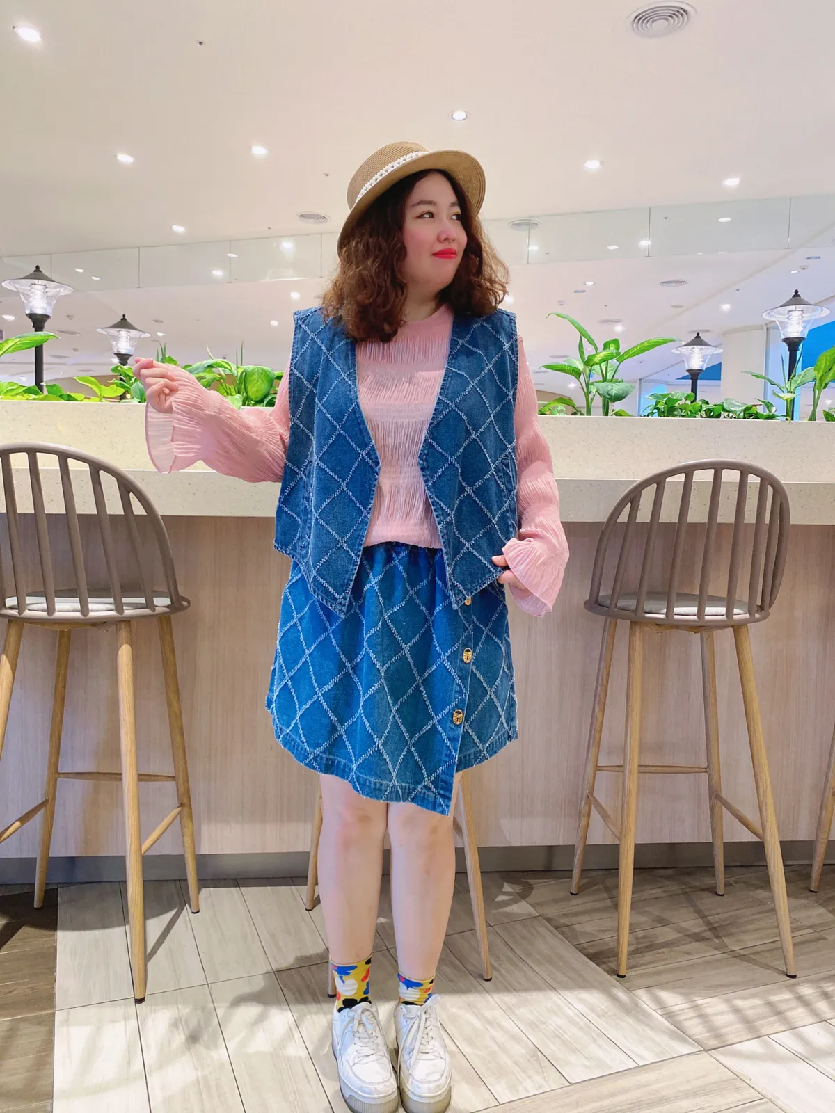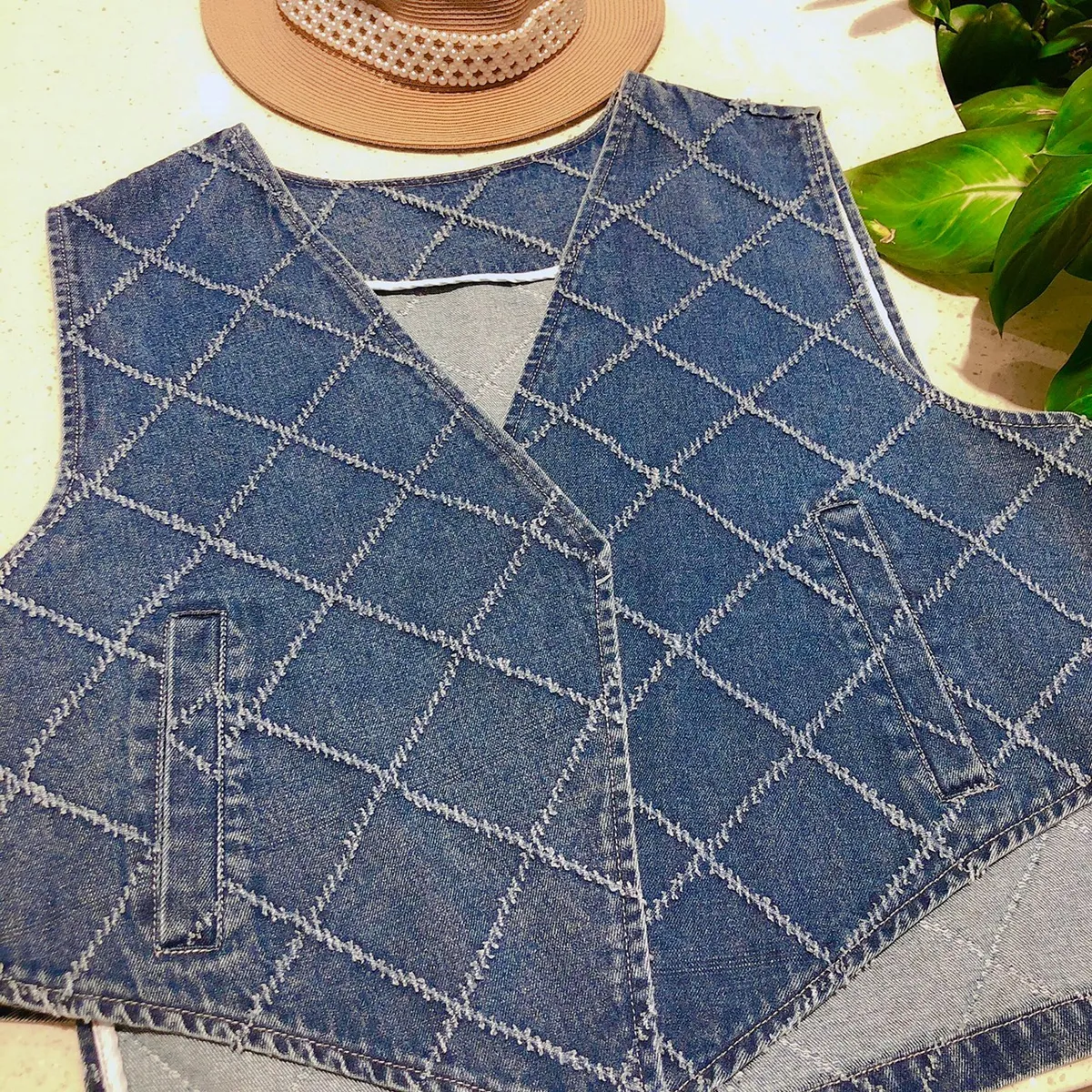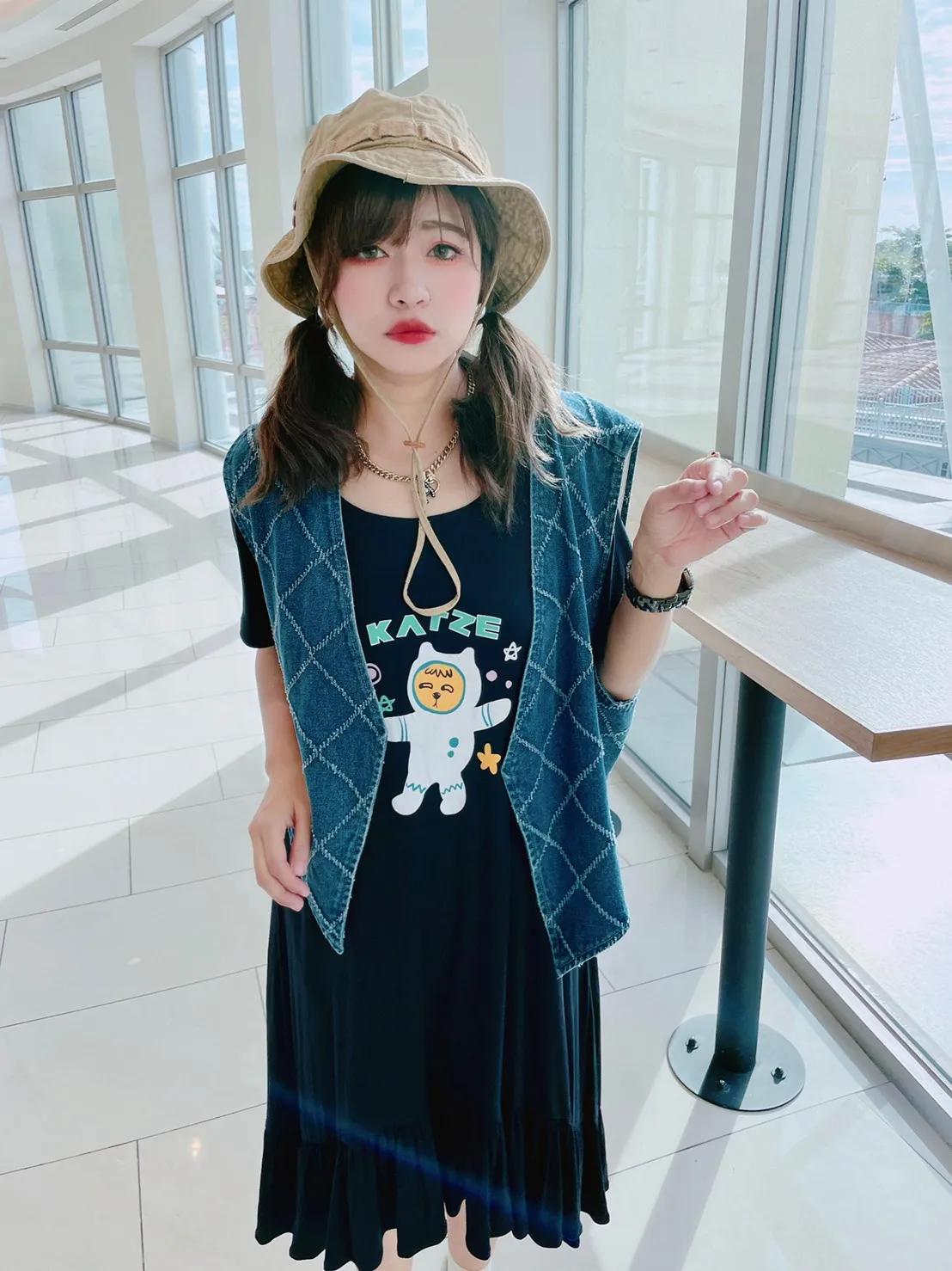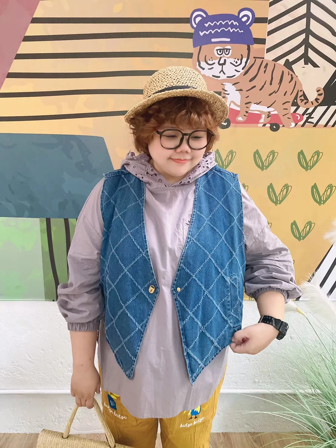 KATZE限量原創款-小香金釦風牛仔修飾背心