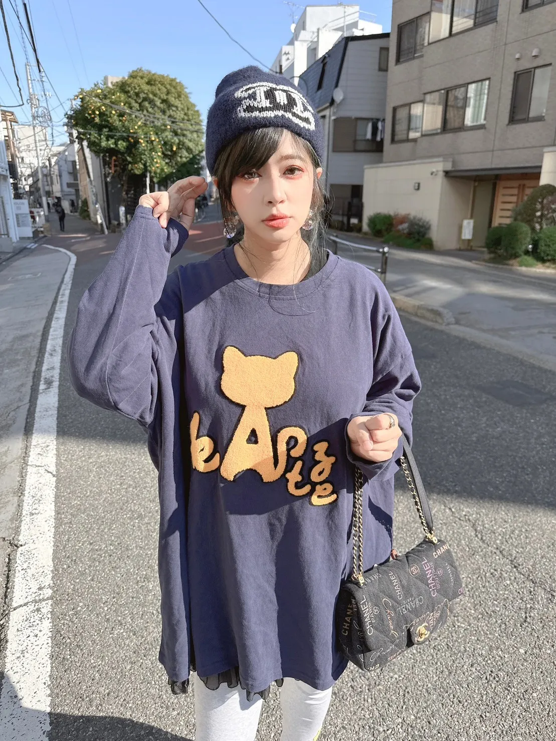 KATZE限量原創款-大大毛巾繡LOGO舒適長版上衣2色