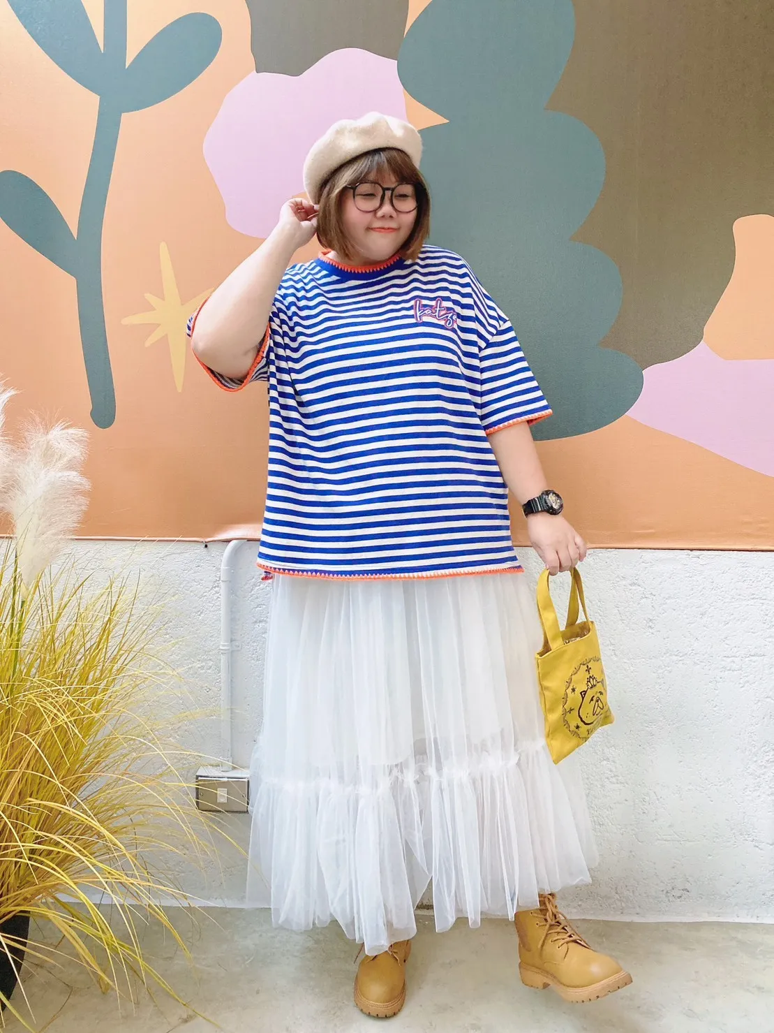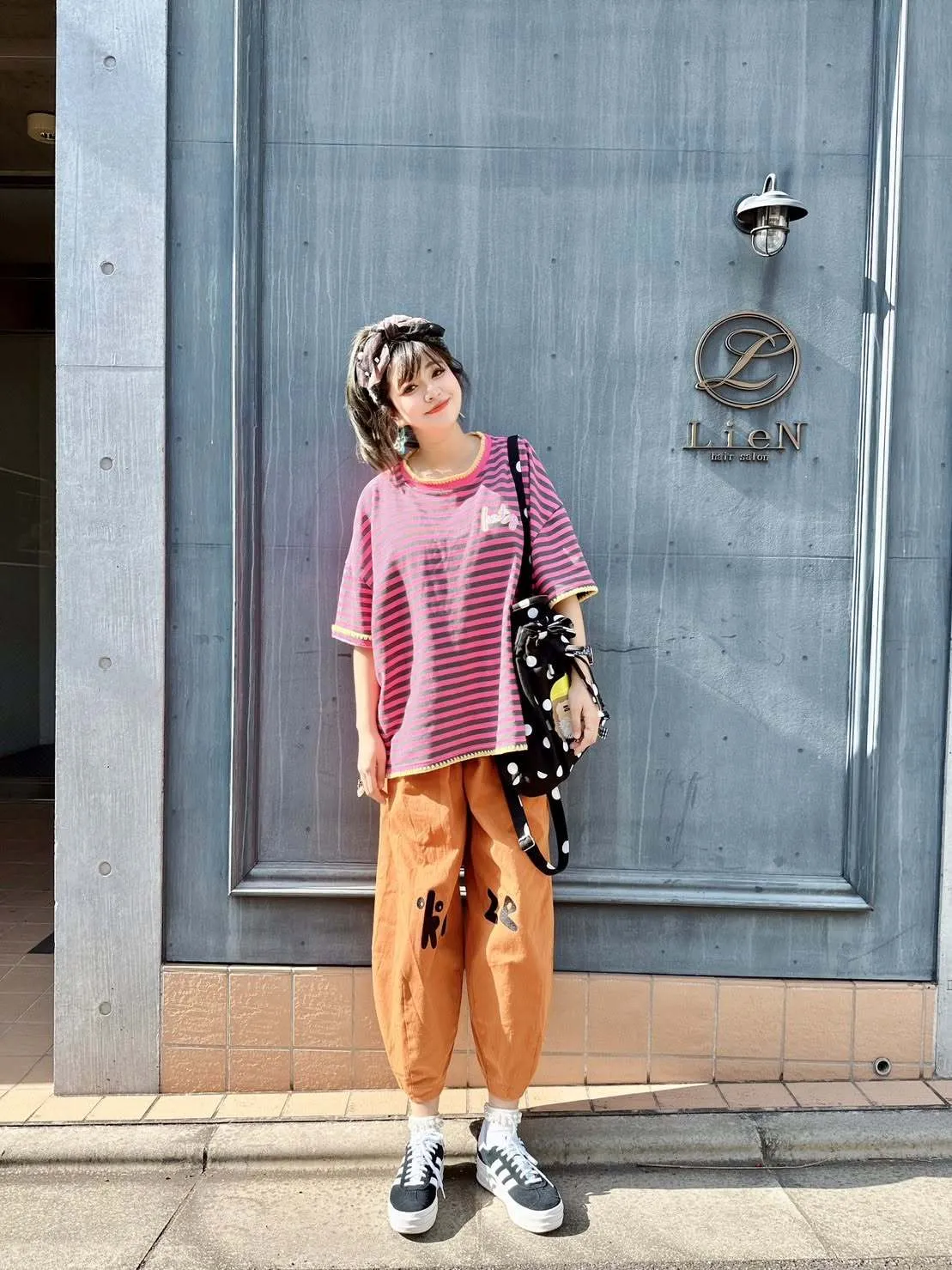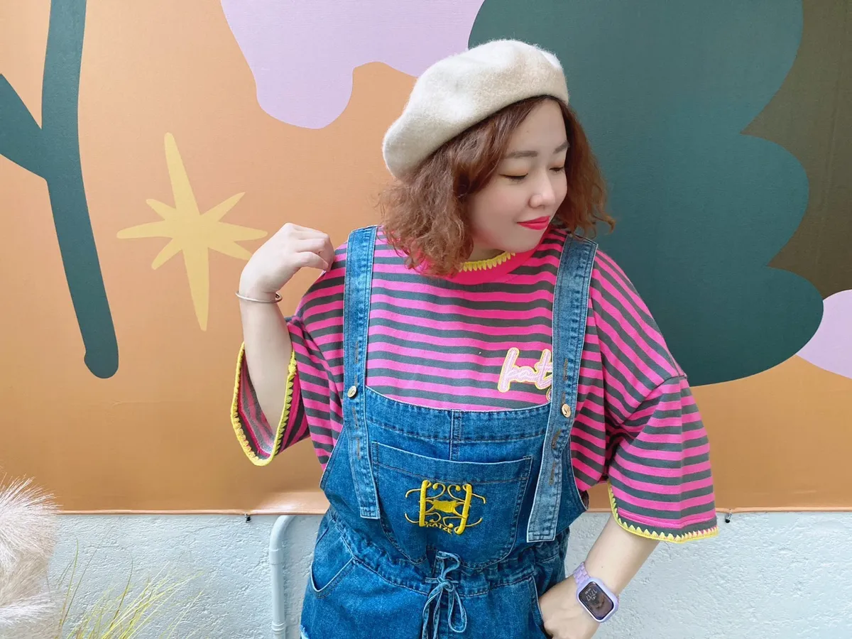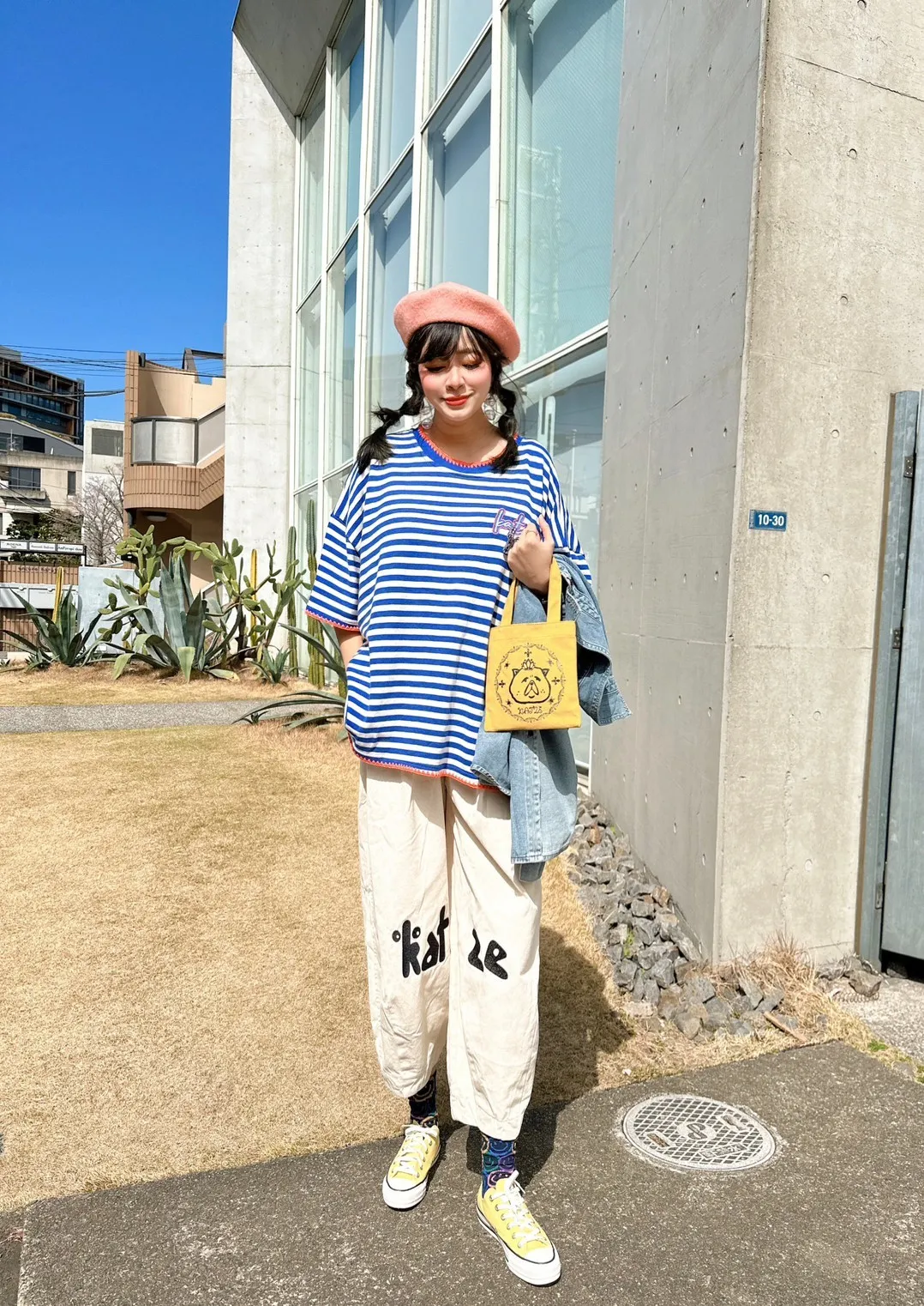 KATZE限量原創款-春夏必備撞色刺繡LOGO橫條上衣 2色