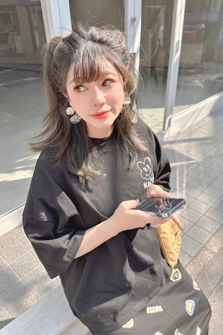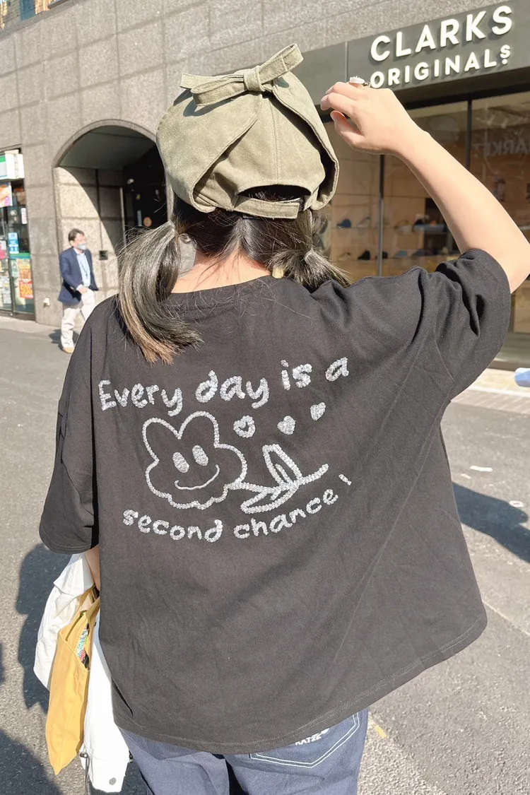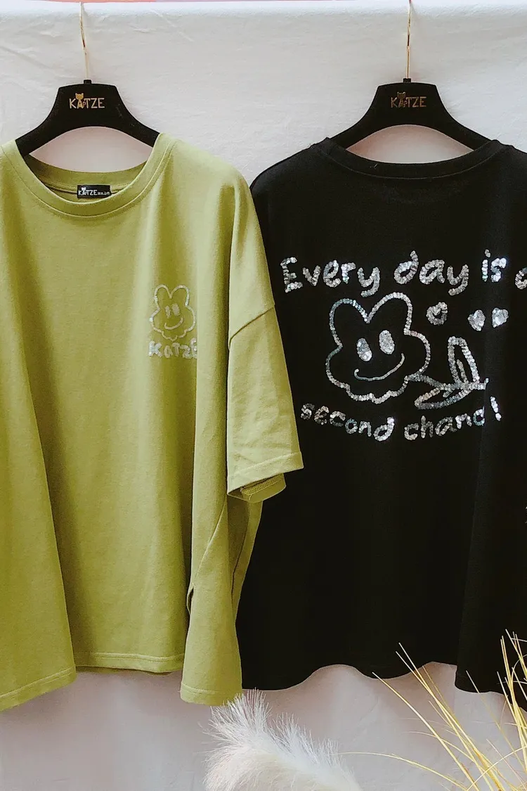 KATZE限量原創款-亮片微笑小花上衣 2色