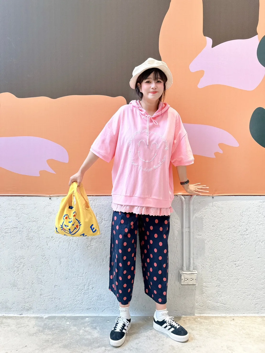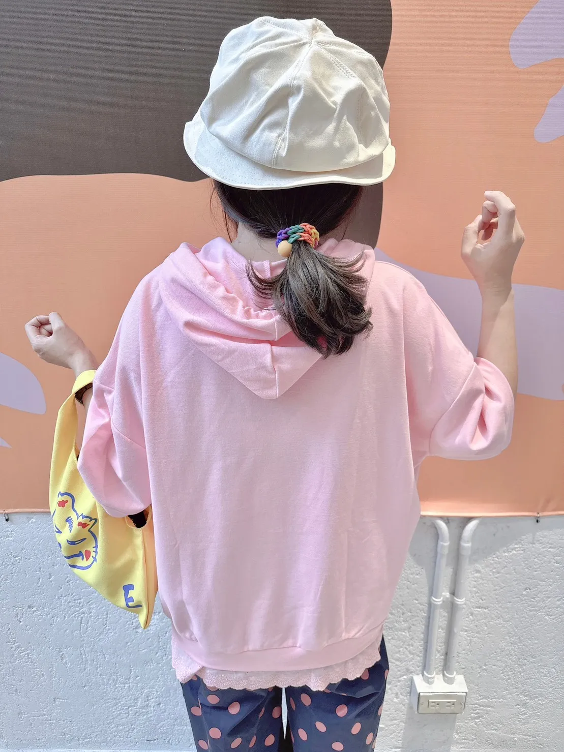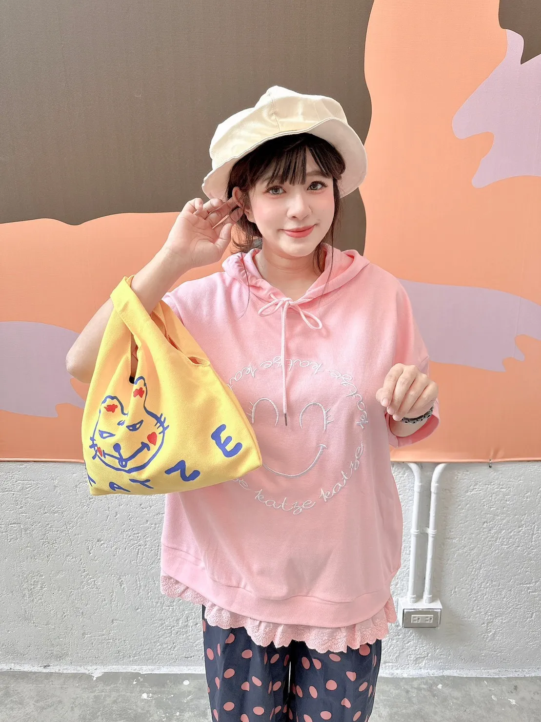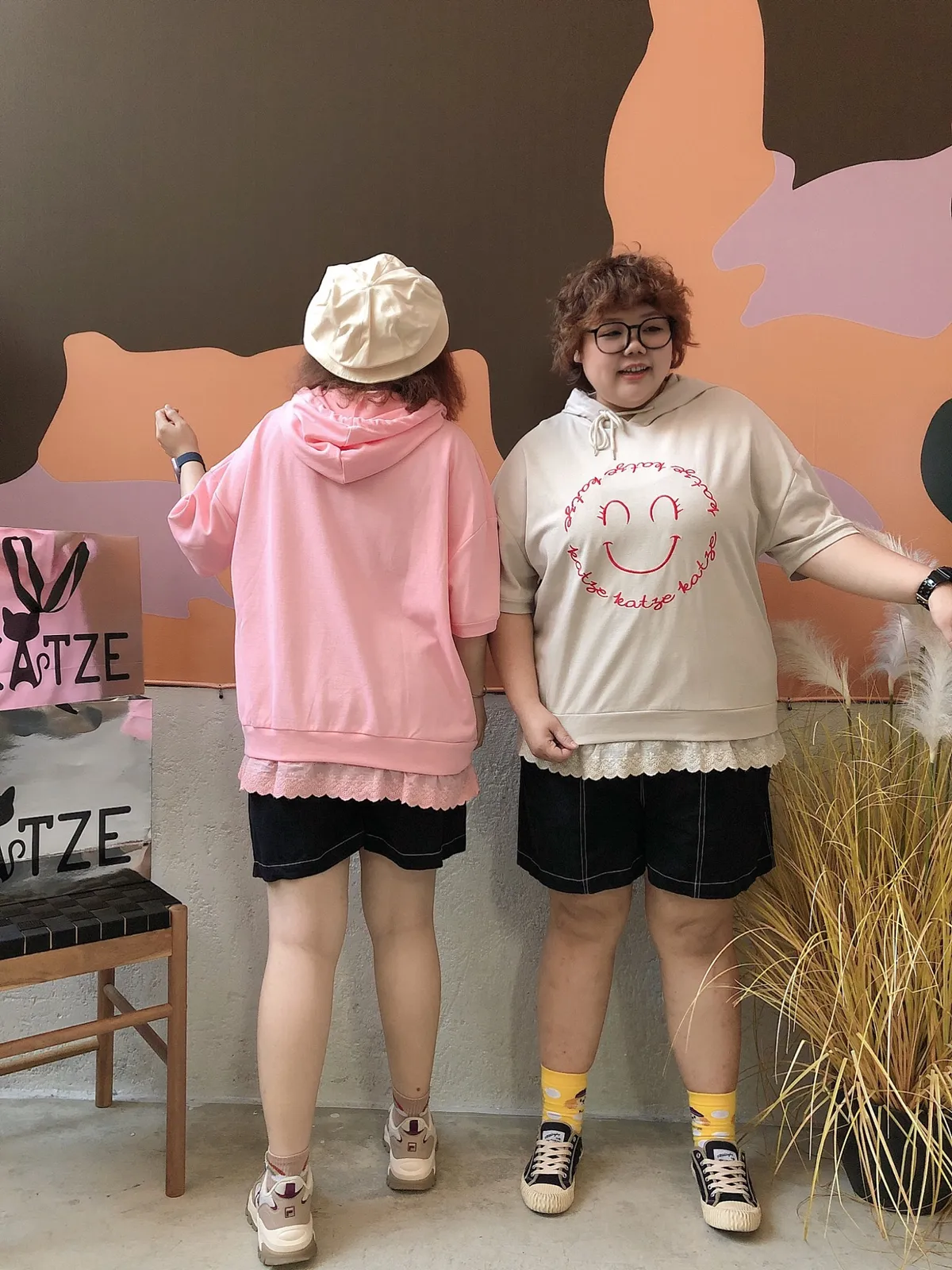 KATZE限量原創款-微笑拼接蕾絲連帽上衣 2色