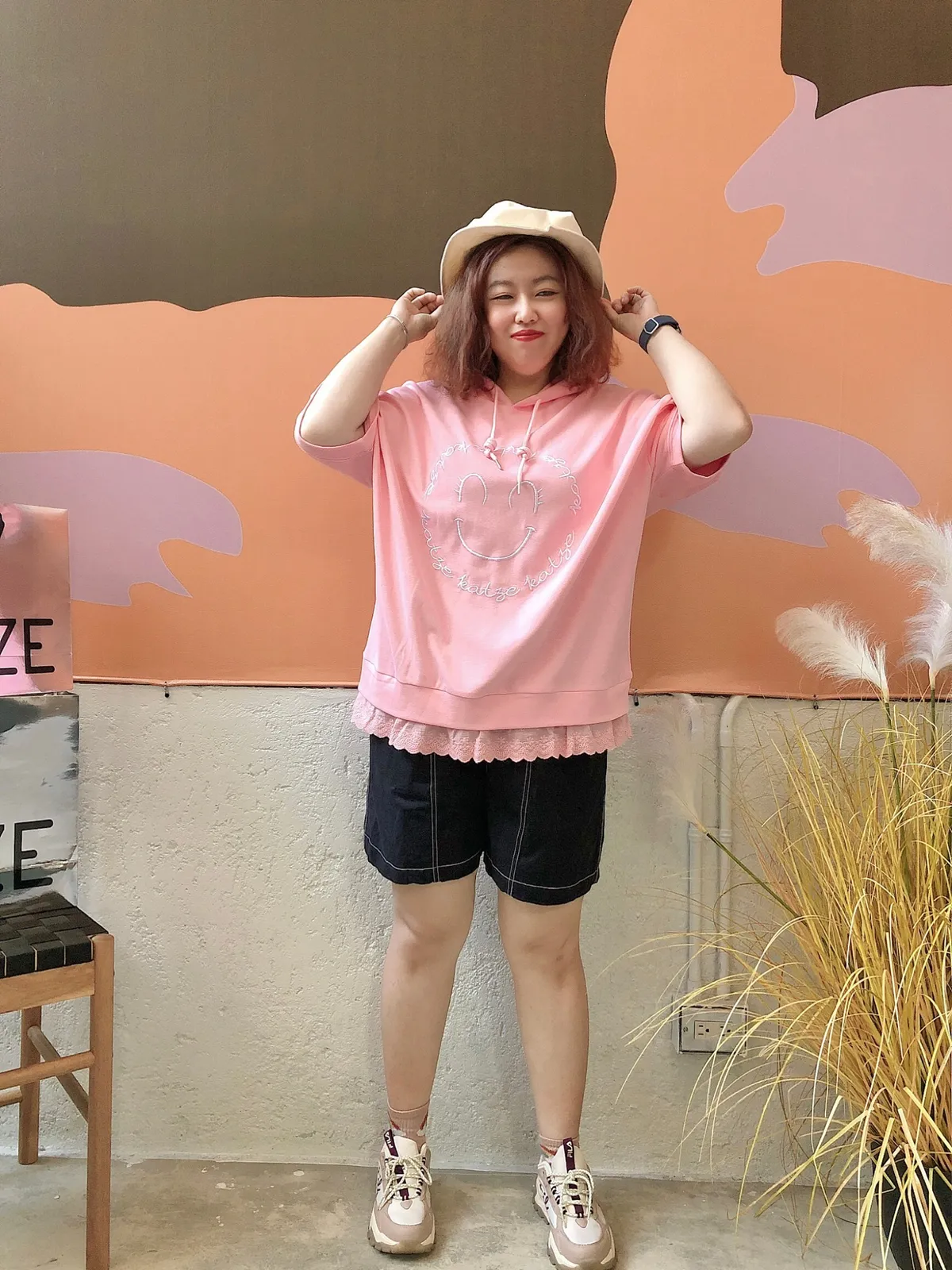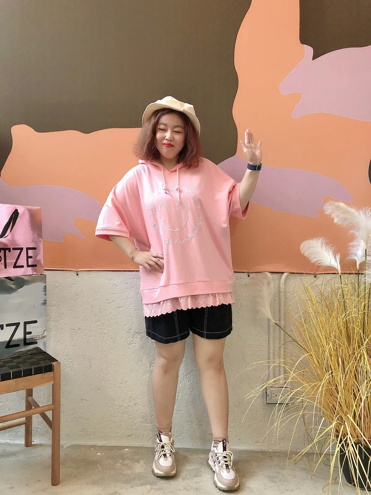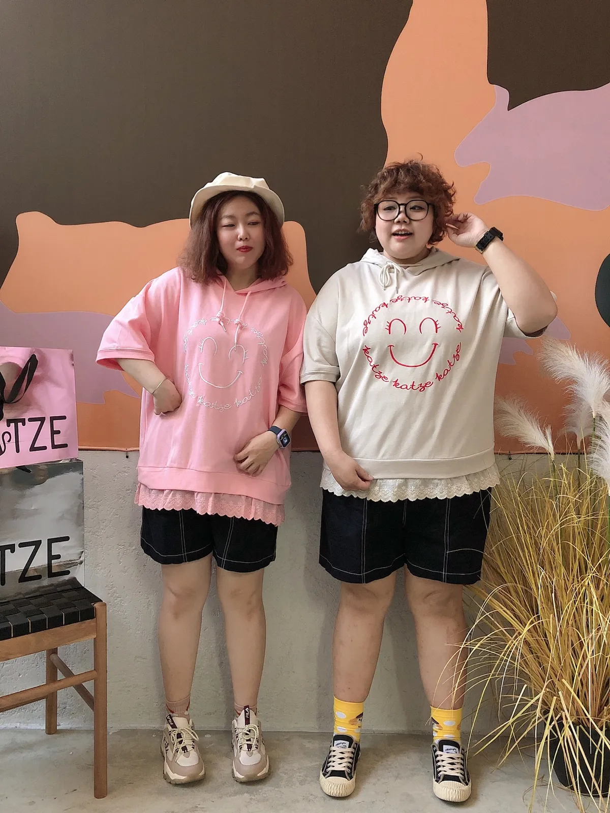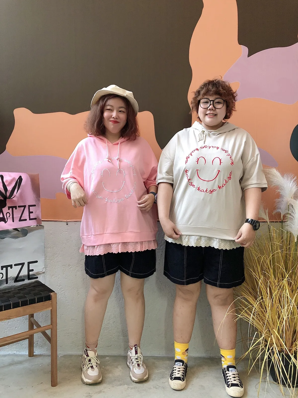 KATZE限量原創款-微笑拼接蕾絲連帽上衣 2色