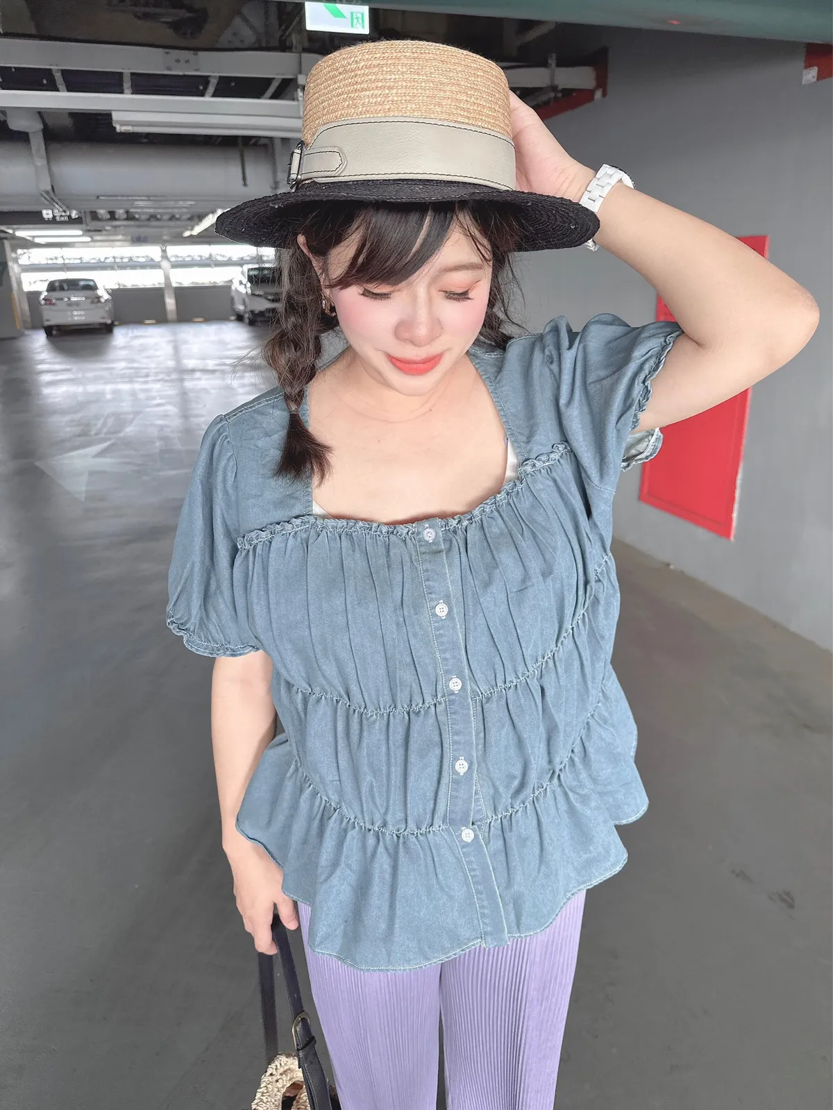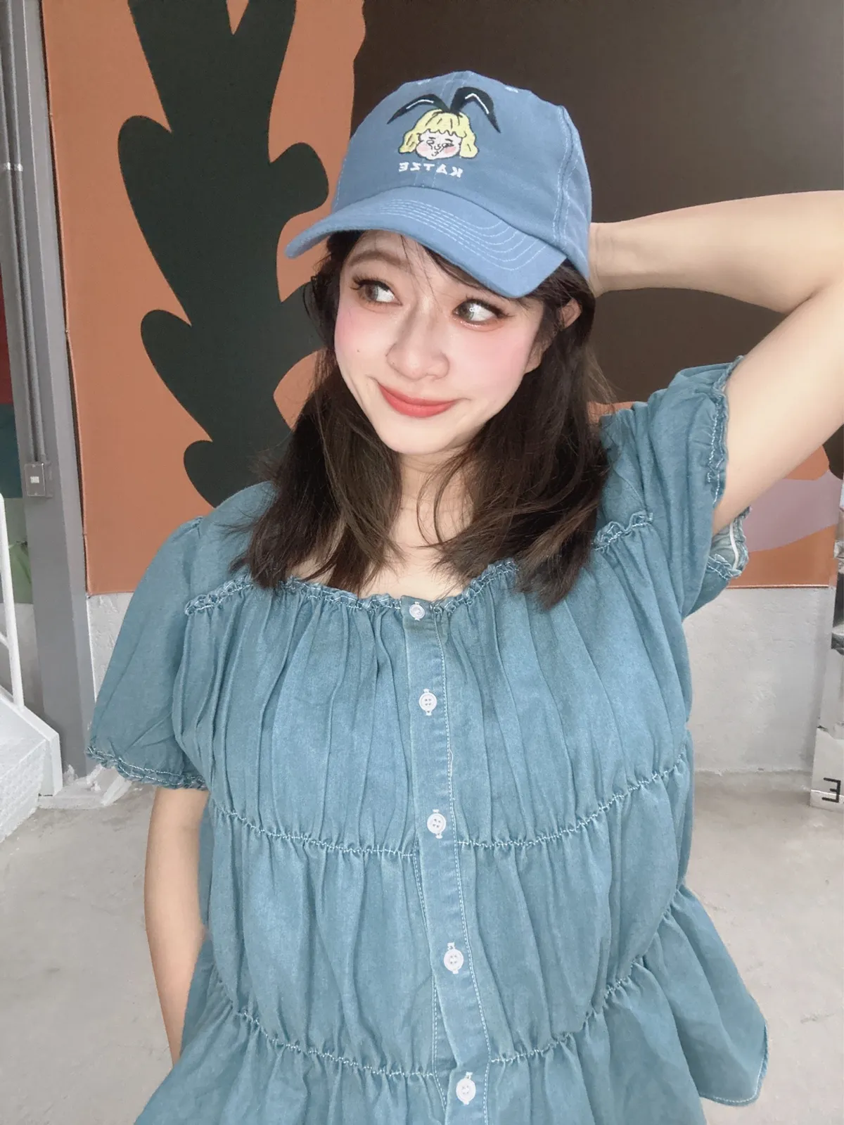 KATZE限量原創款-軟軟方領牛仔排釦彈性修身上衣