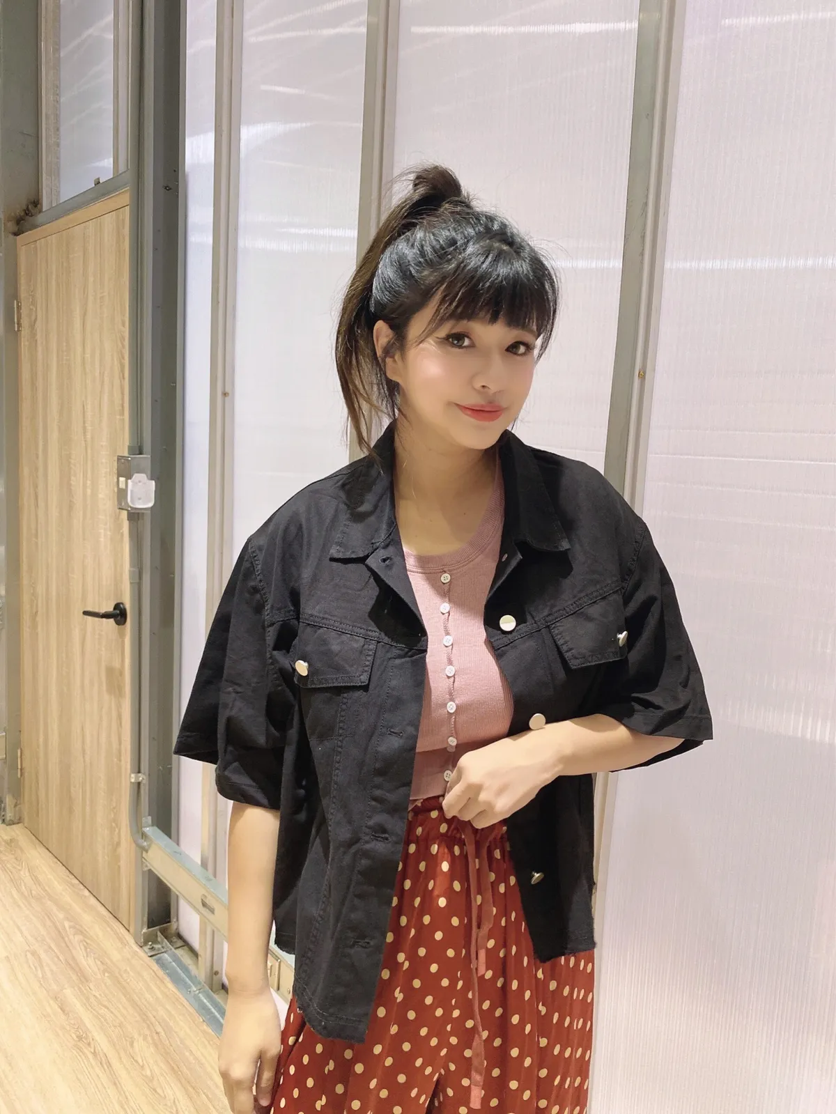 短版排釦假口袋外套