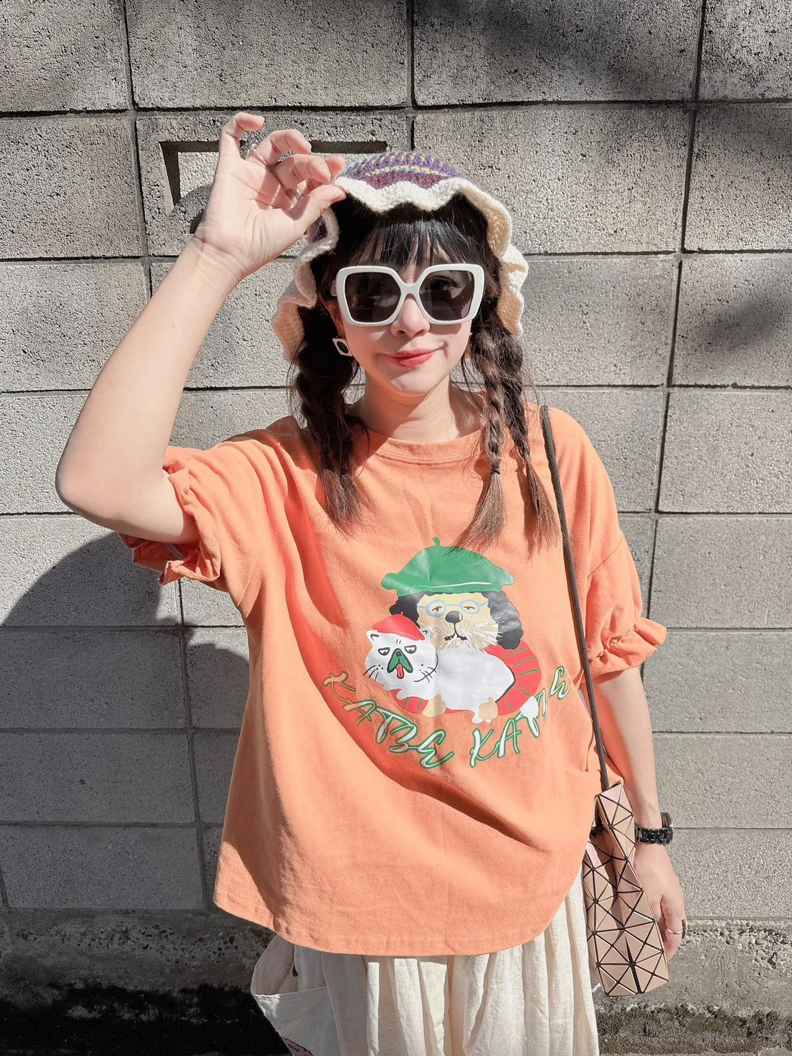 KATZE限量原創款-阿豆莫&碰吉好朋友印刷舒適上衣2色