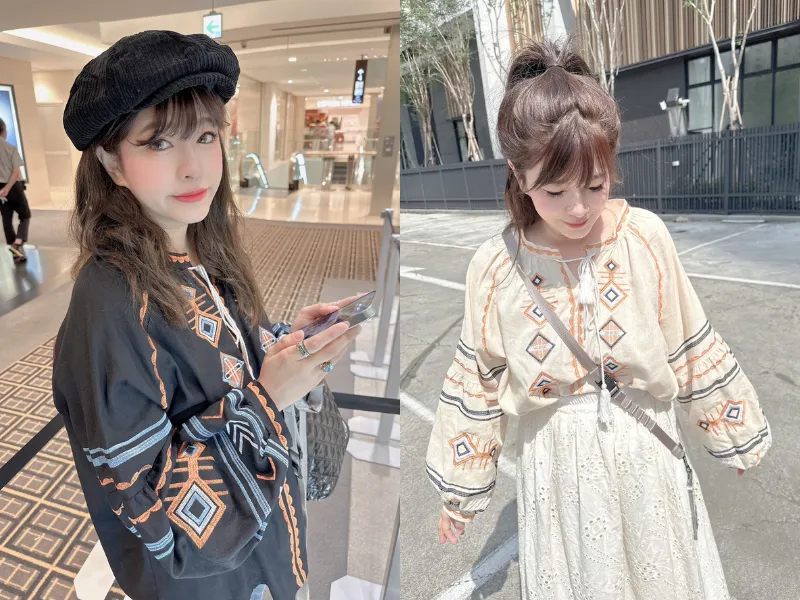 KATZE限量原創款-圖騰刺繡上衣 2色