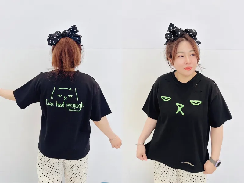 KATZE限量原創款-厭世貓破損舒適上衣2色