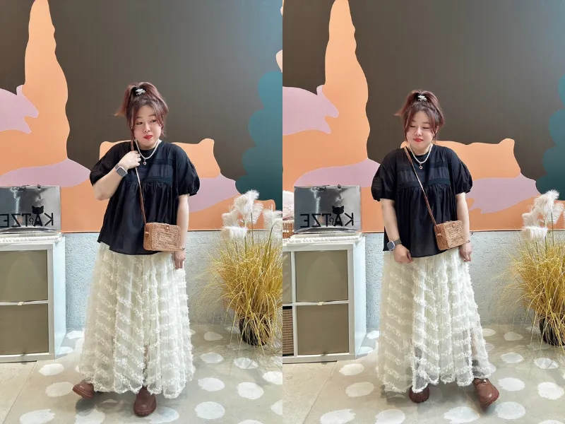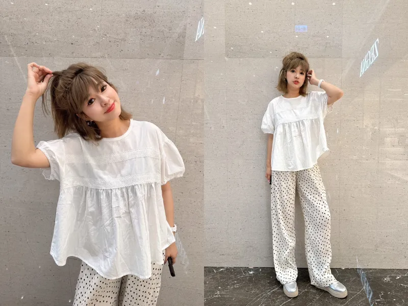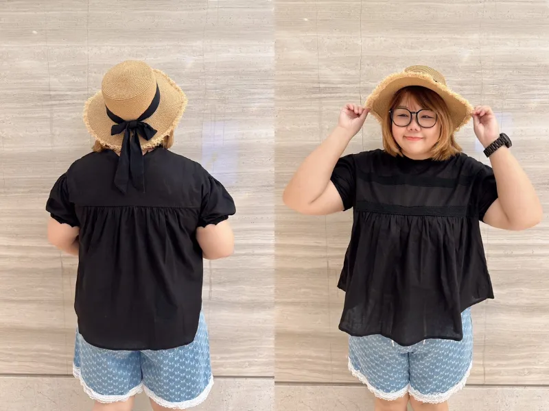 KATZE限量原創款-素面百搭滾蕾絲上衣2色