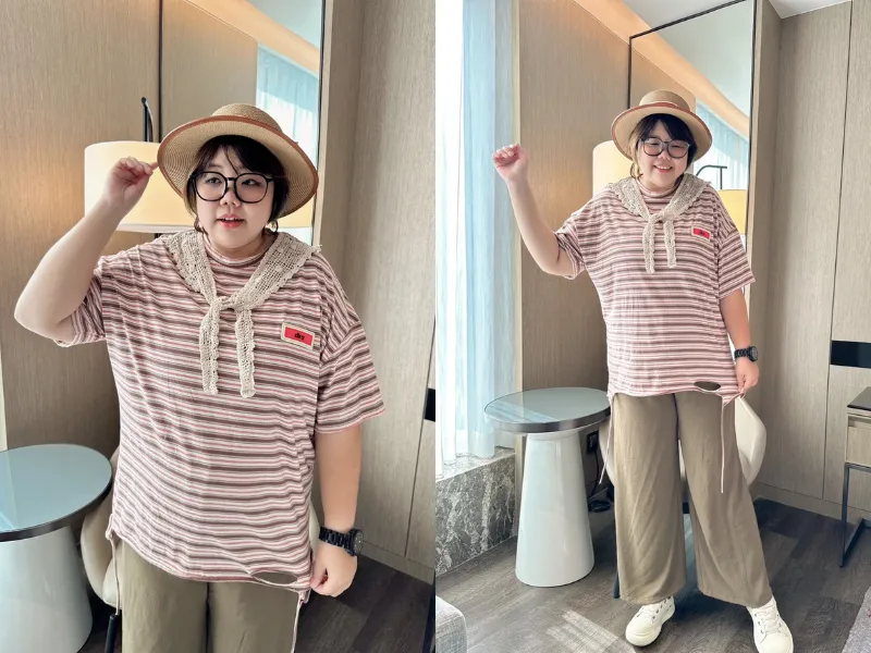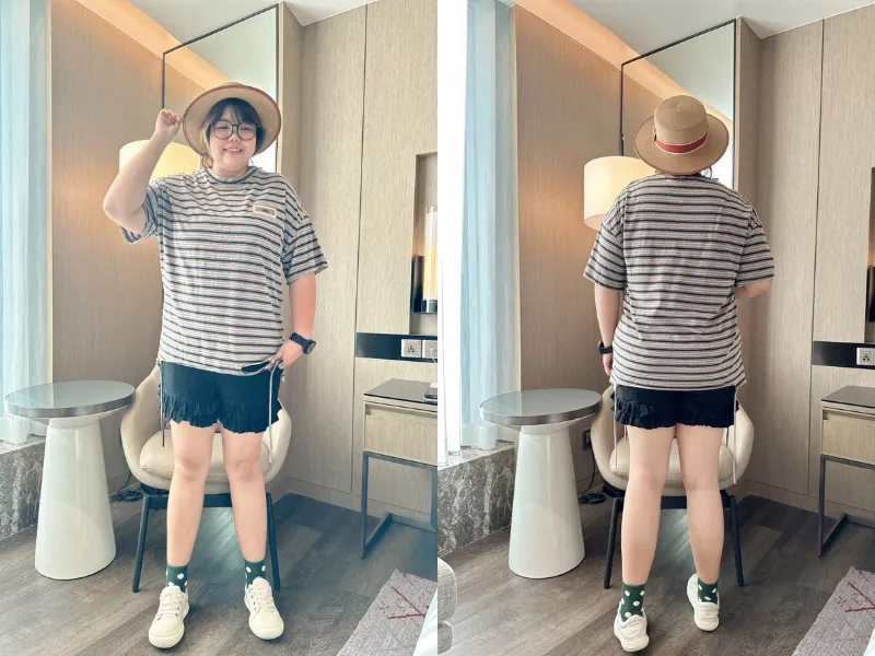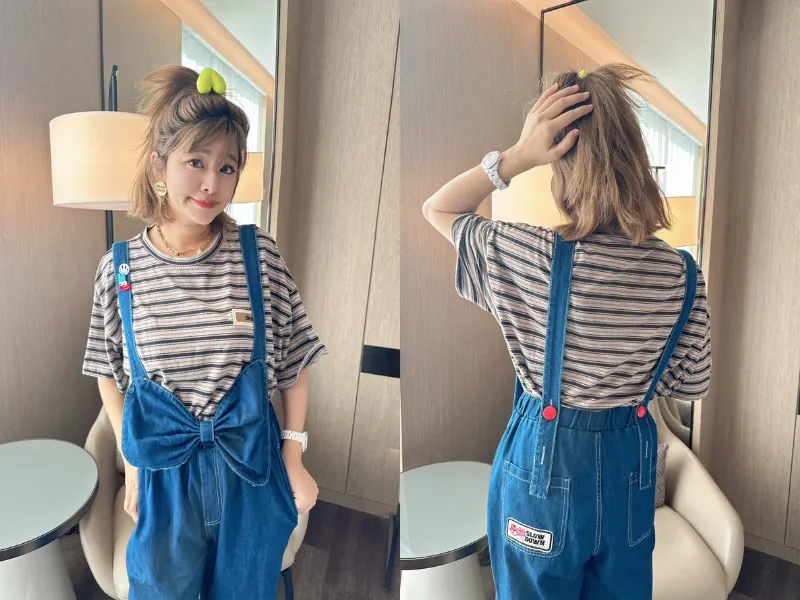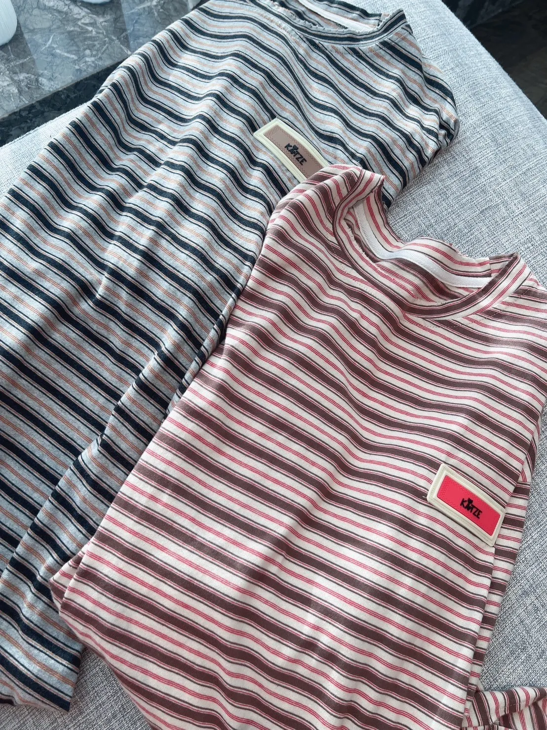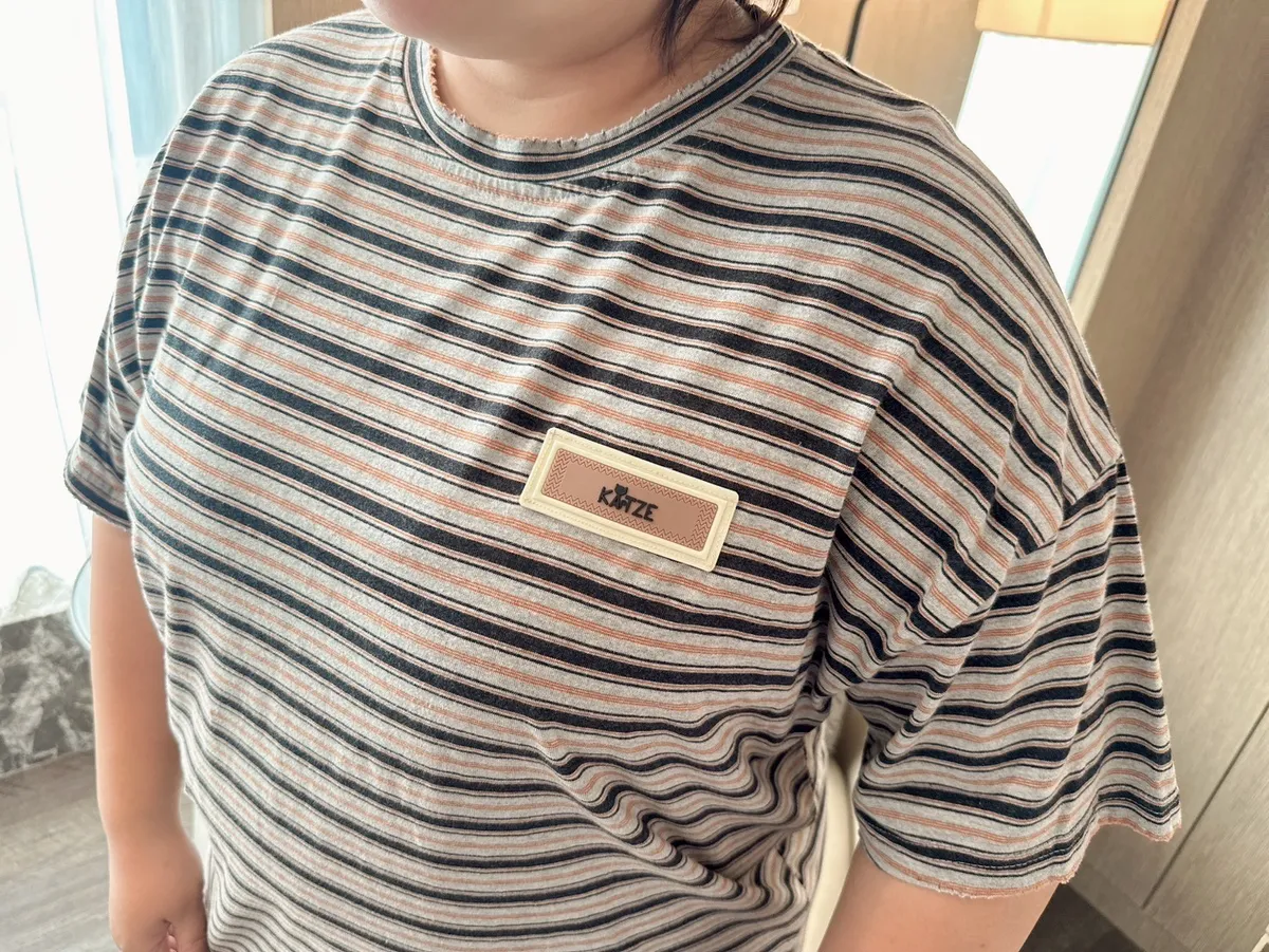 KATZE限量原創款-品牌巧克力標橫條下擺破損上衣 2色