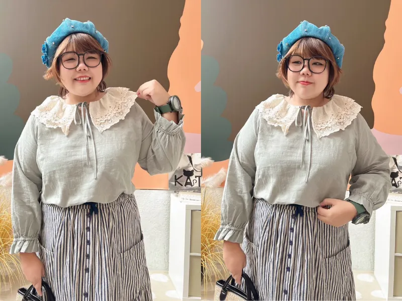 布蕾絲領片拼接上衣